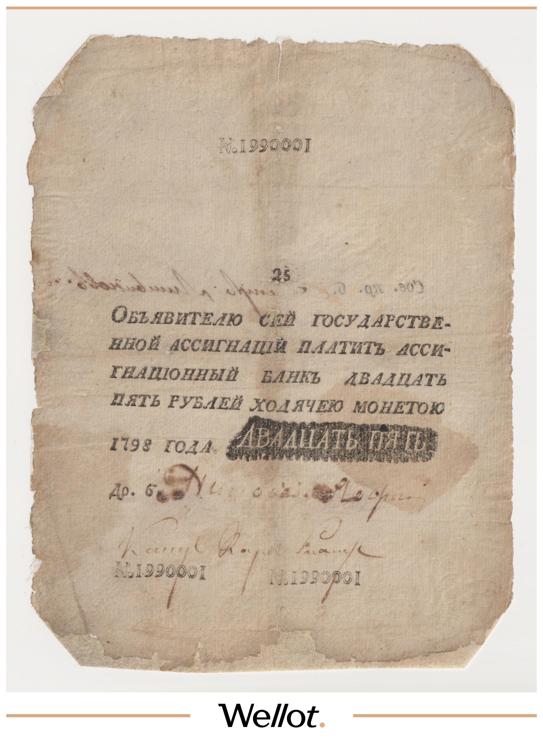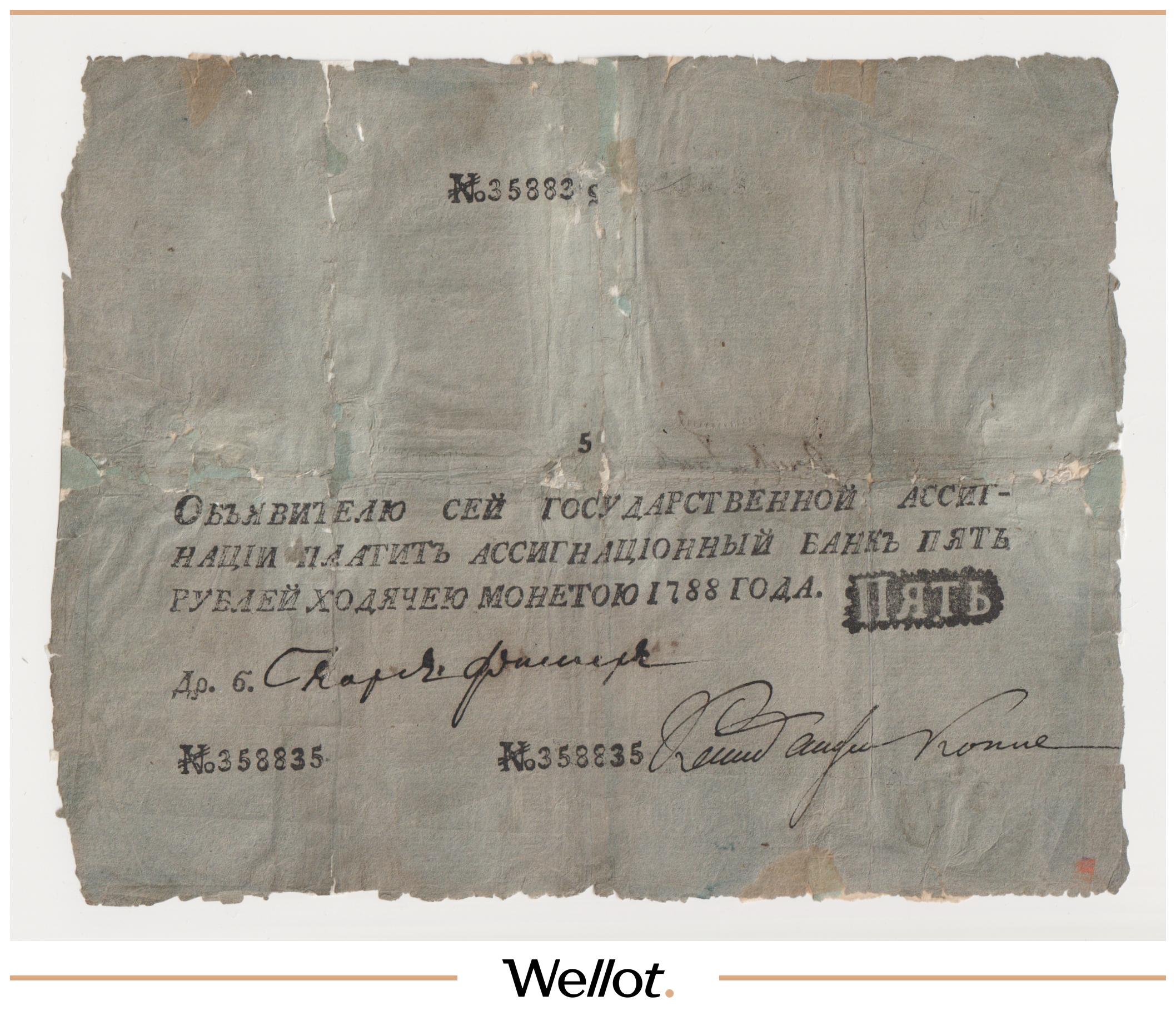 Самые ранние датировки на ассигнациях II типа начинаются с 1787 года. Первые даты известны лишь в единичных экземплярах и представляют особую коллекционную редкость. Предмет находится у истоков истории бумажных денежных знаков России и является важнейшим артефактом музейного уровня.