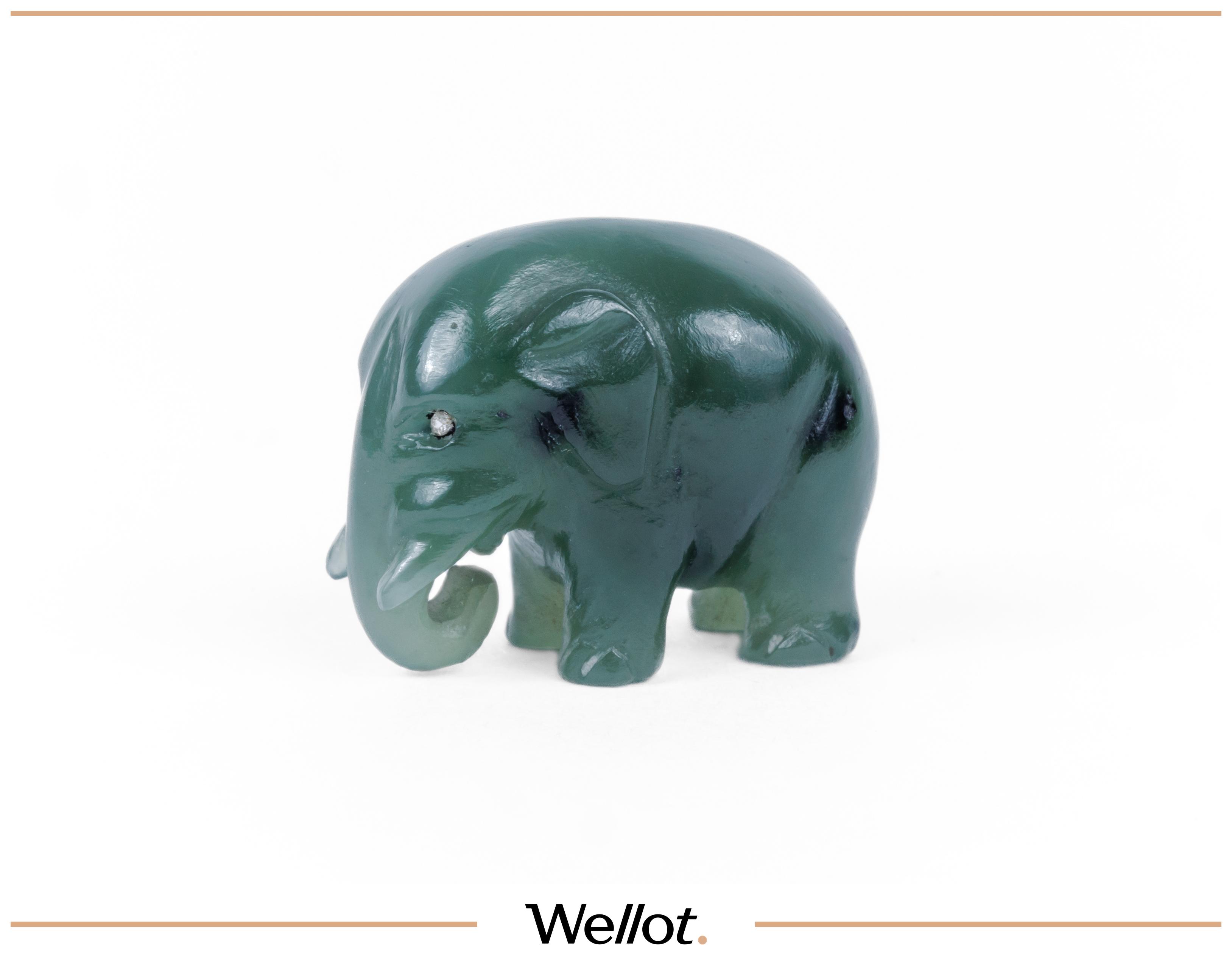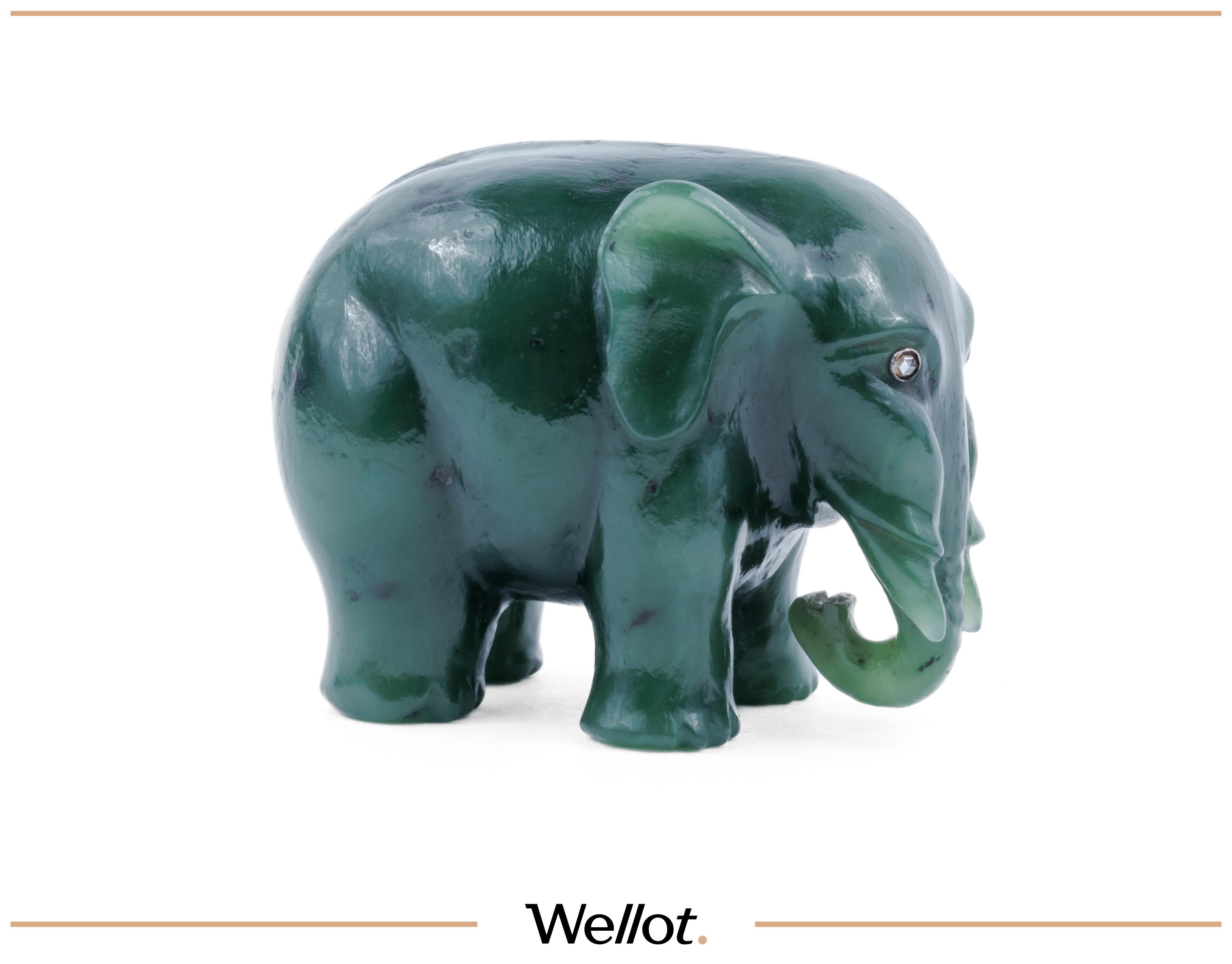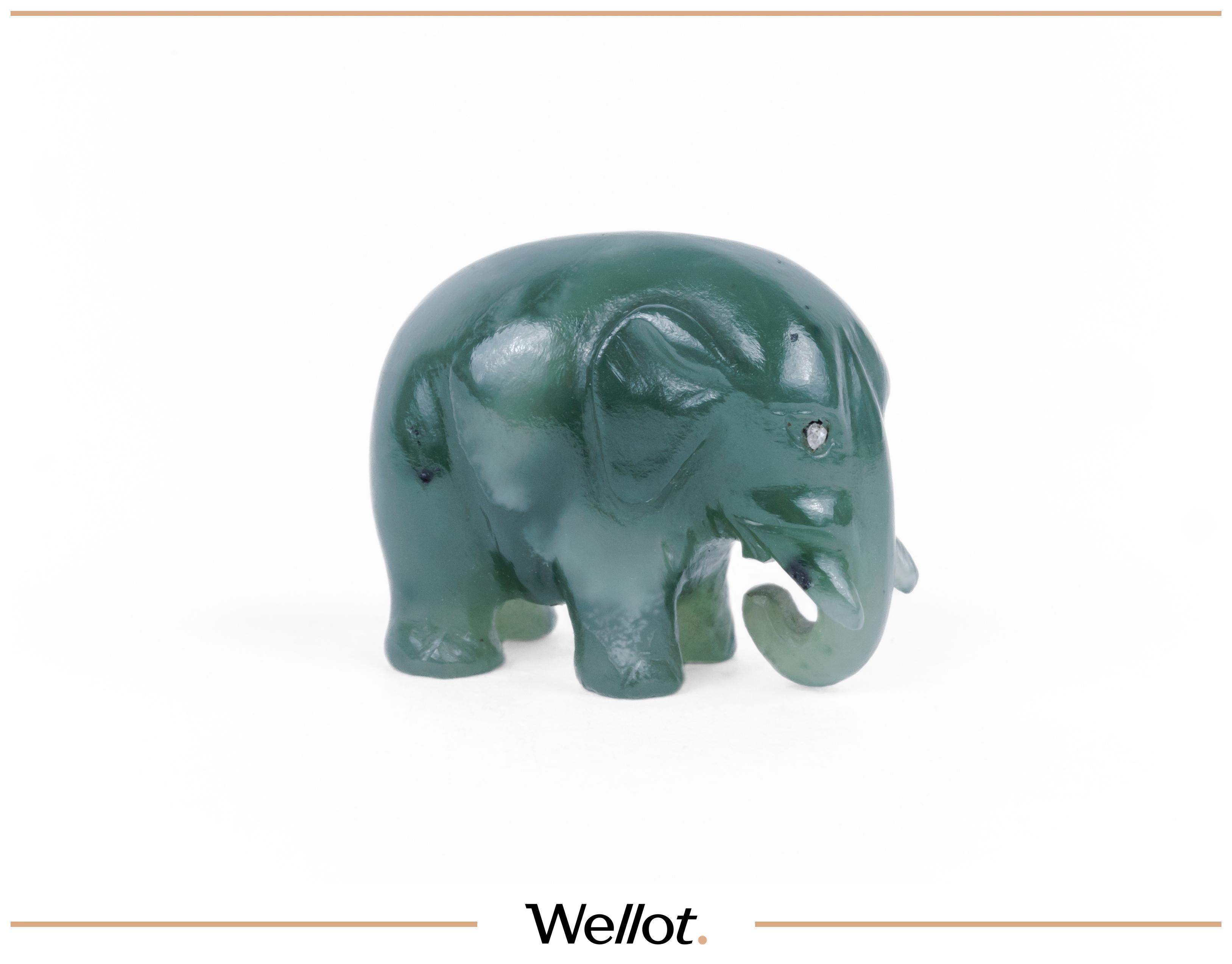 Фигурка отличается гармоничными, тщательно продуманными формами, создающими целостный и эстетичный образ. Линии и пропорции выполнены так, что изделие приятно держать в руке, оно дарит ощущение завершённости и качества работы мастера. Представленная модель относится к категории слонов среднего размера. В царское время камнерезные фигурки такого уровня обычно оценивались в 120–140 рублей серебром и более, а цена на крупных слонов могла достигать 800 рублей. Такая ценовая категория ориентировалась на состоятельных ценителей, а в первую очередь — на коллекционирование членами Императорской семьи.