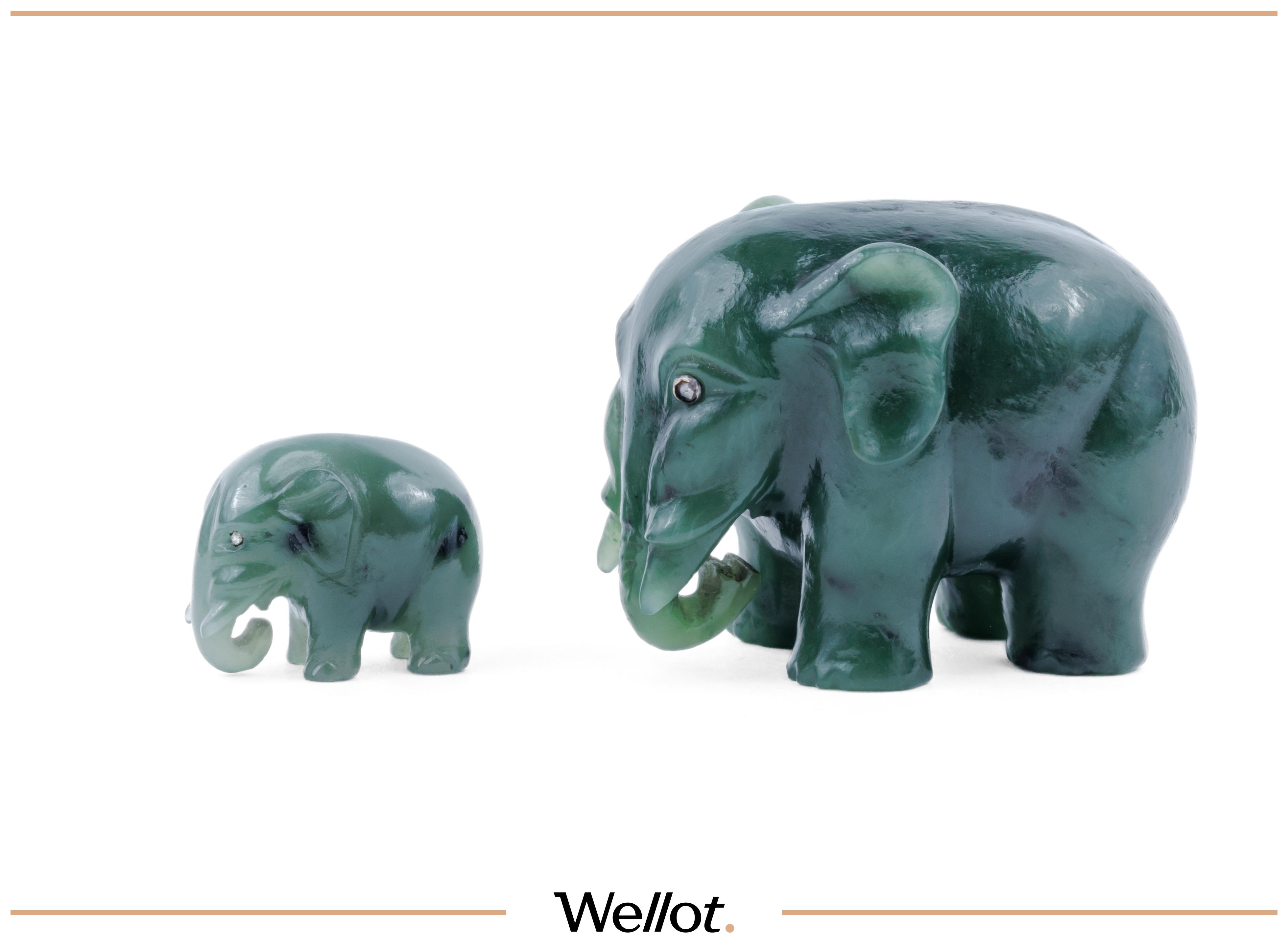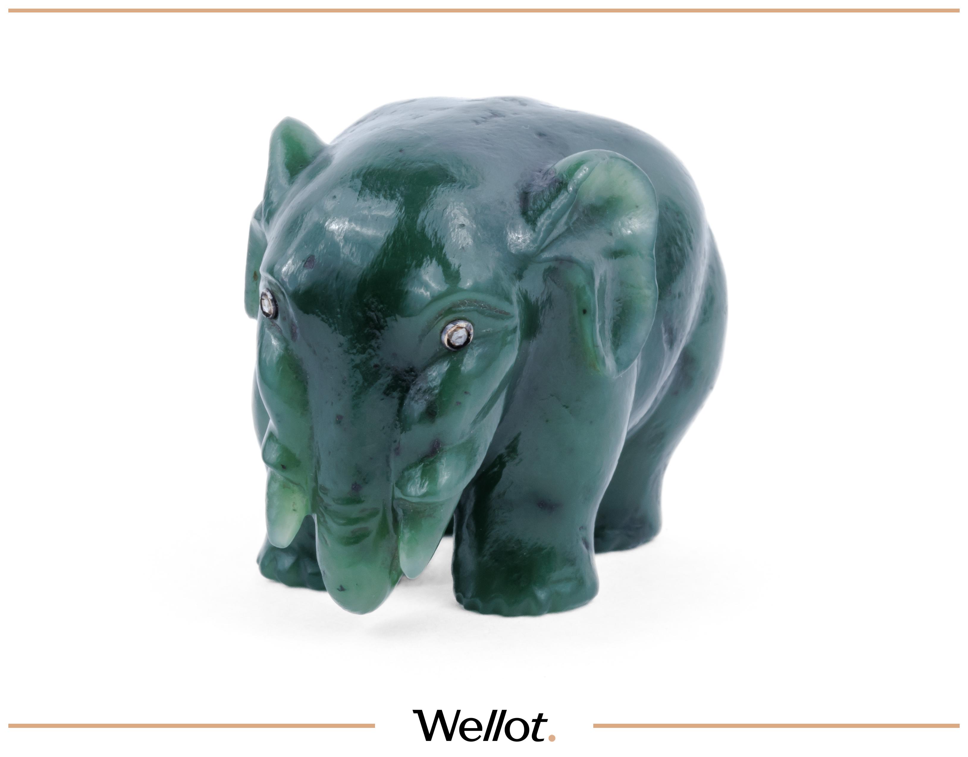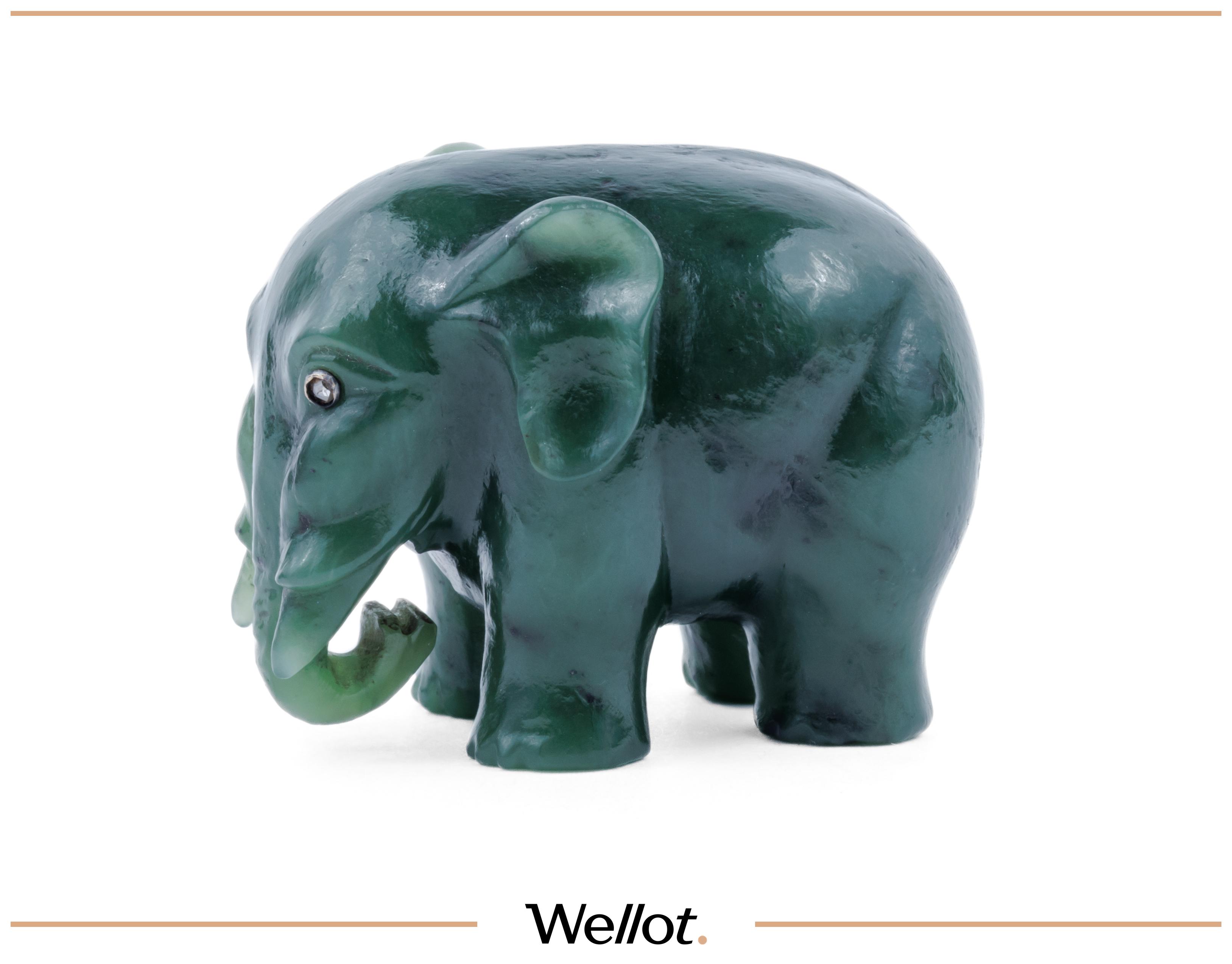 Фигурка отличается гармоничными, тщательно продуманными формами, создающими целостный и эстетичный образ. Линии и пропорции выполнены так, что изделие приятно держать в руке, оно дарит ощущение завершённости и качества работы мастера. Представленная модель относится к категории слонов среднего размера. В царское время камнерезные фигурки такого уровня обычно оценивались в 120–140 рублей серебром и более, а цена на крупных слонов могла достигать 800 рублей. Такая ценовая категория ориентировалась на состоятельных ценителей, а в первую очередь — на коллекционирование членами Императорской семьи.