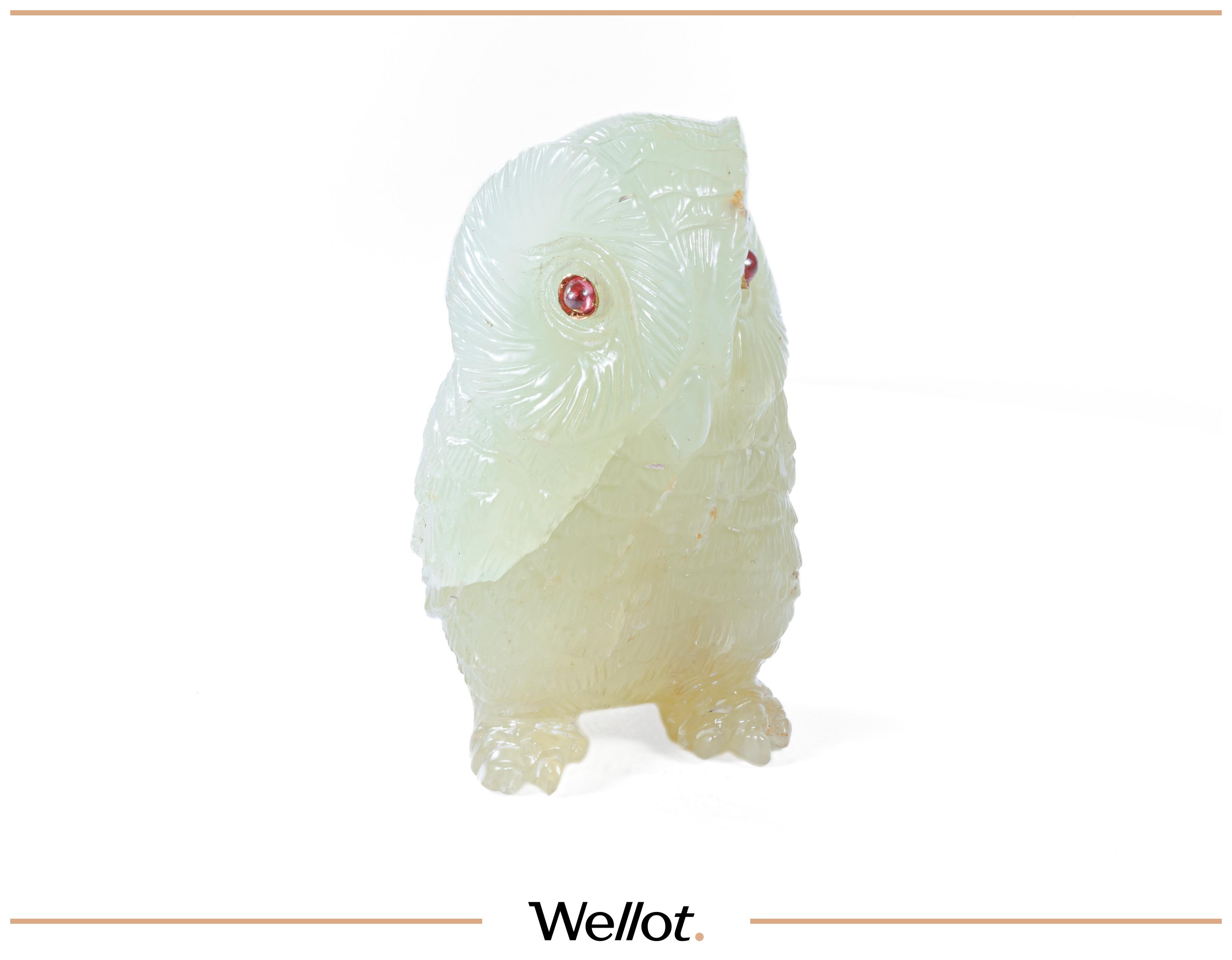 Нефрит. Размеры: высота 10 мм, длина 12 мм, ширина 9 мм. Глаза из алмазов. Удивительно тонкая работа. Предмет из коллекции главного бухгалтера московского отделения фирмы "Фаберже". Очень редкий коллекционный предмет!