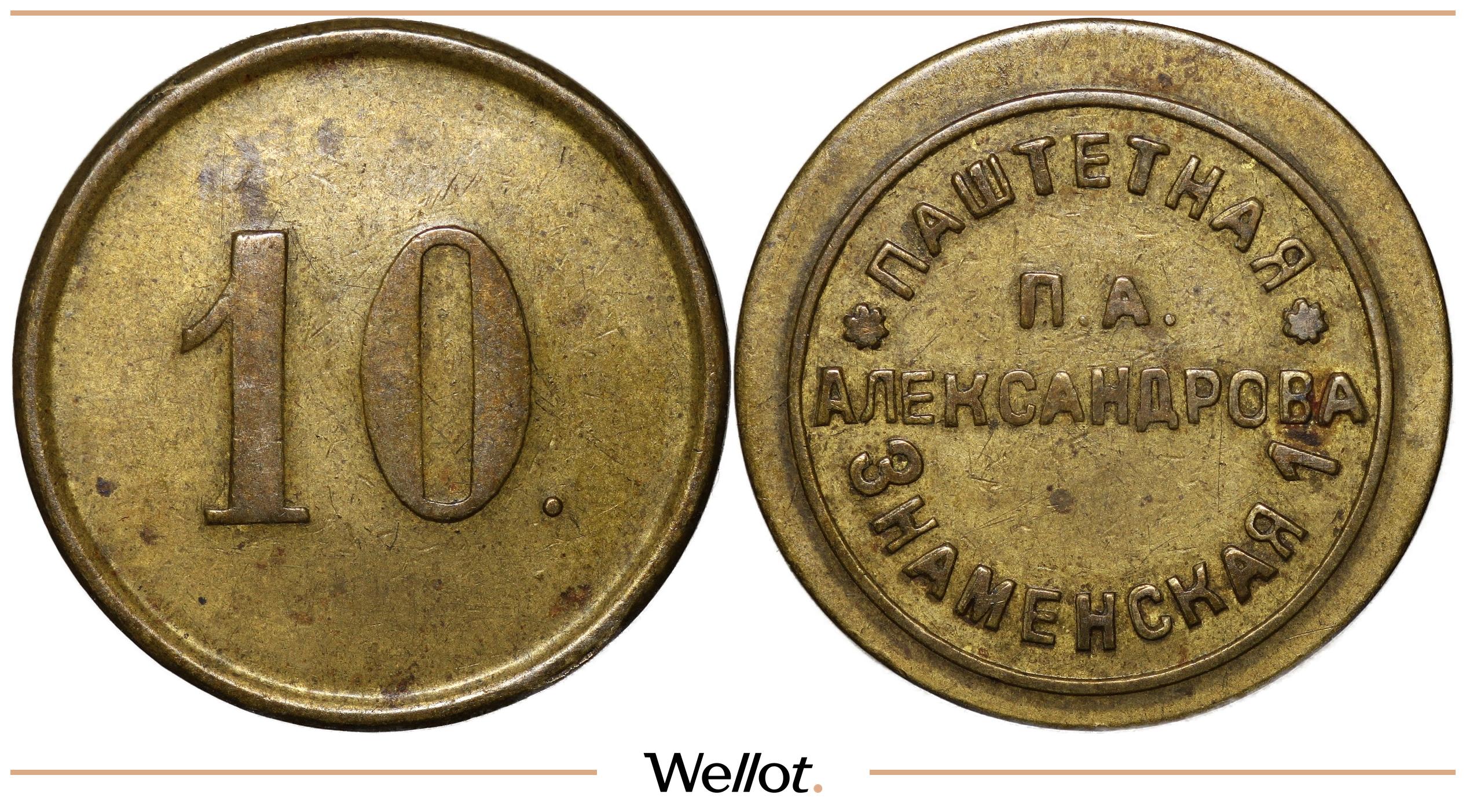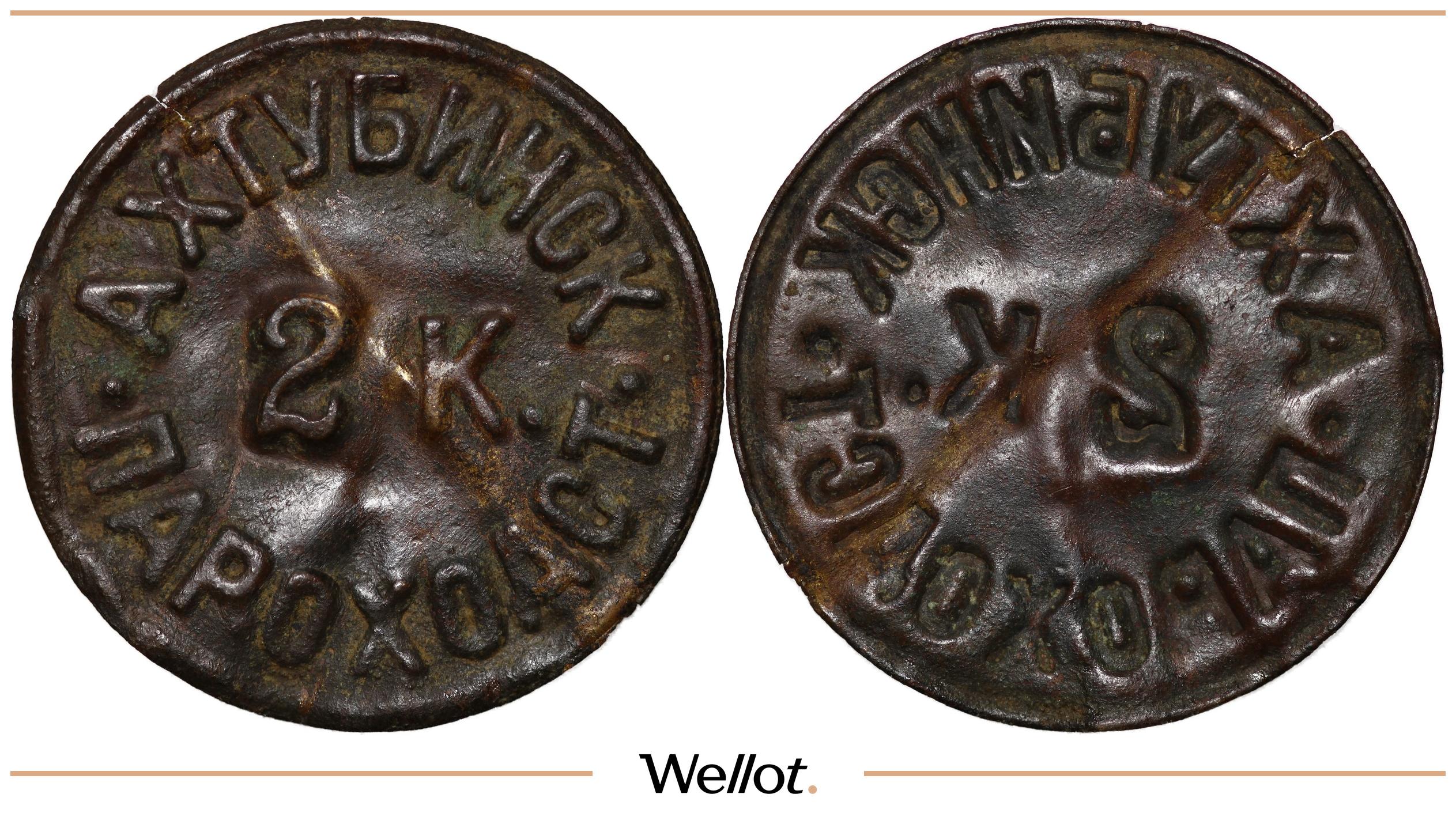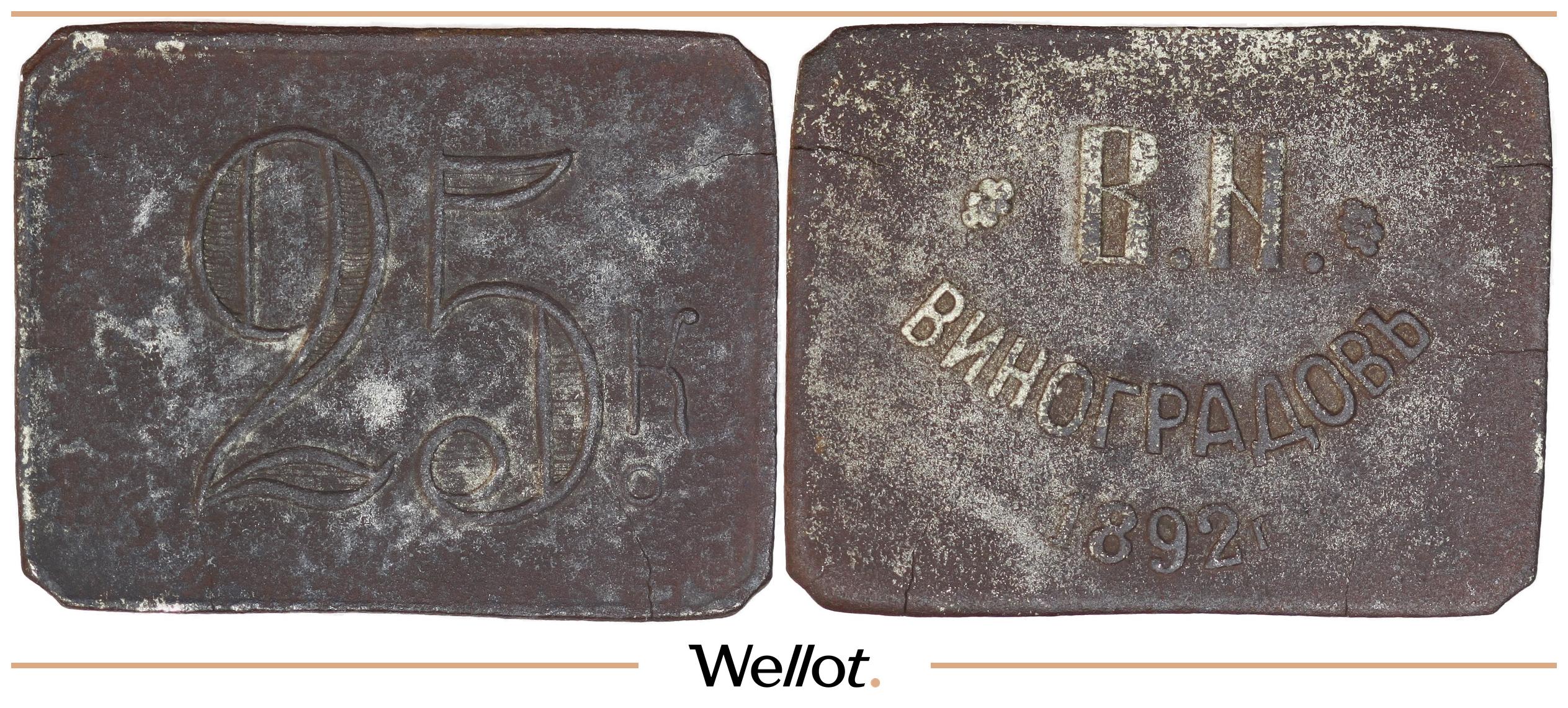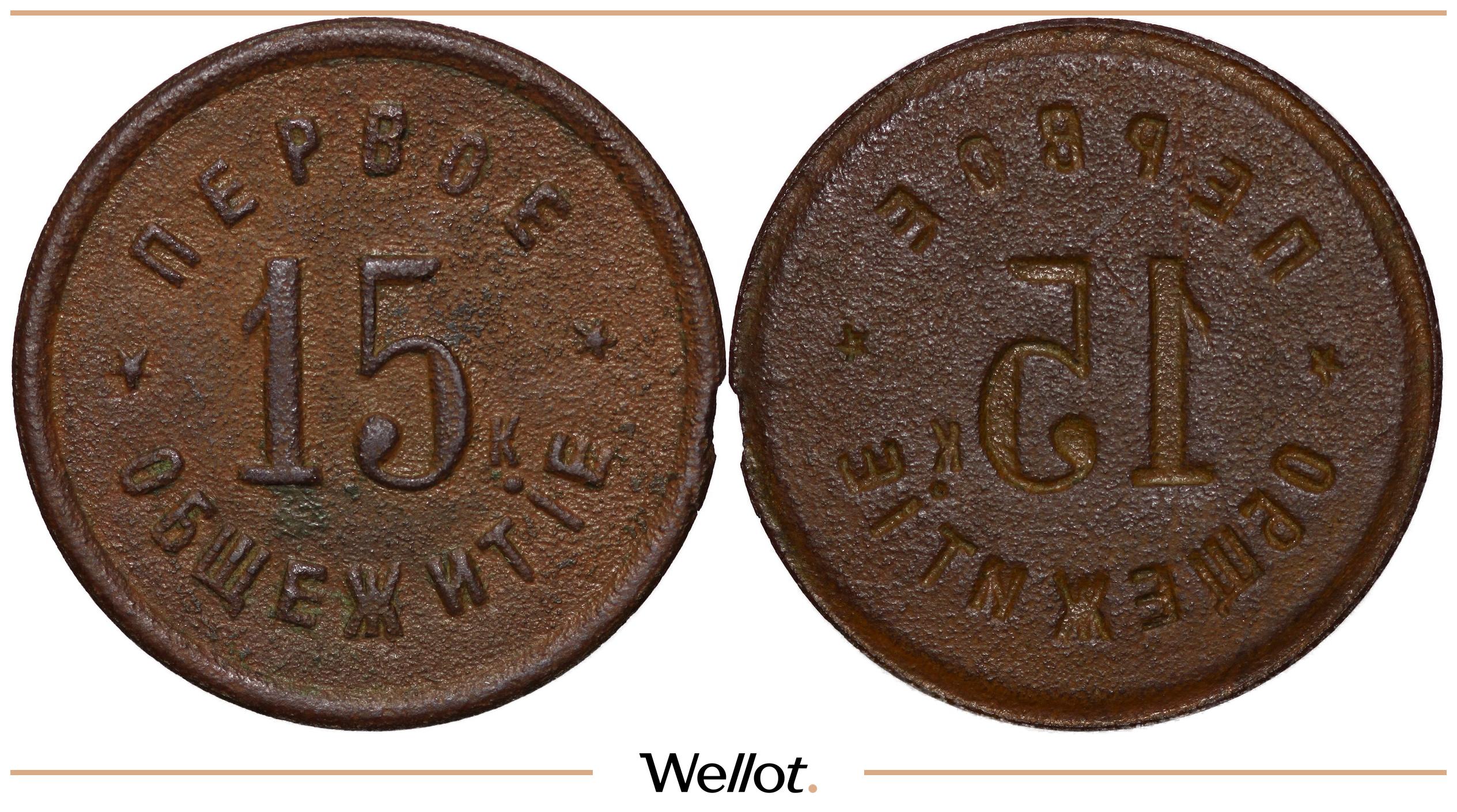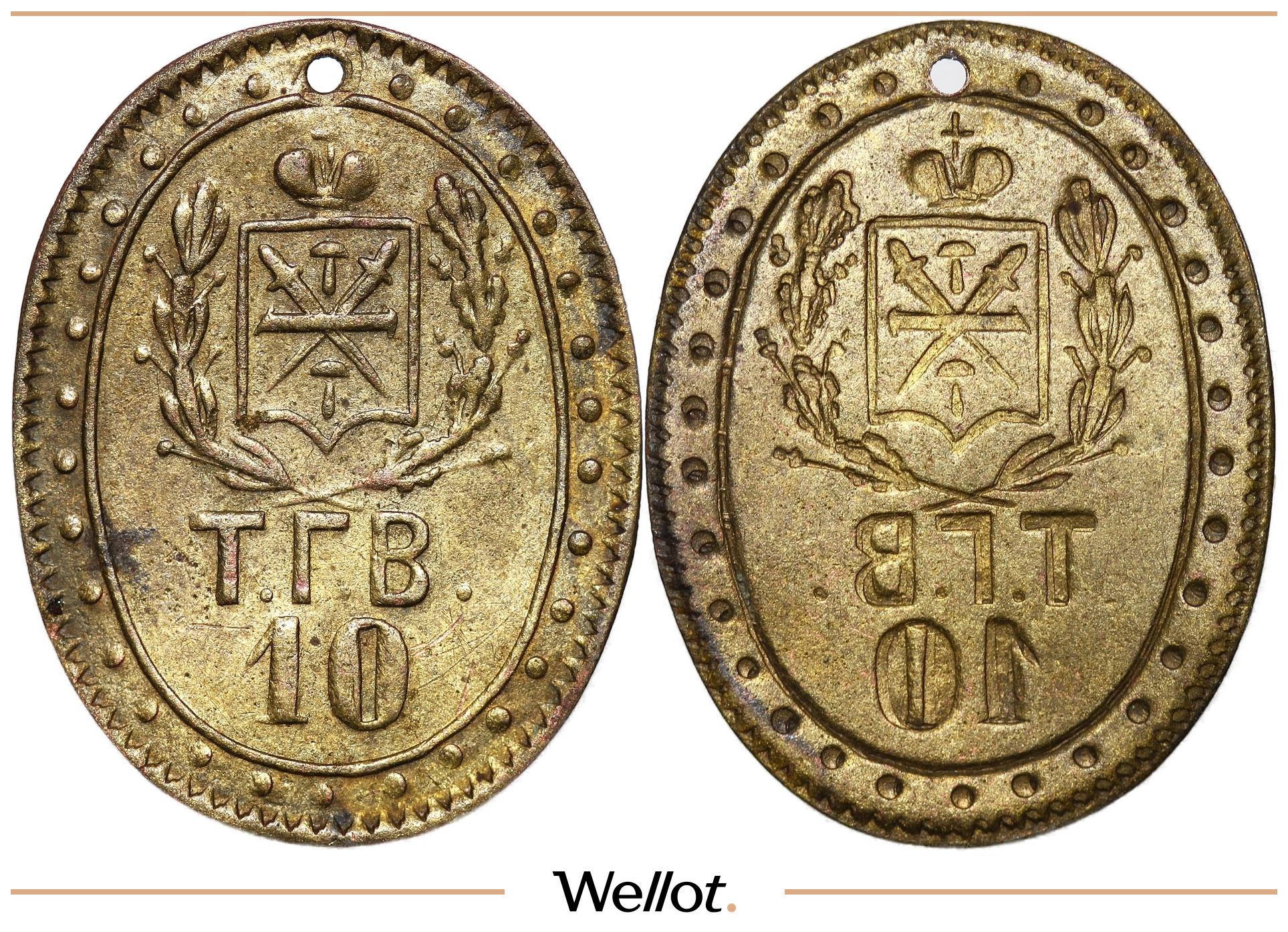 Бронза. 2,37 г. Устав Товарищества высочайше утвержден 10 августа 1907 г. Основной капитал составлял 300.000 рублей.