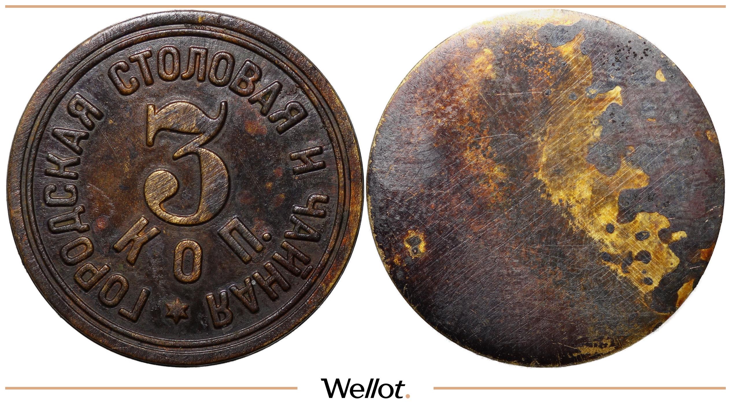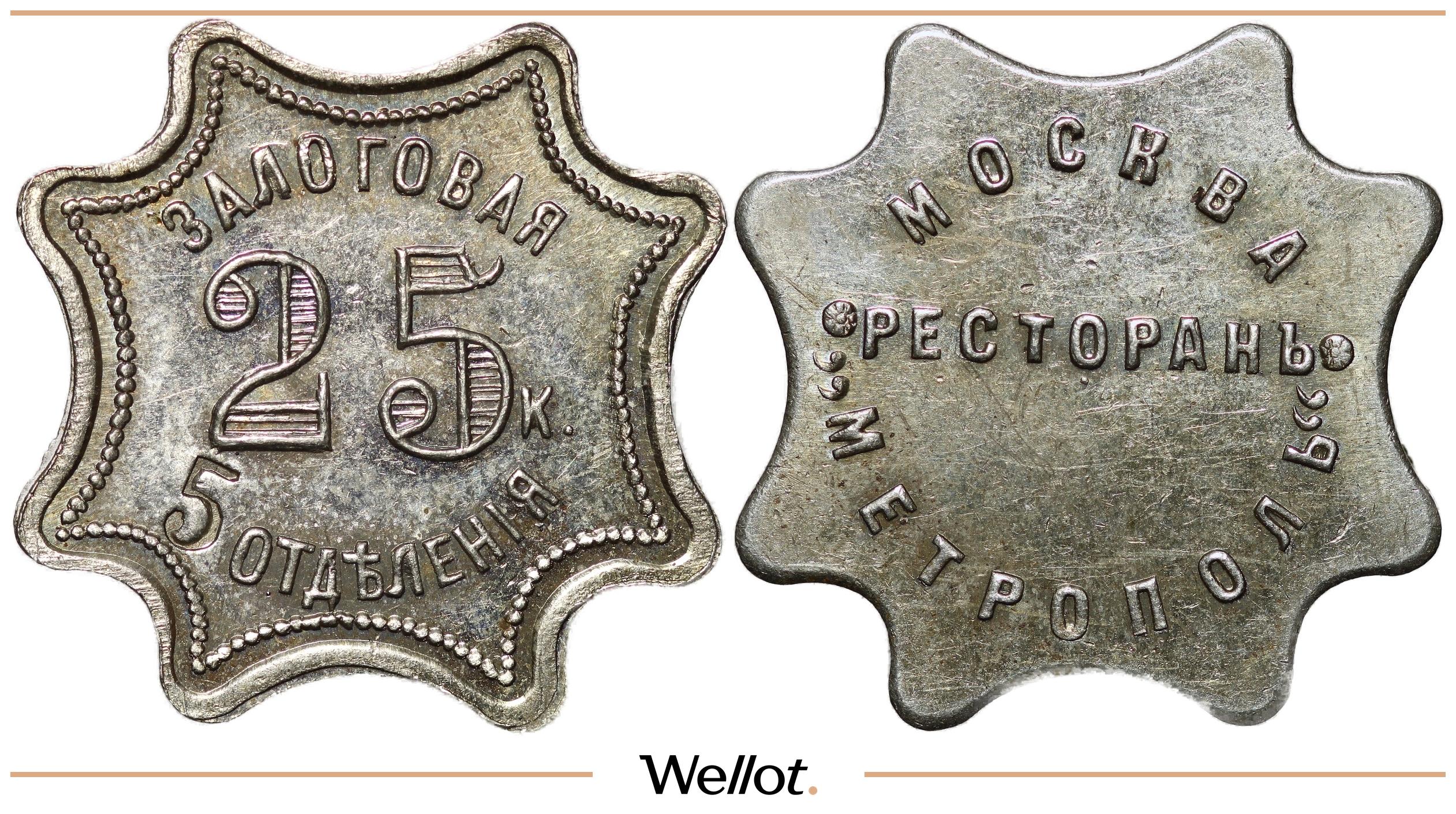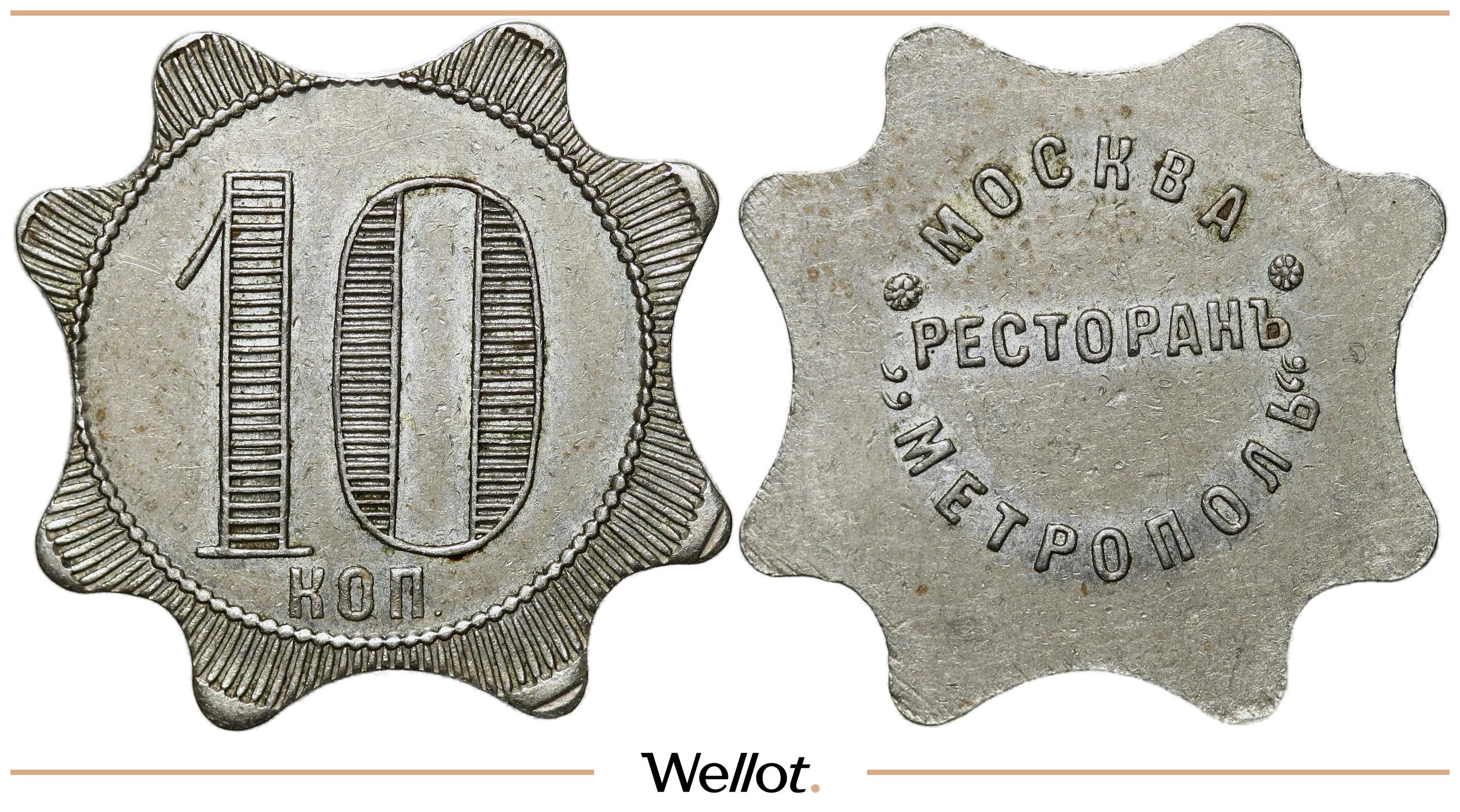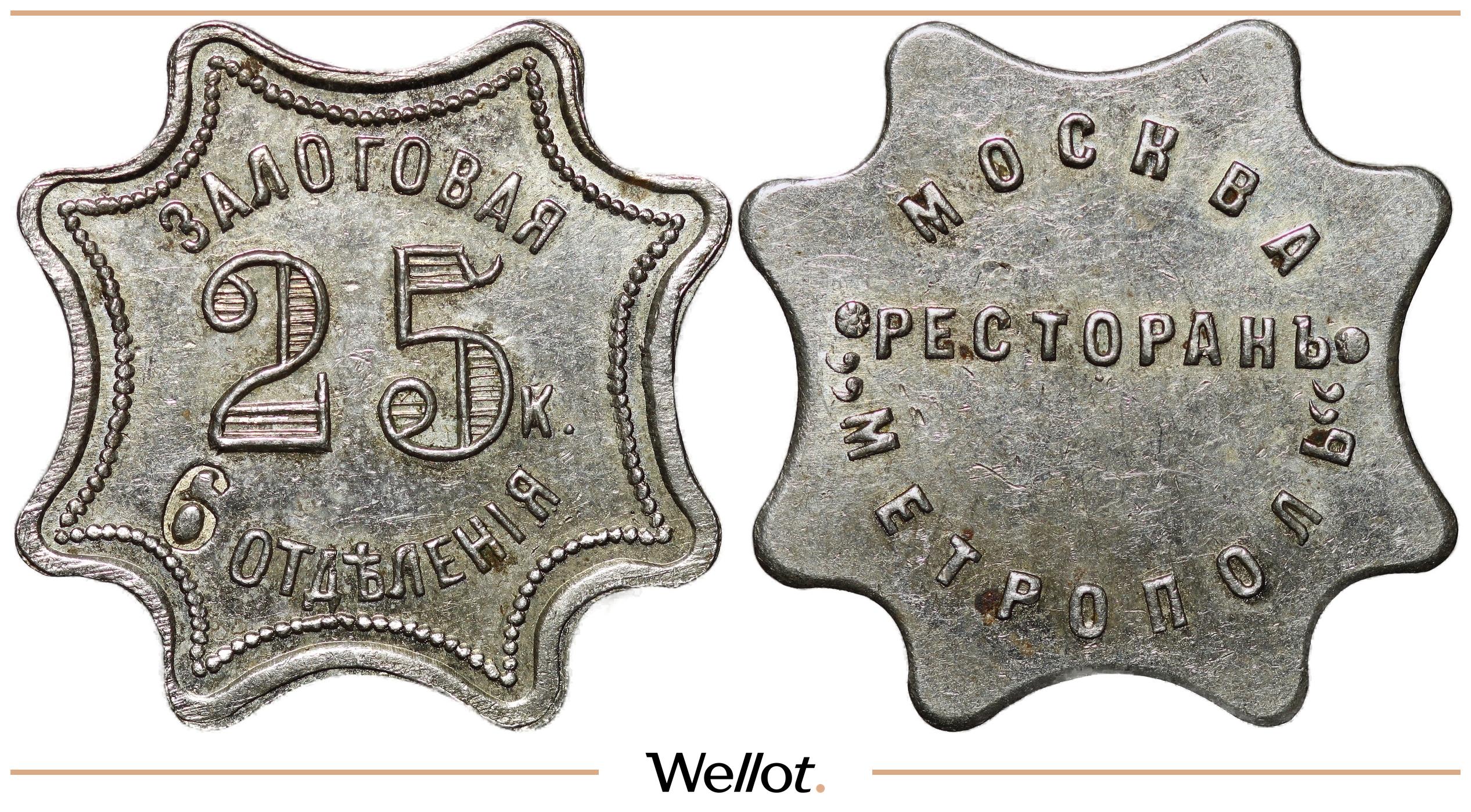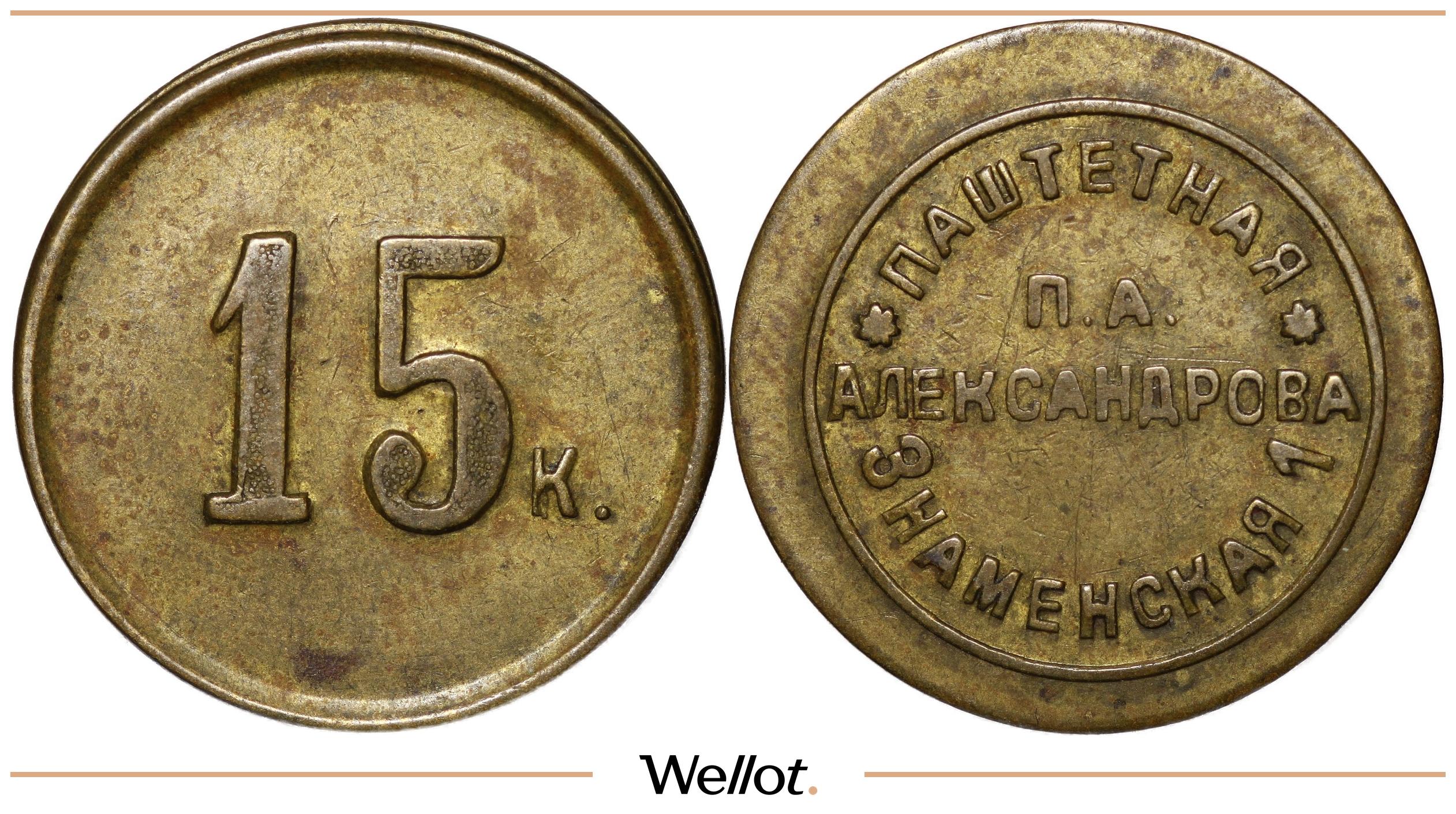 Бронза. 2,37 г. Устав Товарищества высочайше утвержден 10 августа 1907 г. Основной капитал составлял 300.000 рублей.