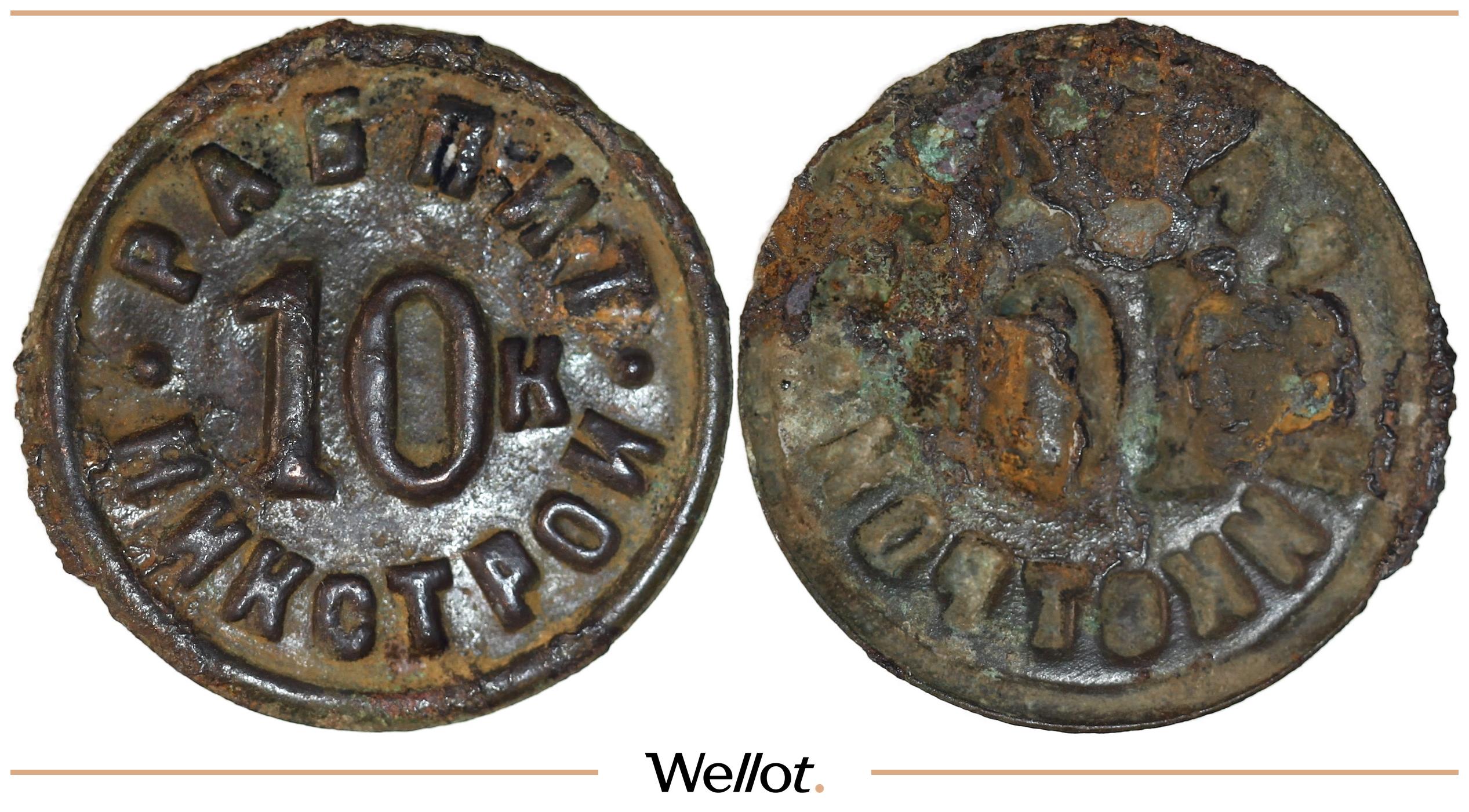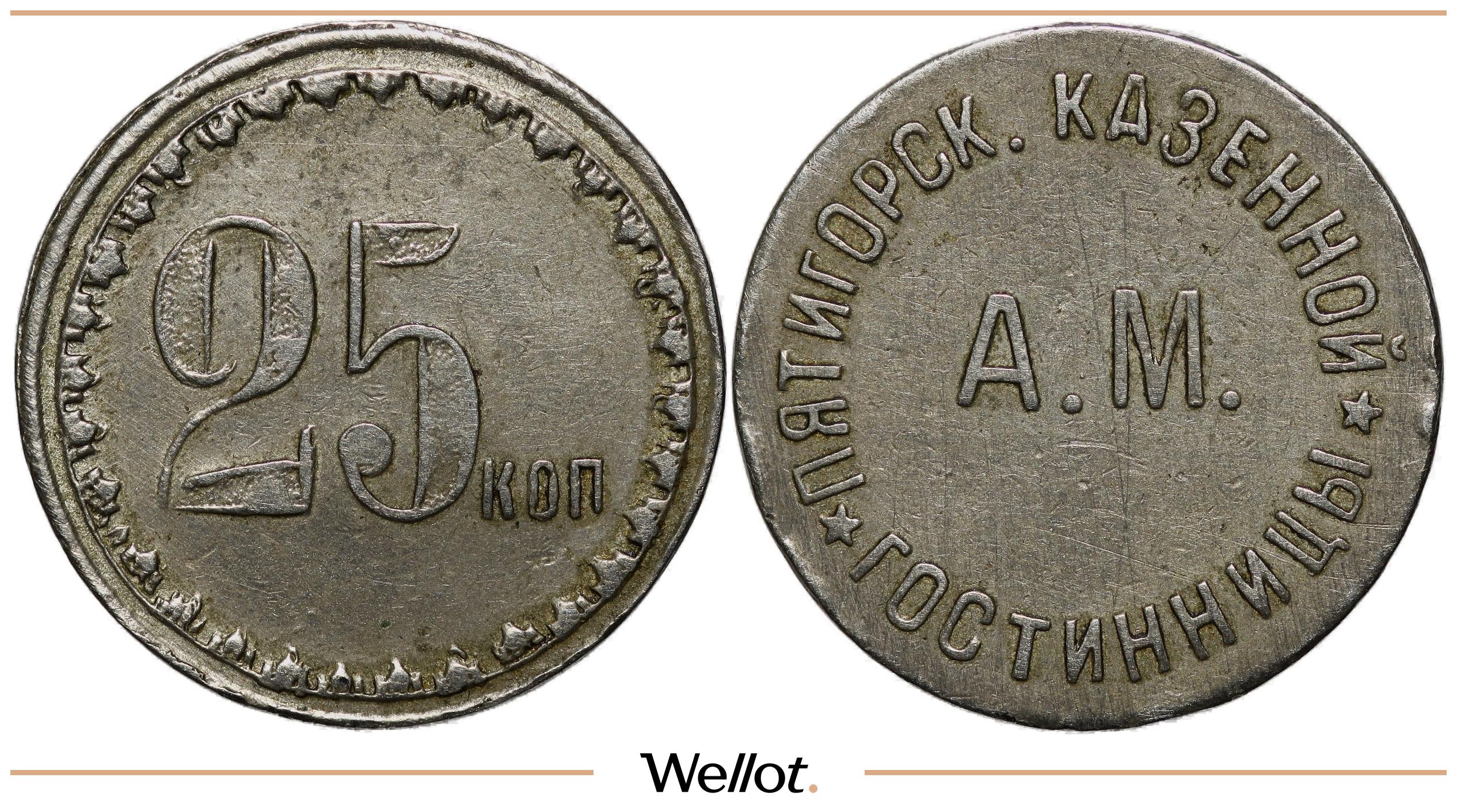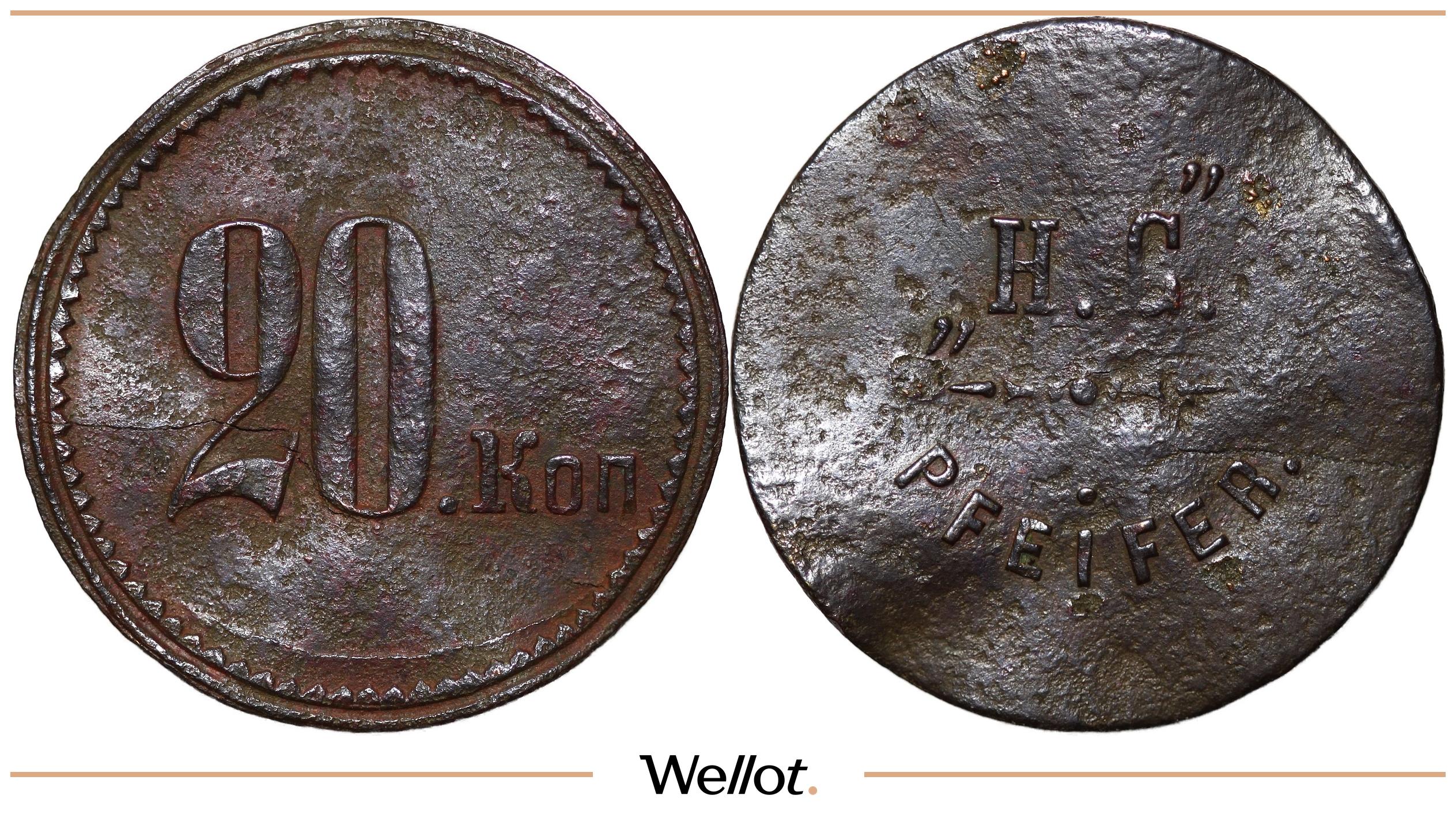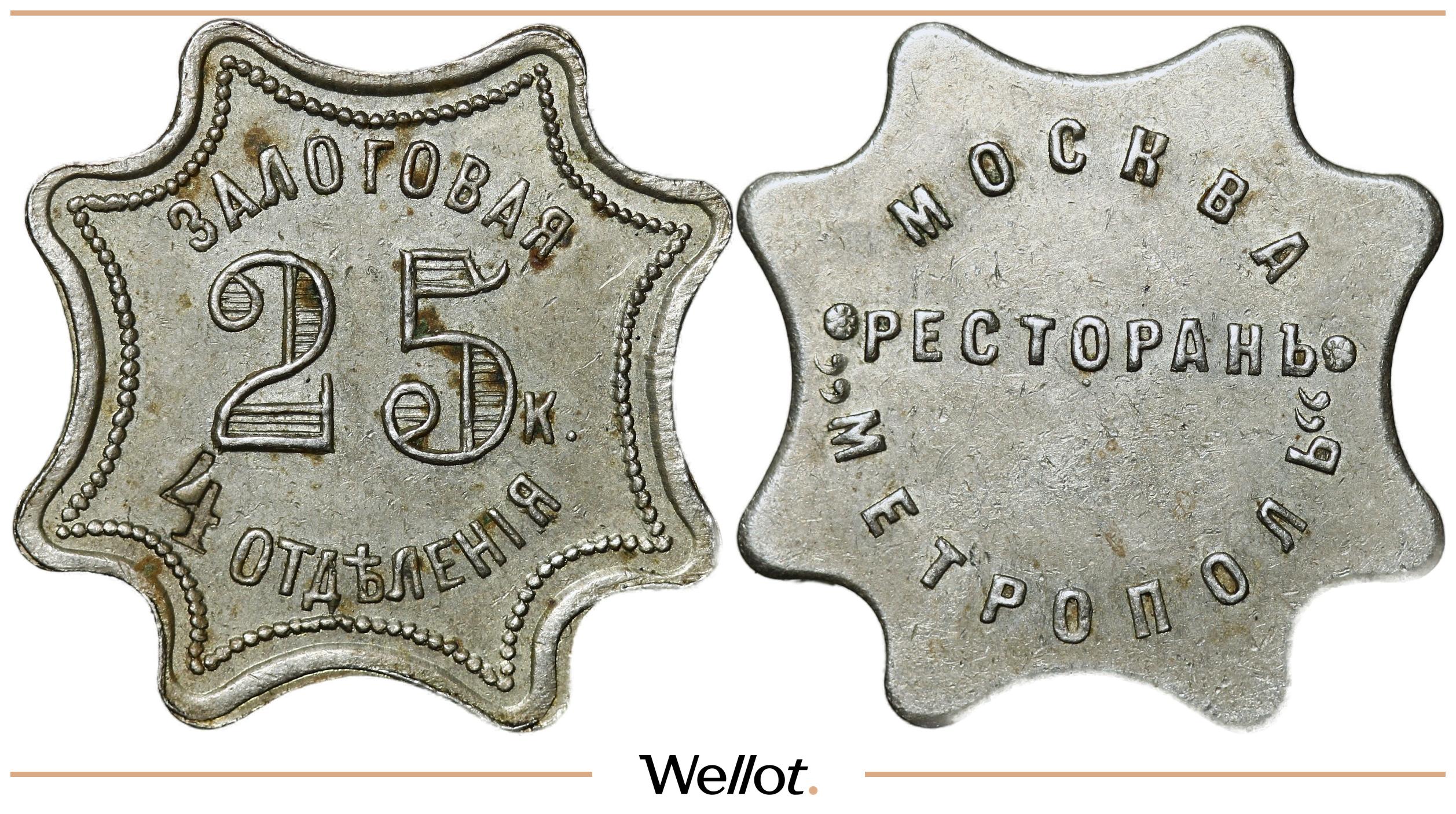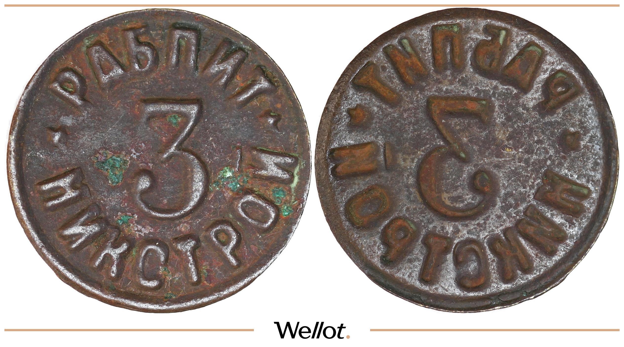Бронза. 2,37 г. Устав Товарищества высочайше утвержден 10 августа 1907 г. Основной капитал составлял 300.000 рублей.