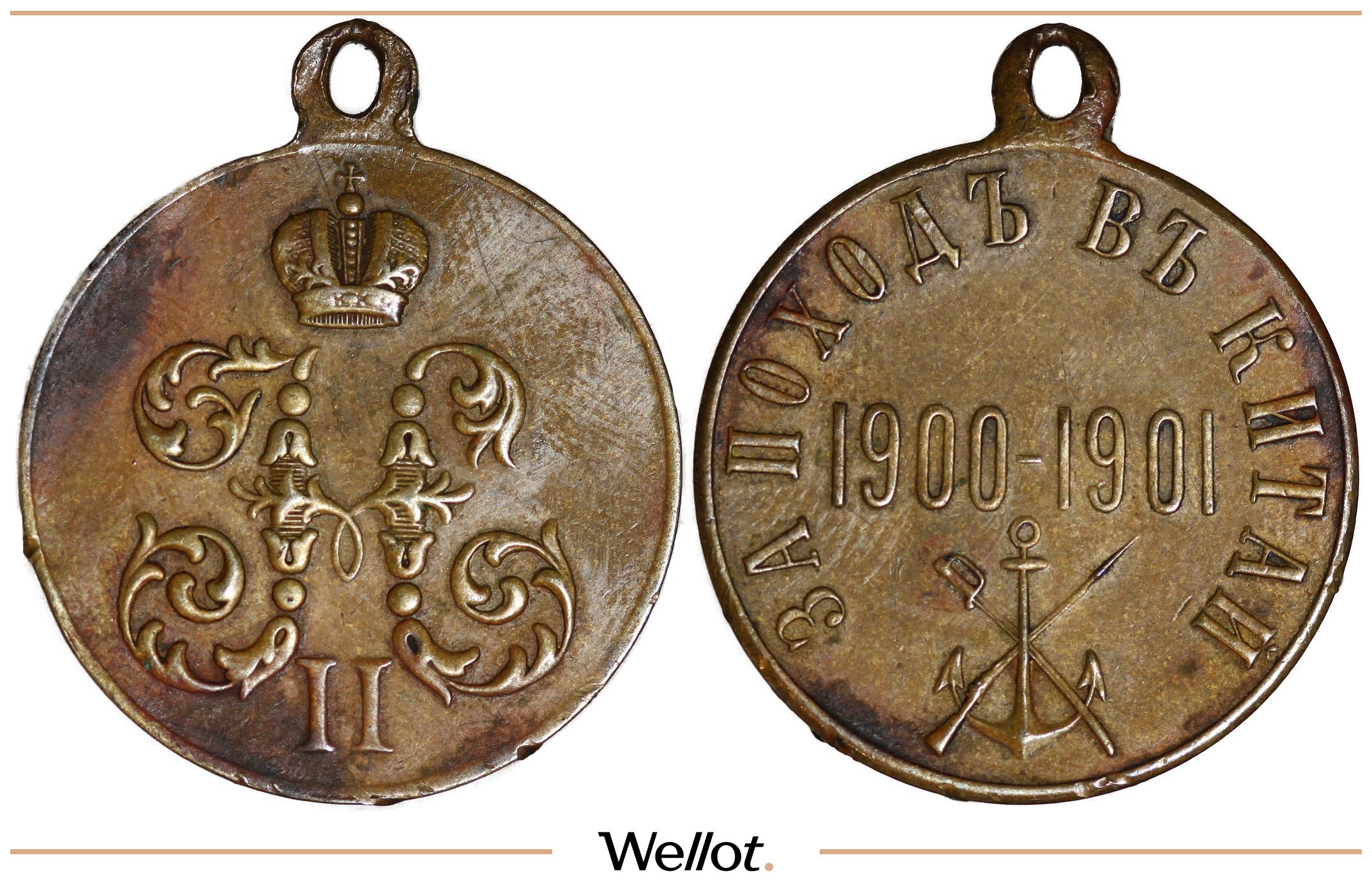 Учреждена 6 мая 1901 г. Светло-бронзовой медалью награждали всех чинов военного и морского ведомств, находившихся в пределах Китая и местностях, объявленных на военном положении, но не принимавших участия в боях. Медалью также были награждены женщины – почтово-телеграфные служащие Благовещенской конторы. Было отчеканено 106000 светло-бронзовых медалей.