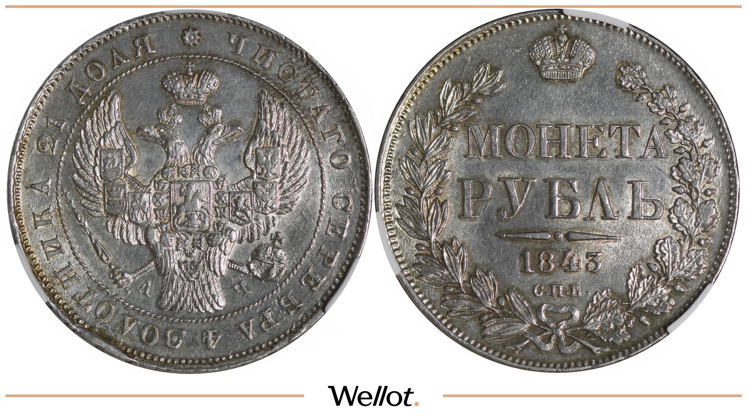 Дьяков 1206.3 (R3). Серебро. 7,53 г. Диаметр 25 мм. Гравер M. Габе. Зеркальный блеск. Легкая чистка.