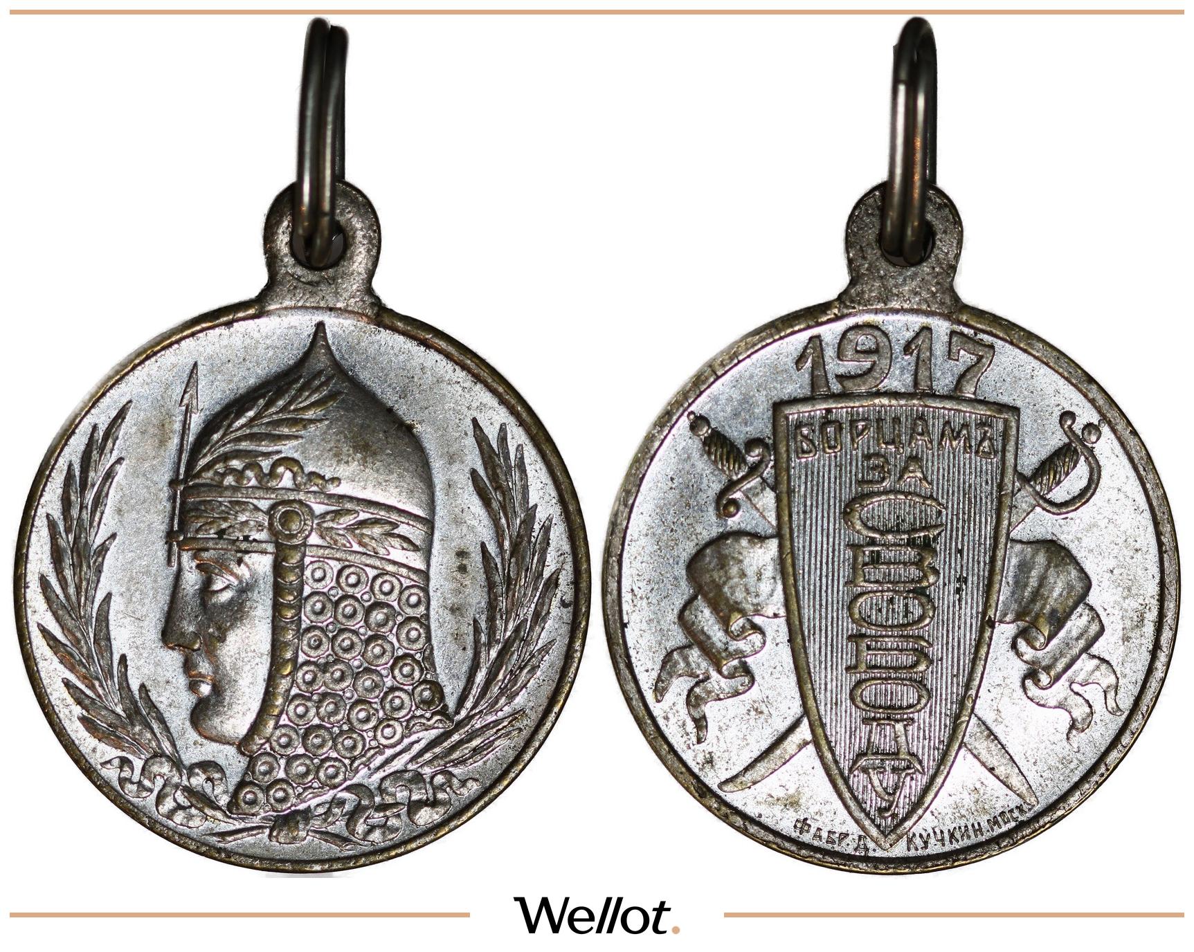 Дьяков# 1133.17 (R1). Белый металл. Диаметр 28 мм. Петроградский Монетный двор, по эскизу художника Ивана Билибина.