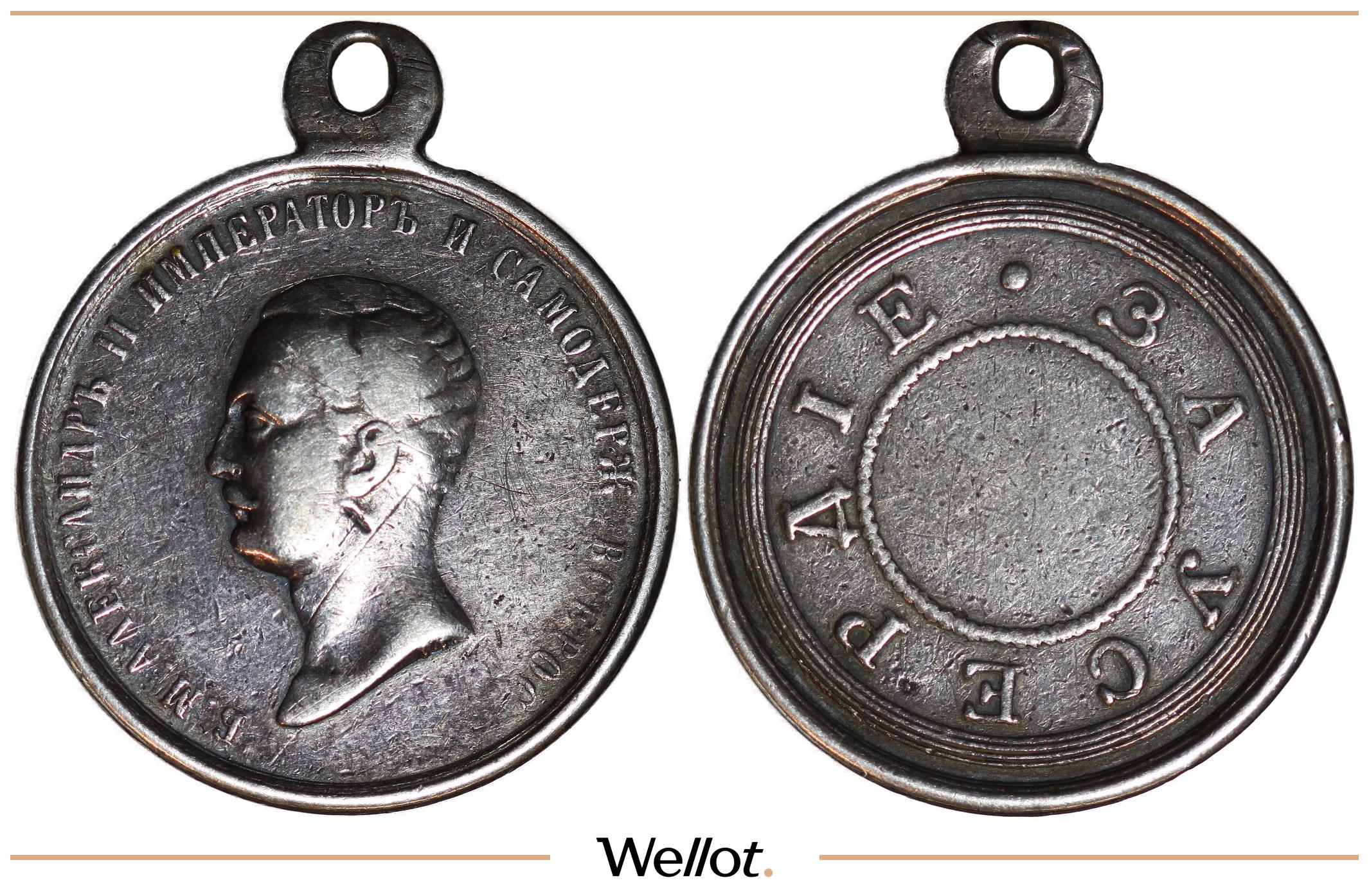 Учреждена в 1801 г. в царствование Императора Александра I. Медалями награждали купцов, крестьян и мещан за различные услуги, оказанные правительству, а также нижних воинских чинов за сверхсрочную службу. Рисунок лиц. ст. медали с портретом Императора Александра II работы В.В.Алексеева был Высочайше утвержден 4 марта 1855 г., а первые медали отчеканены в мае — июне того же года.