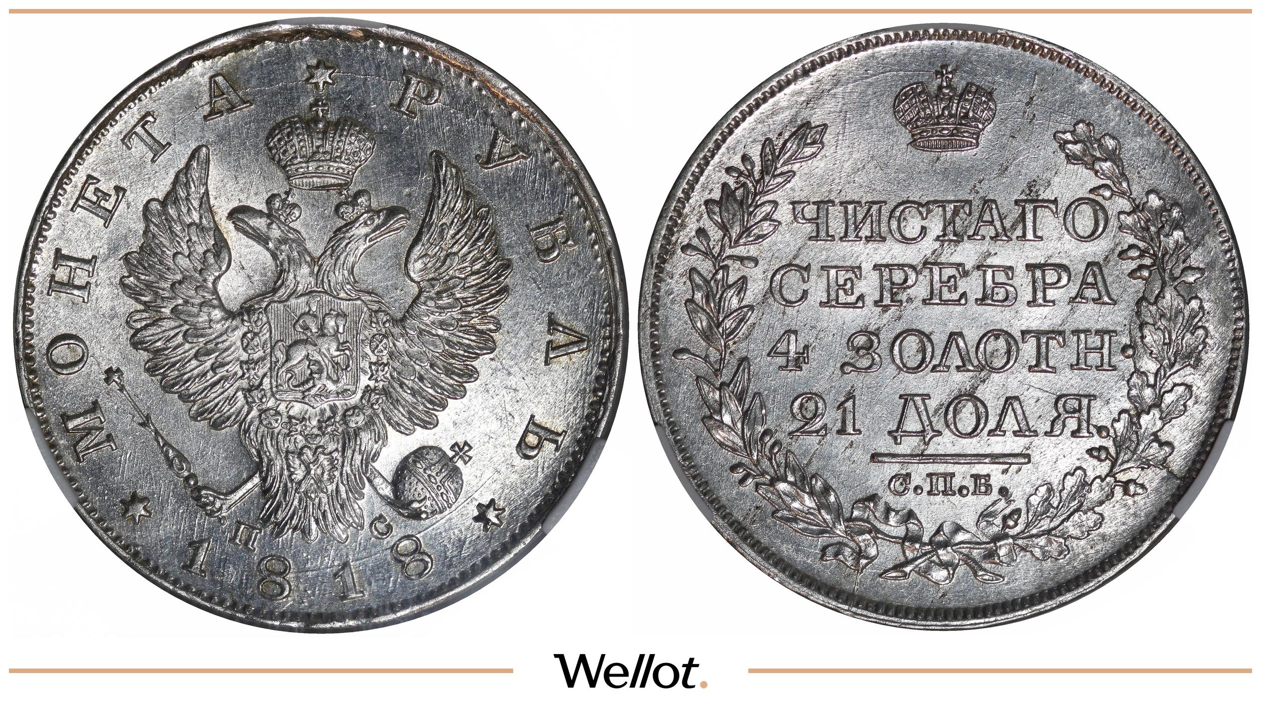 Биткин# 124. Орел 1819. Красивая штемпельная монета, отличный прочекан мелких деталей рельефа.