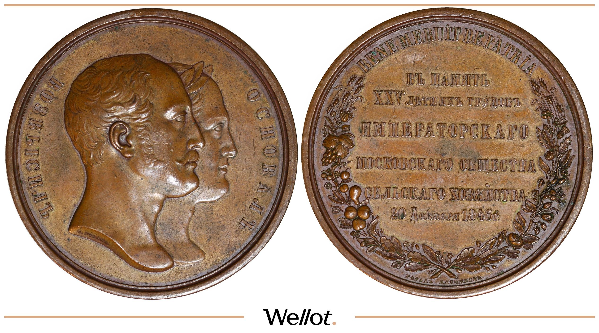 Дьяков# 1027.1 (R1). Бронза. Диаметр 47 мм. Гравер X. Ян. Состояние близкое к превосходному. Яркое зеркальное поле.