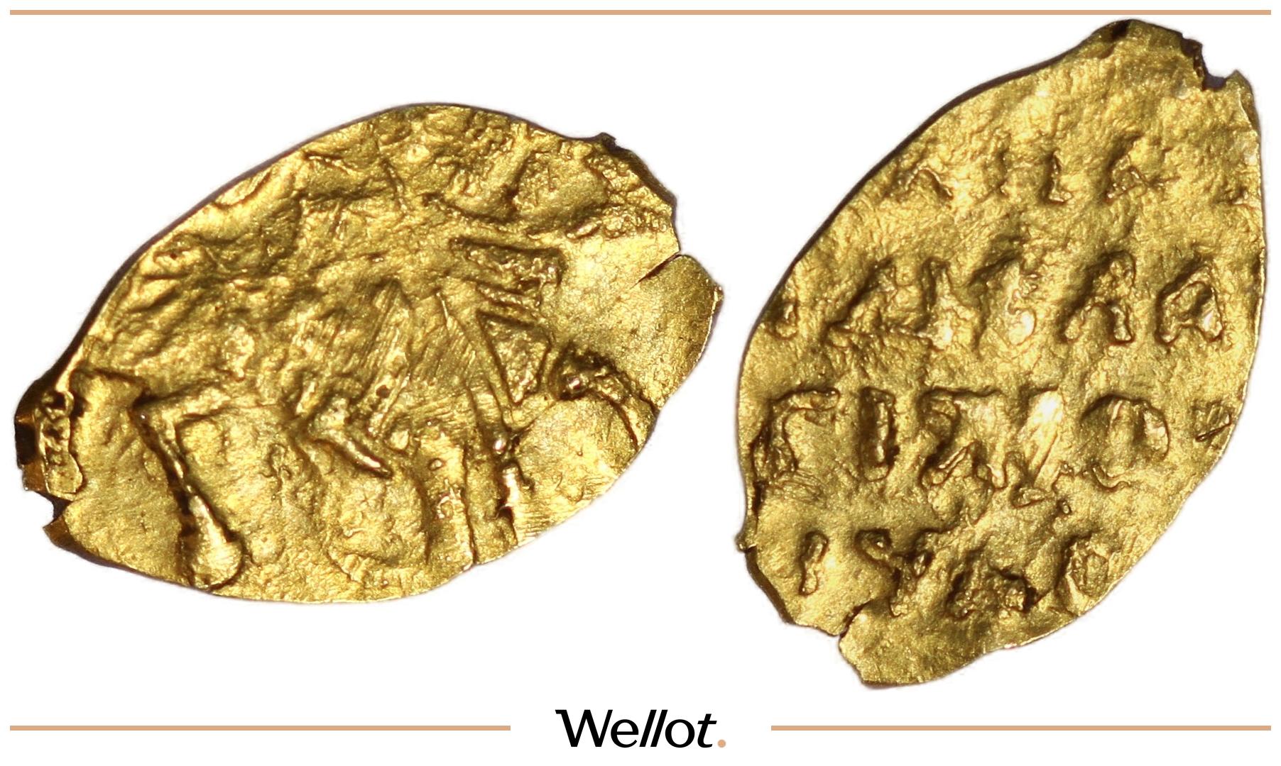 Биткин# 33А. Мельникова C. 116-118. Золото. 0,33 г. С экспертным заключением ЦИКЦ. Очень редкая.