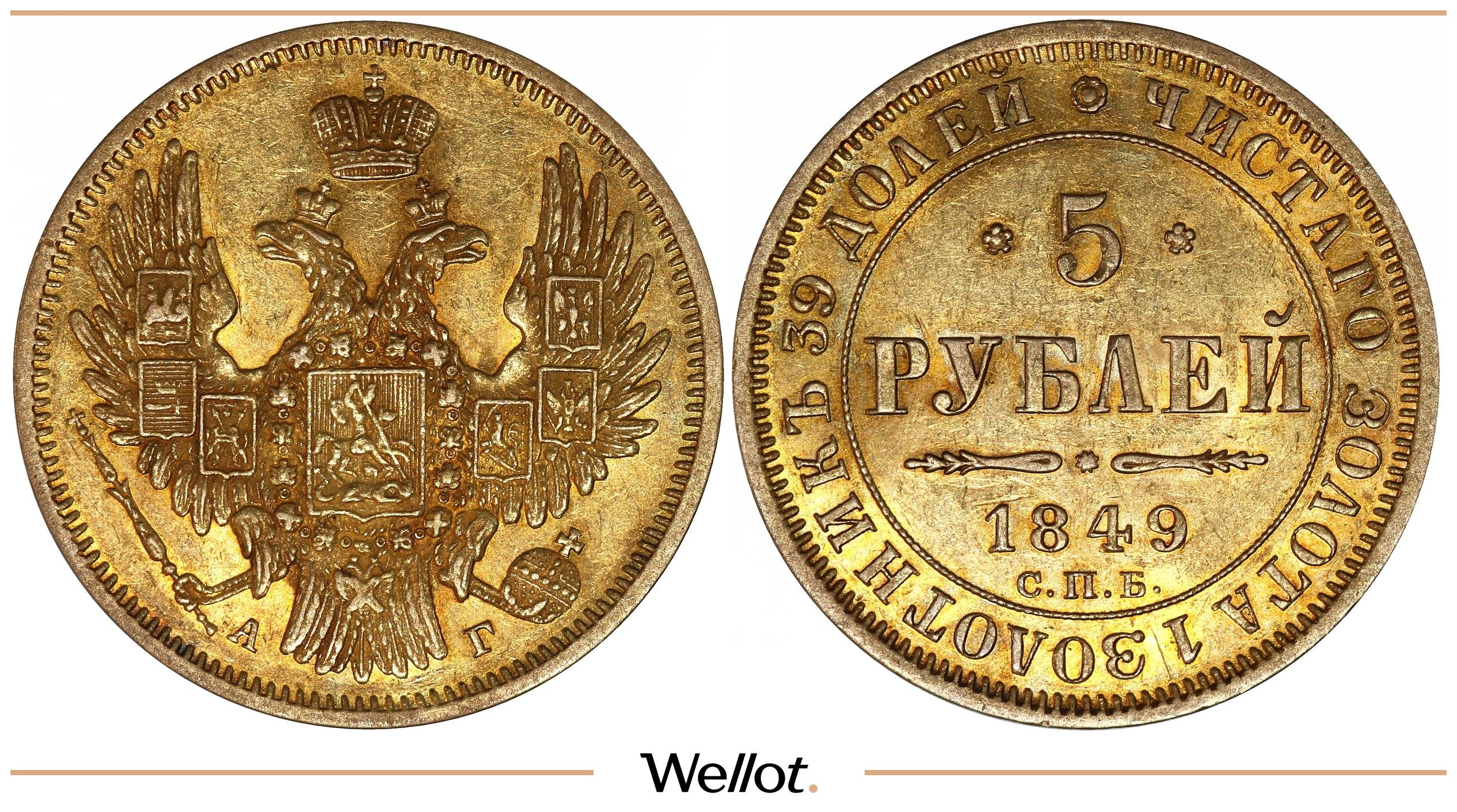 5 Рублей 1849 СПБ АГ Николай I AUNC