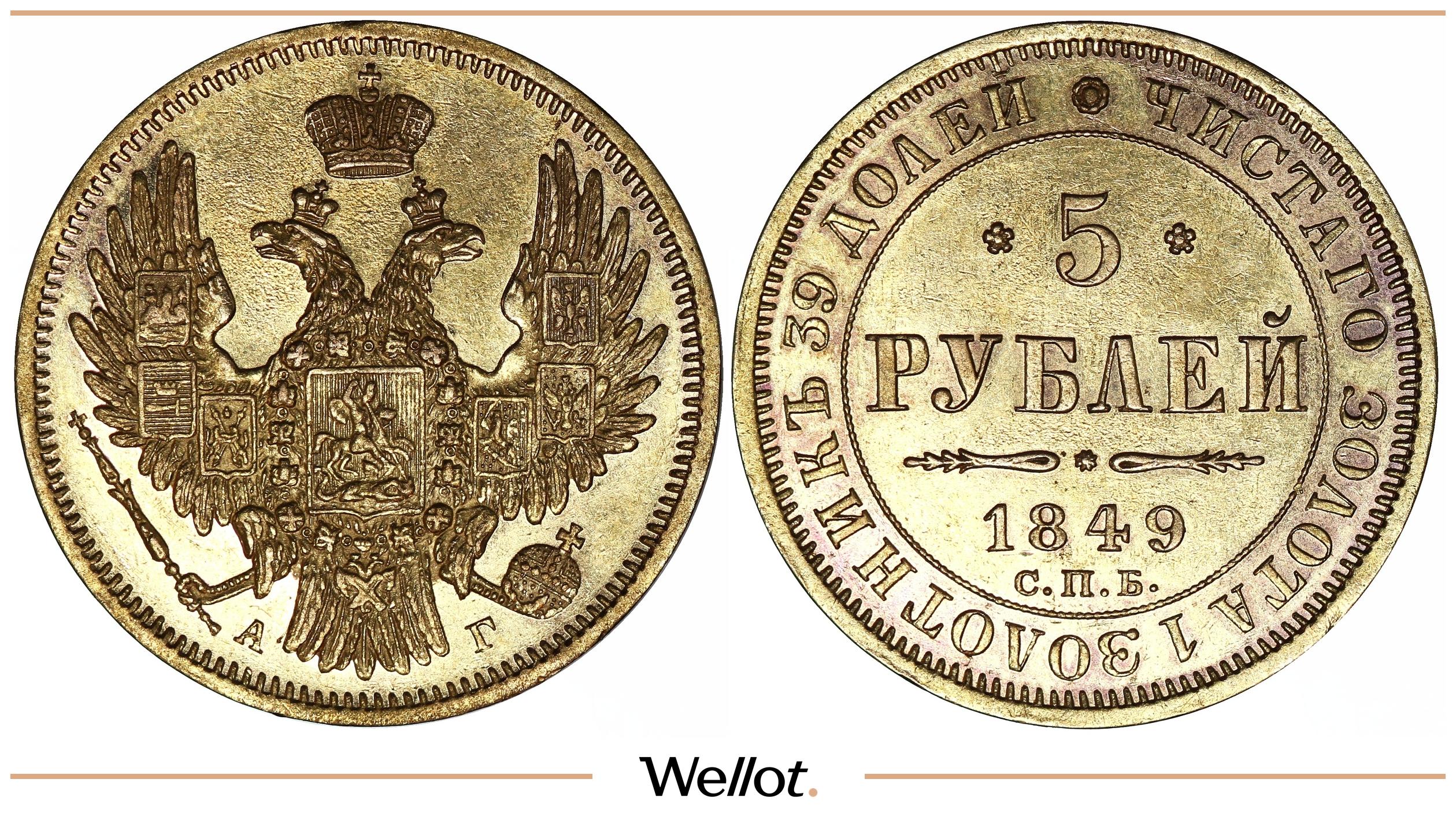 5 Рублей 1849 СПБ АГ Николай I UNC-