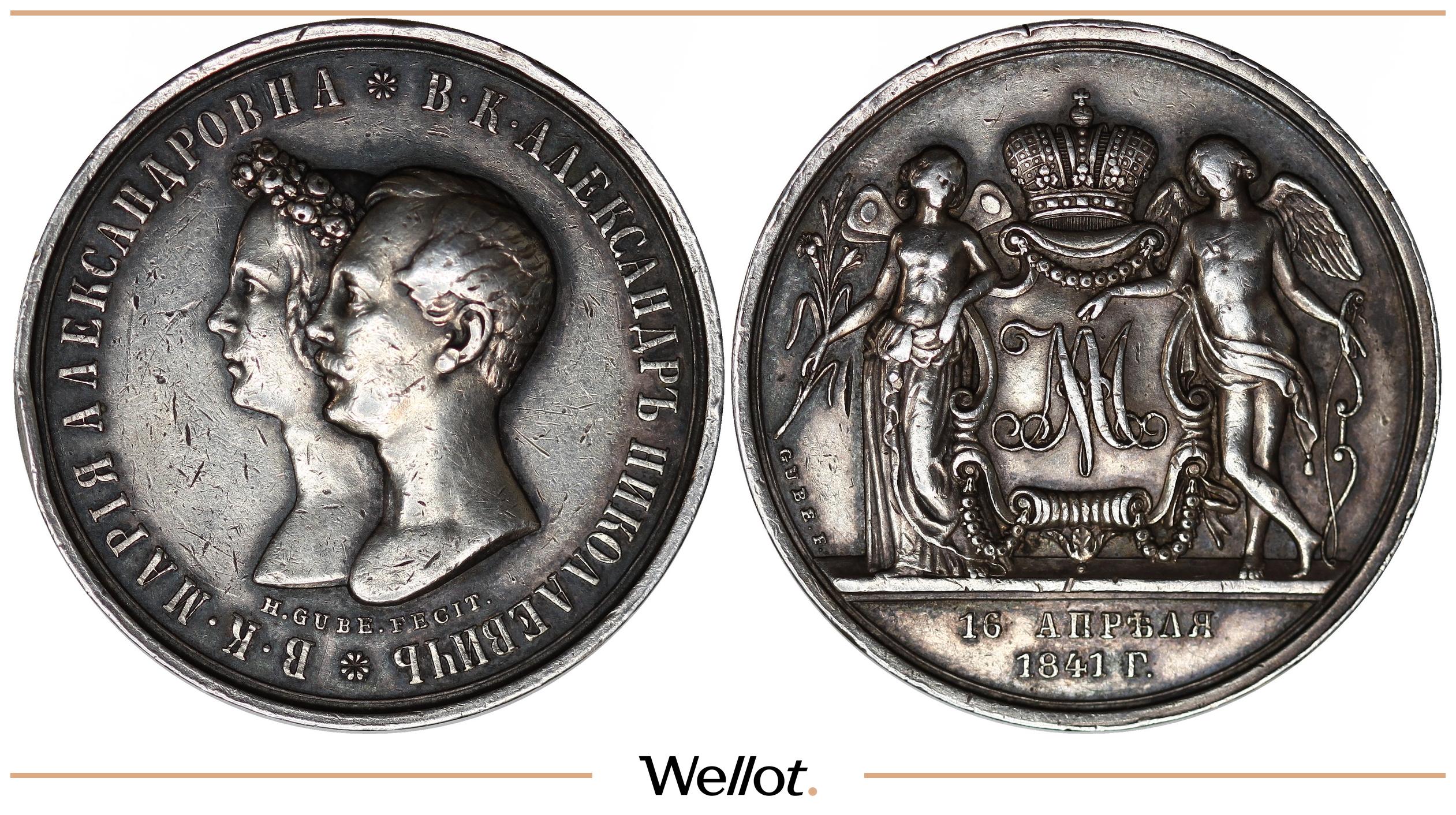 Биткин# 903 (R1). H. GUBE. FECIT. 30,99 г. Тираж 900. Редкая. Оригинальная патина. Микроцарапины, замятие канта на 8 часов к аверсу.
