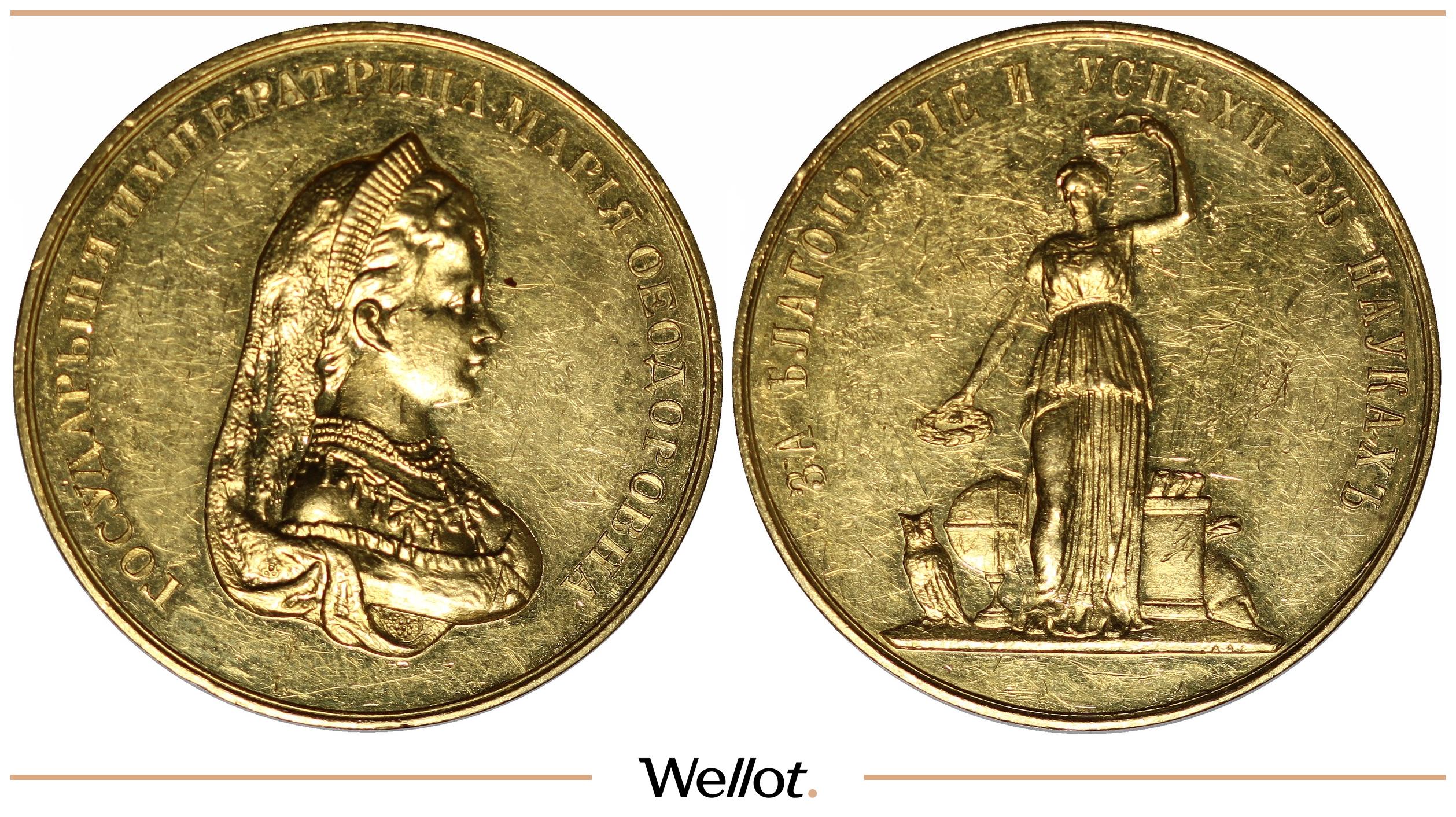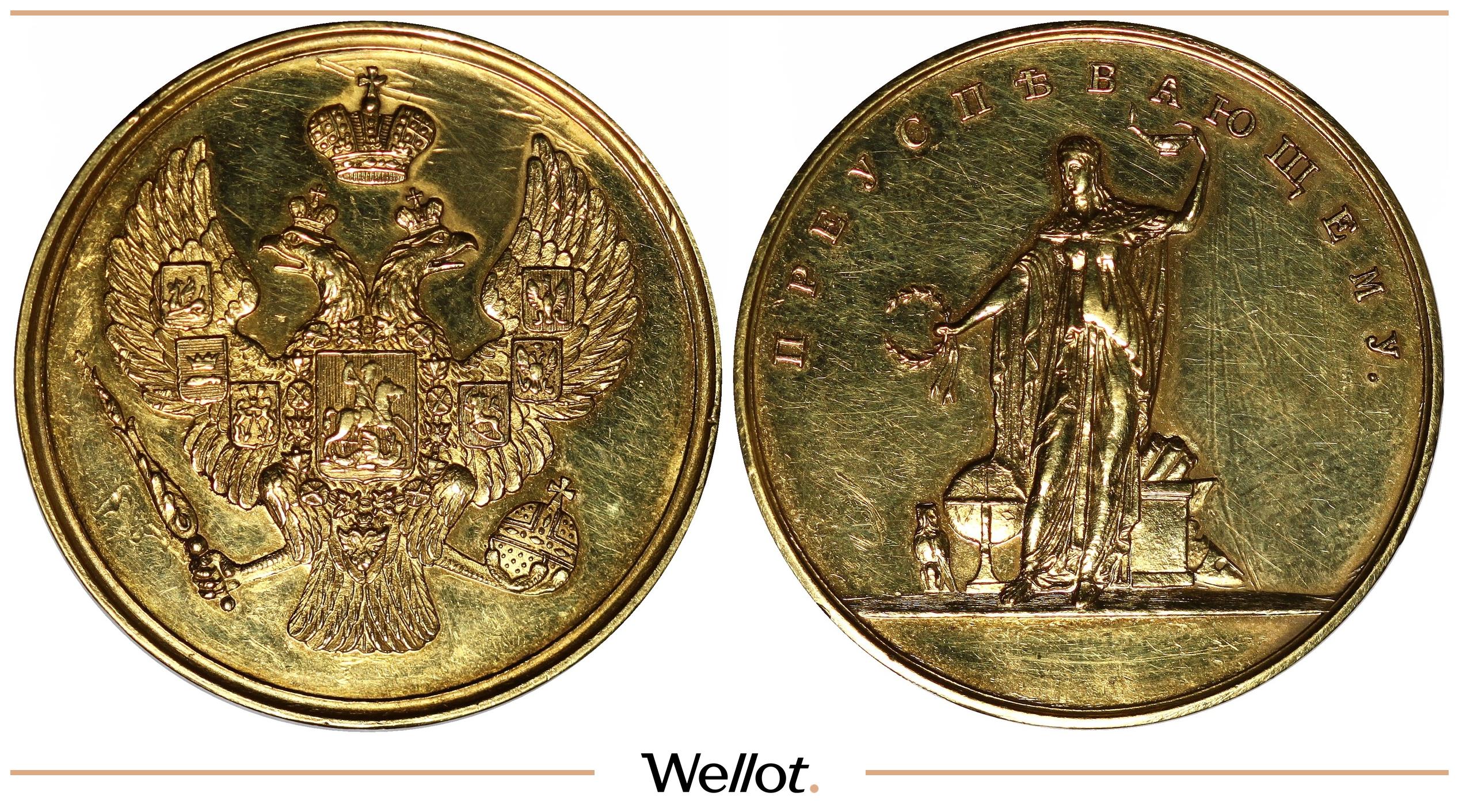 Дьяков# 909.9 (R2). Золото. 25,82 г. Медальер А.А. Грилихес (сын). Состояние отличное, зеркальный блеск по полю. Редкая.