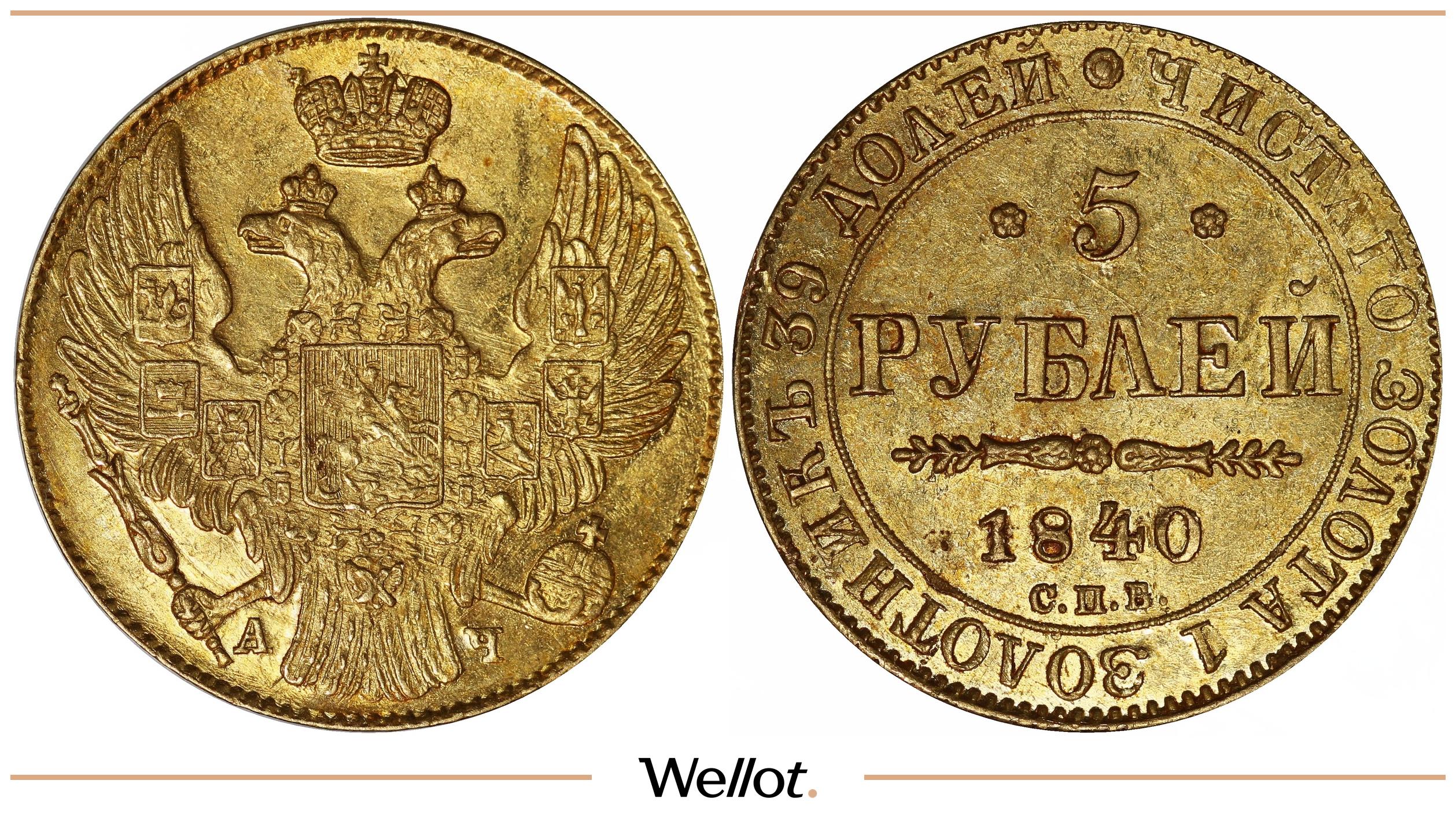 5 Рублей 1840 СПБ АЧ Николай I UNC-