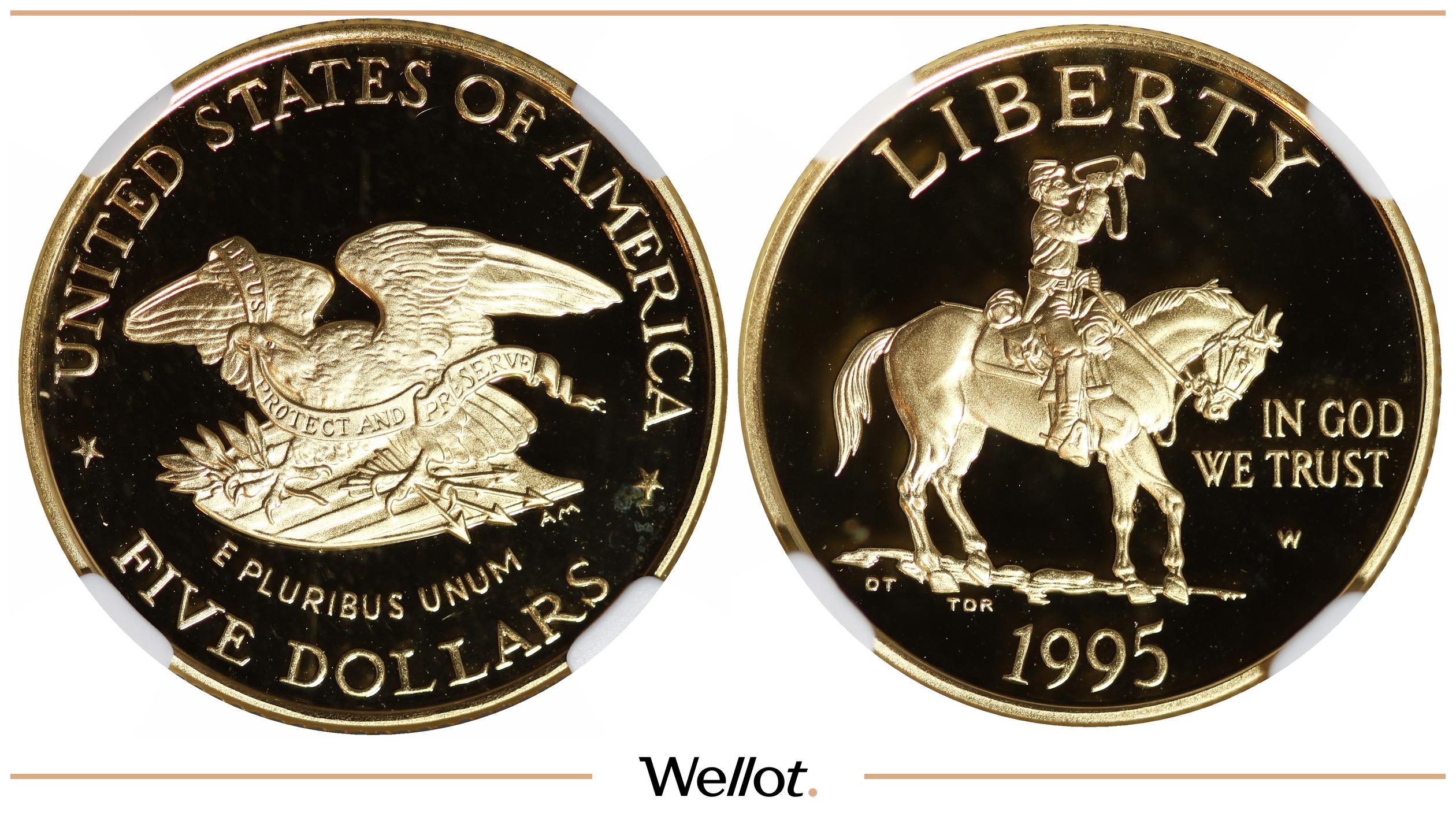 5 Долларов 1995 W Гражданская Война США NRG PF70