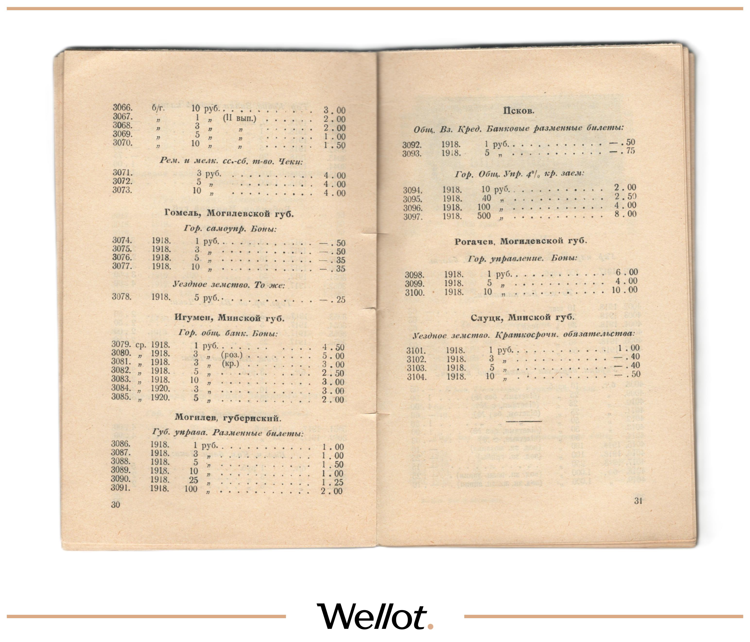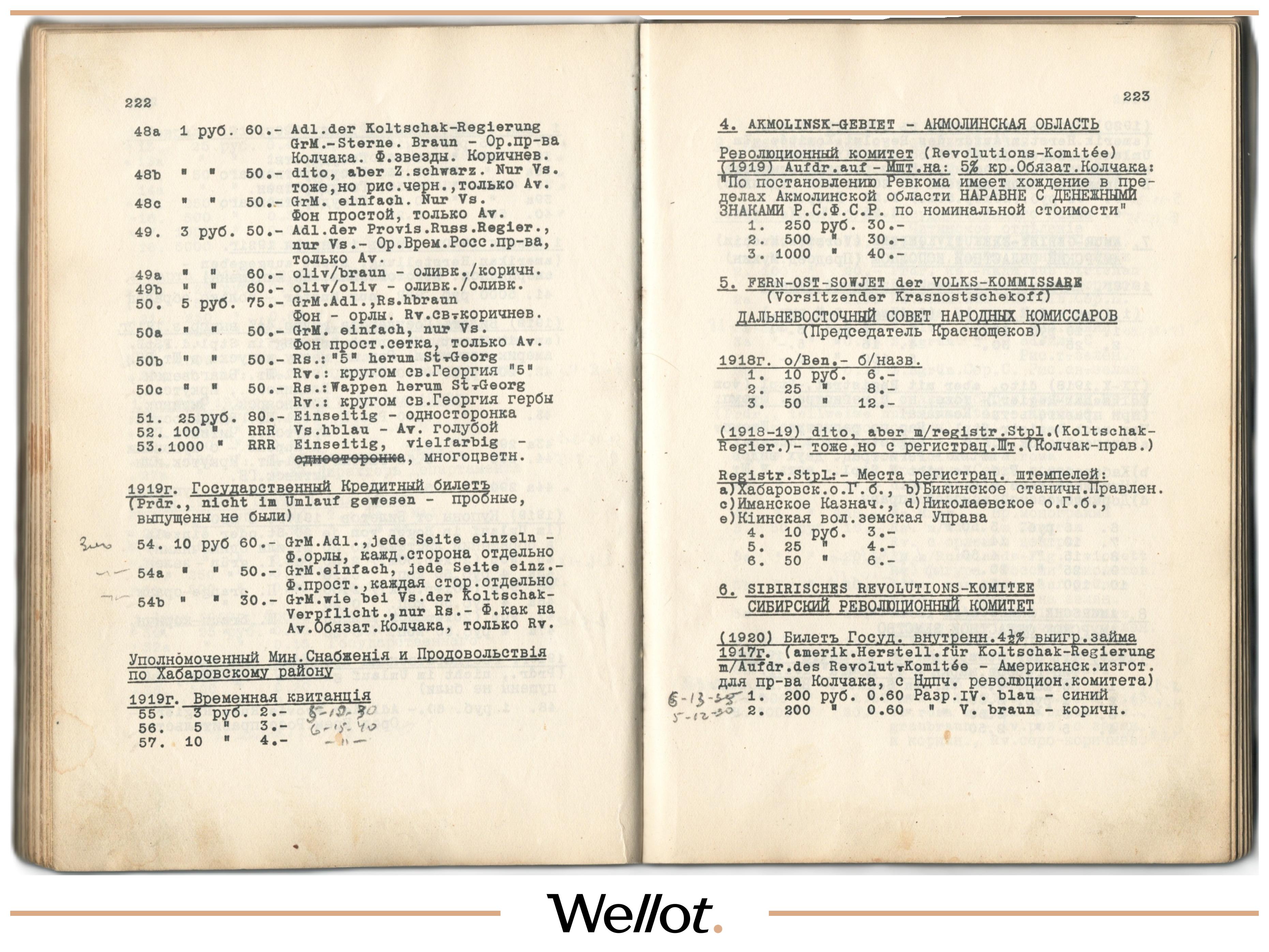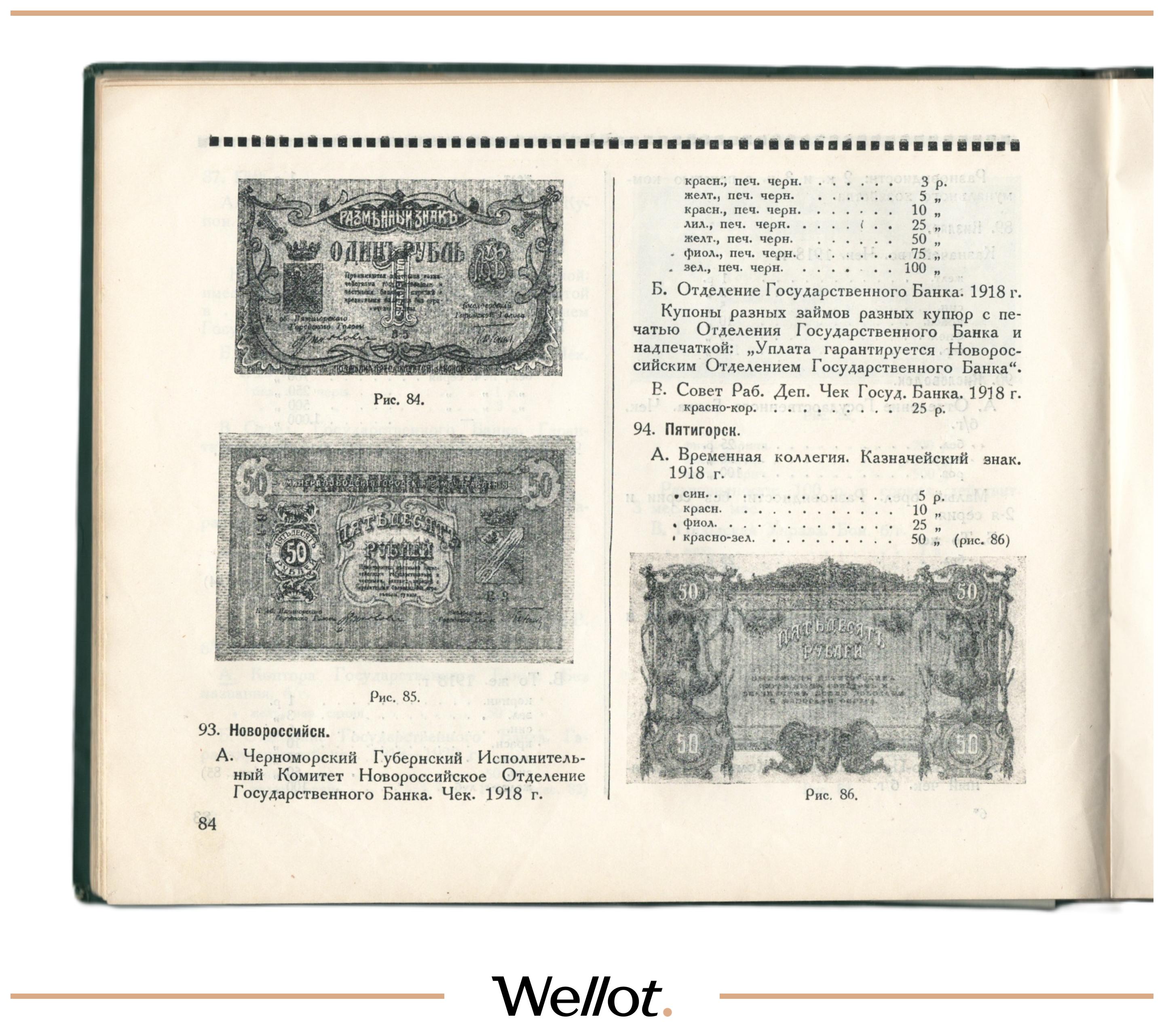 1. Перечень денежных знаков, выпущенных и курсировавших на территории бывшей Российской Империи в годы войны и Революции (1914–1923). Л.М. Иольсон и Н.И. Кардаков, 1923.