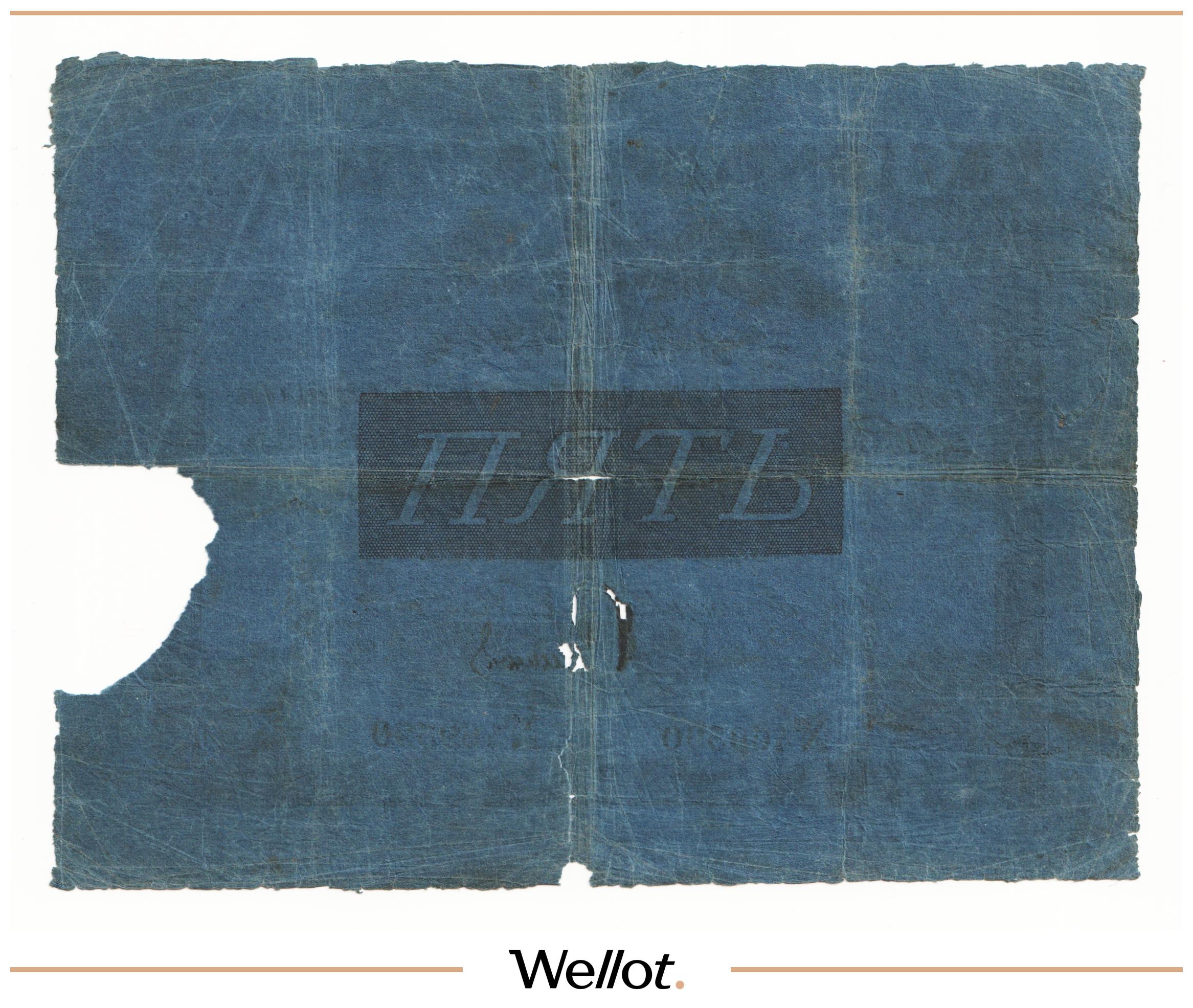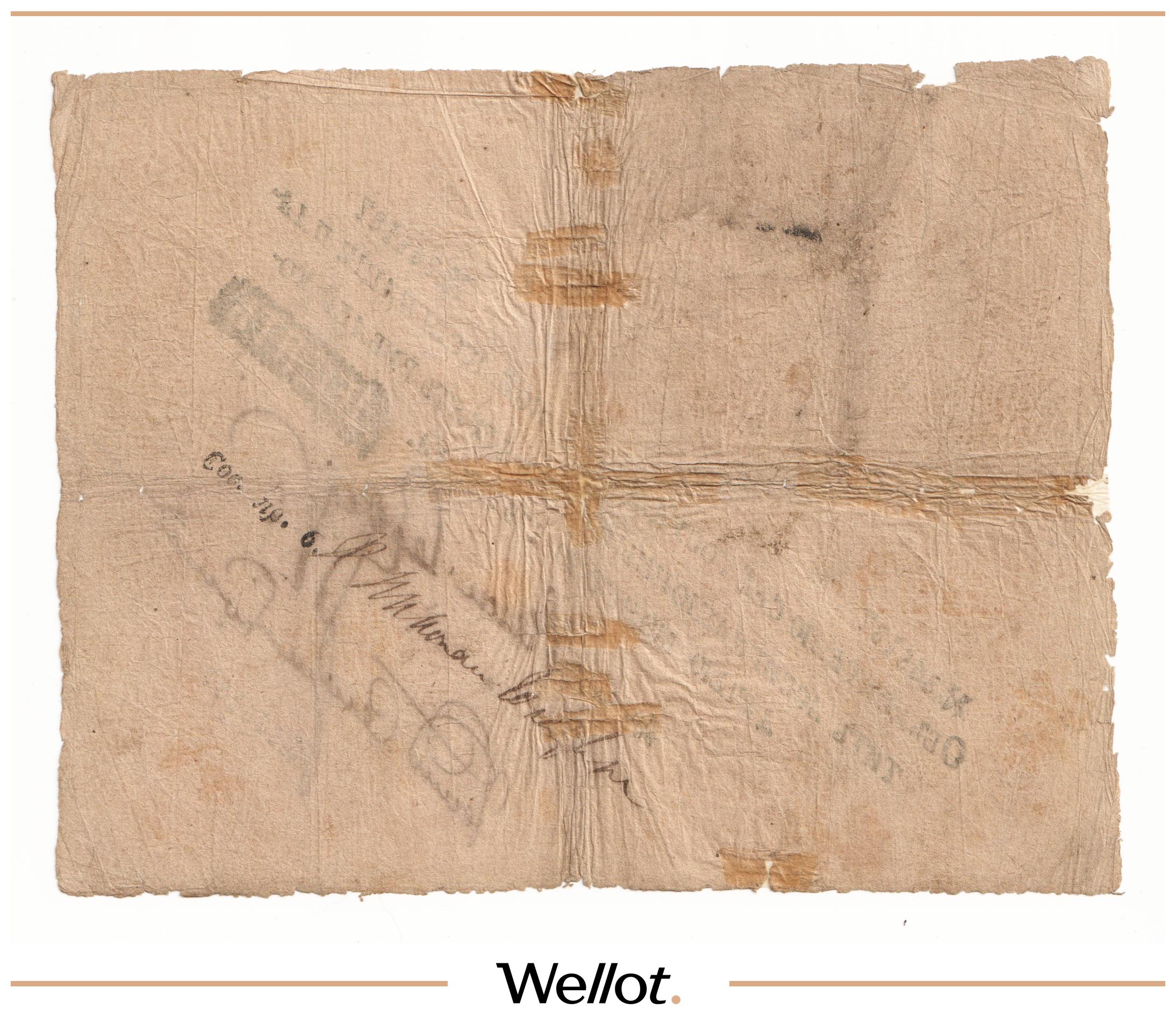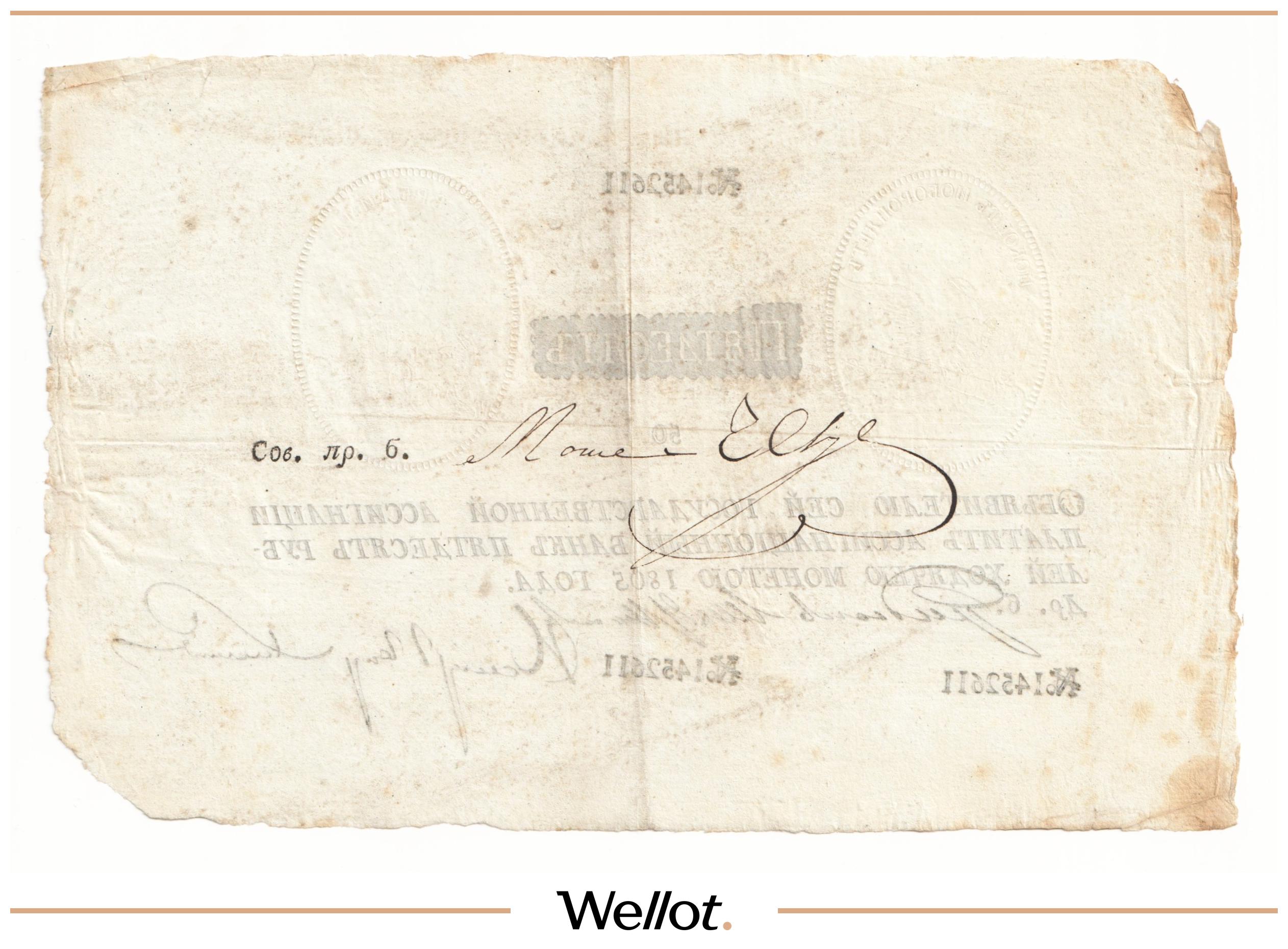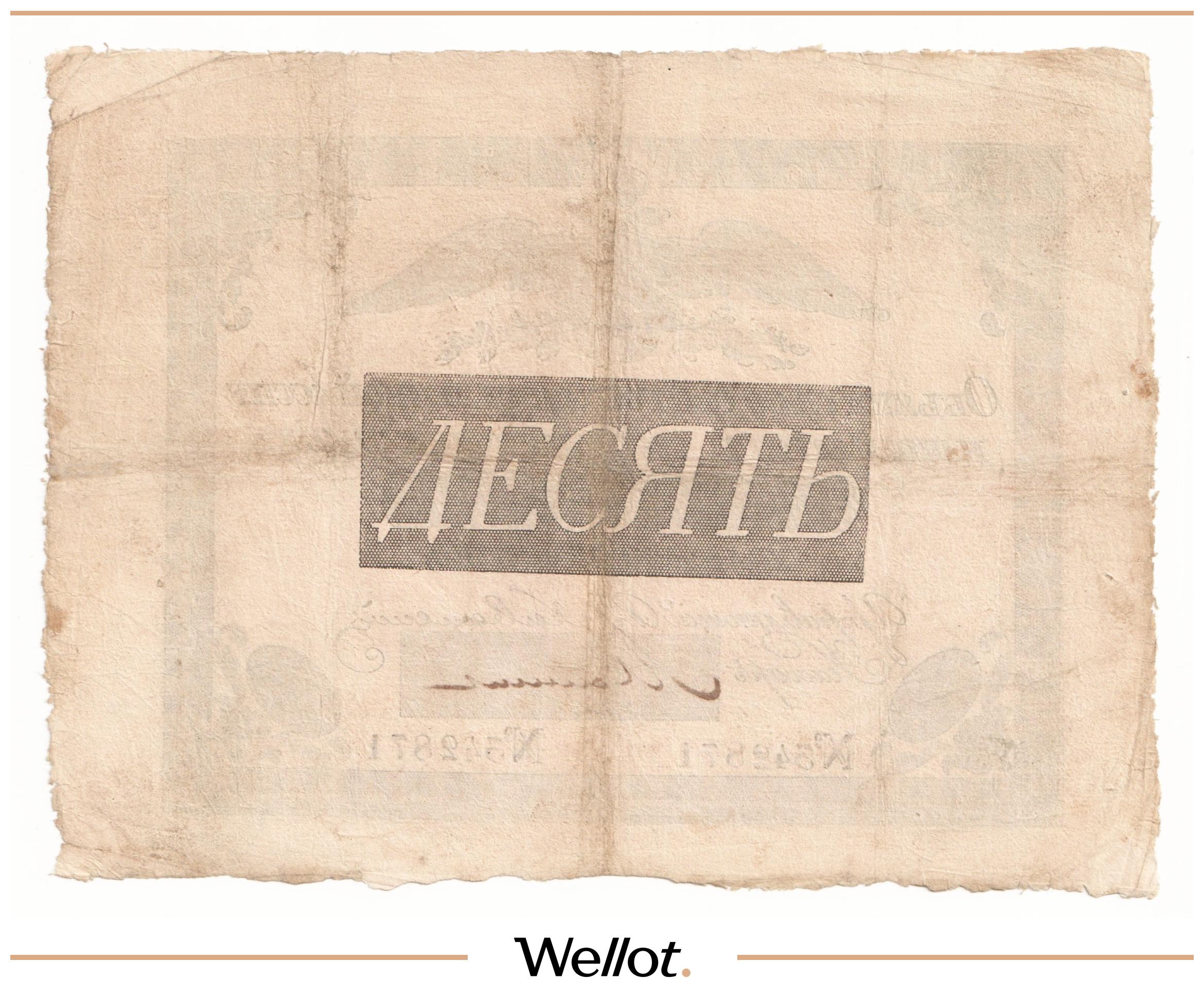 Крупный формат (200 х 170 мм) и монументальный дизайн этой купюры делает ее одним из самых впечатляющих бумажных денежных знаков первой половины XIX века. Перед вами значимый исторический артефакт и украшение любой серьёзной коллекции.