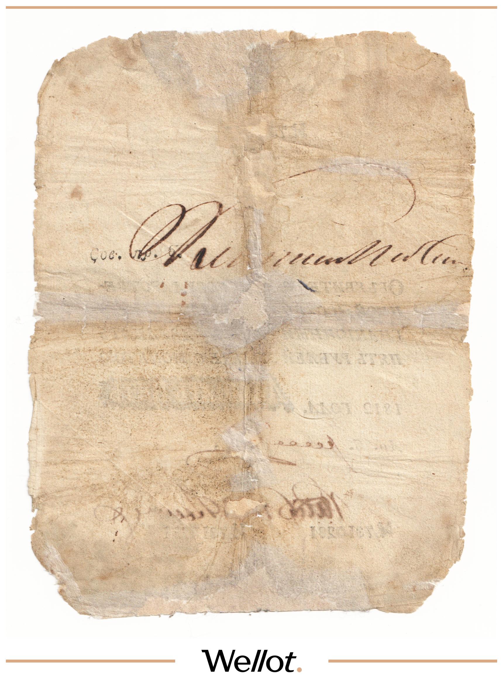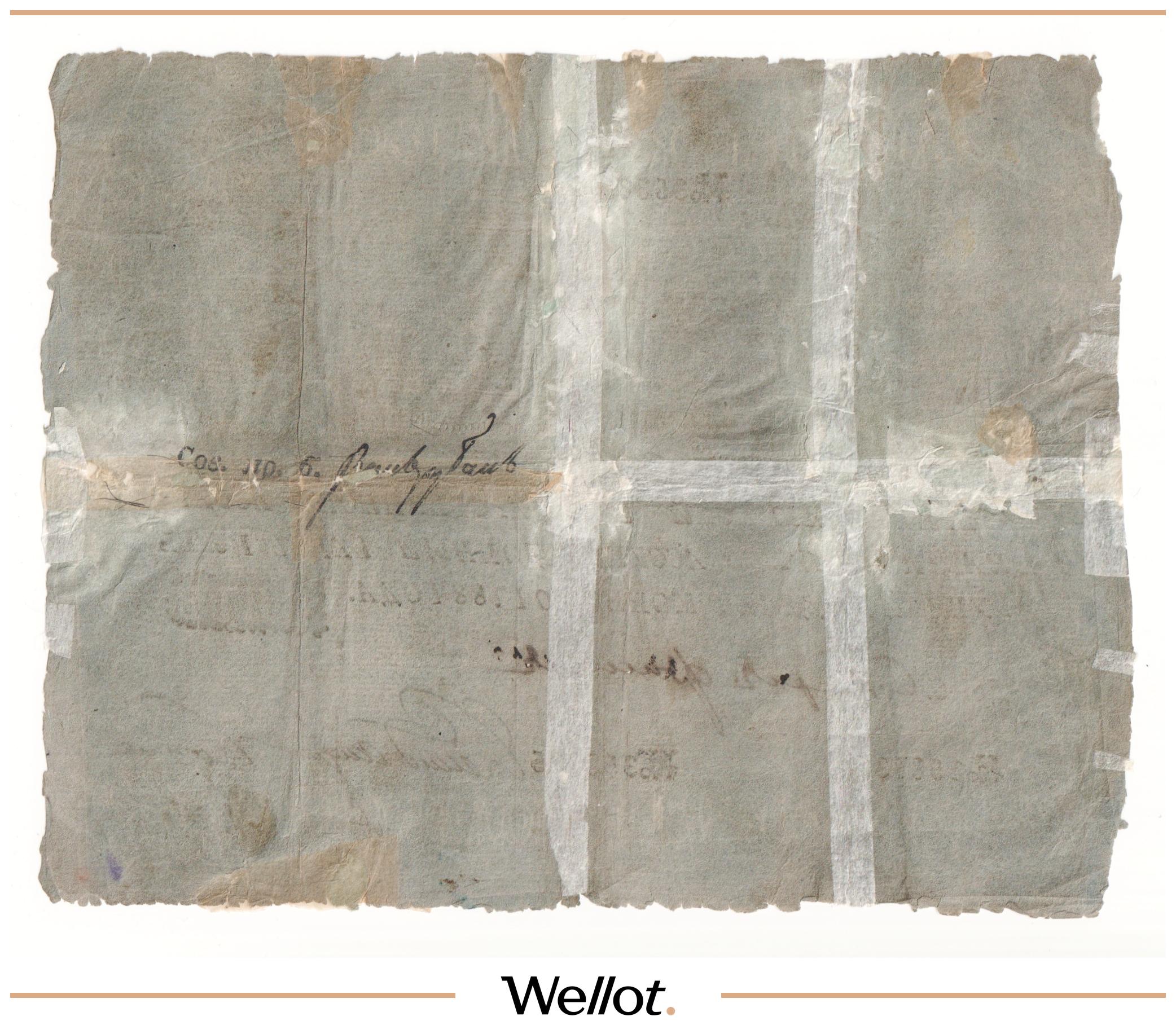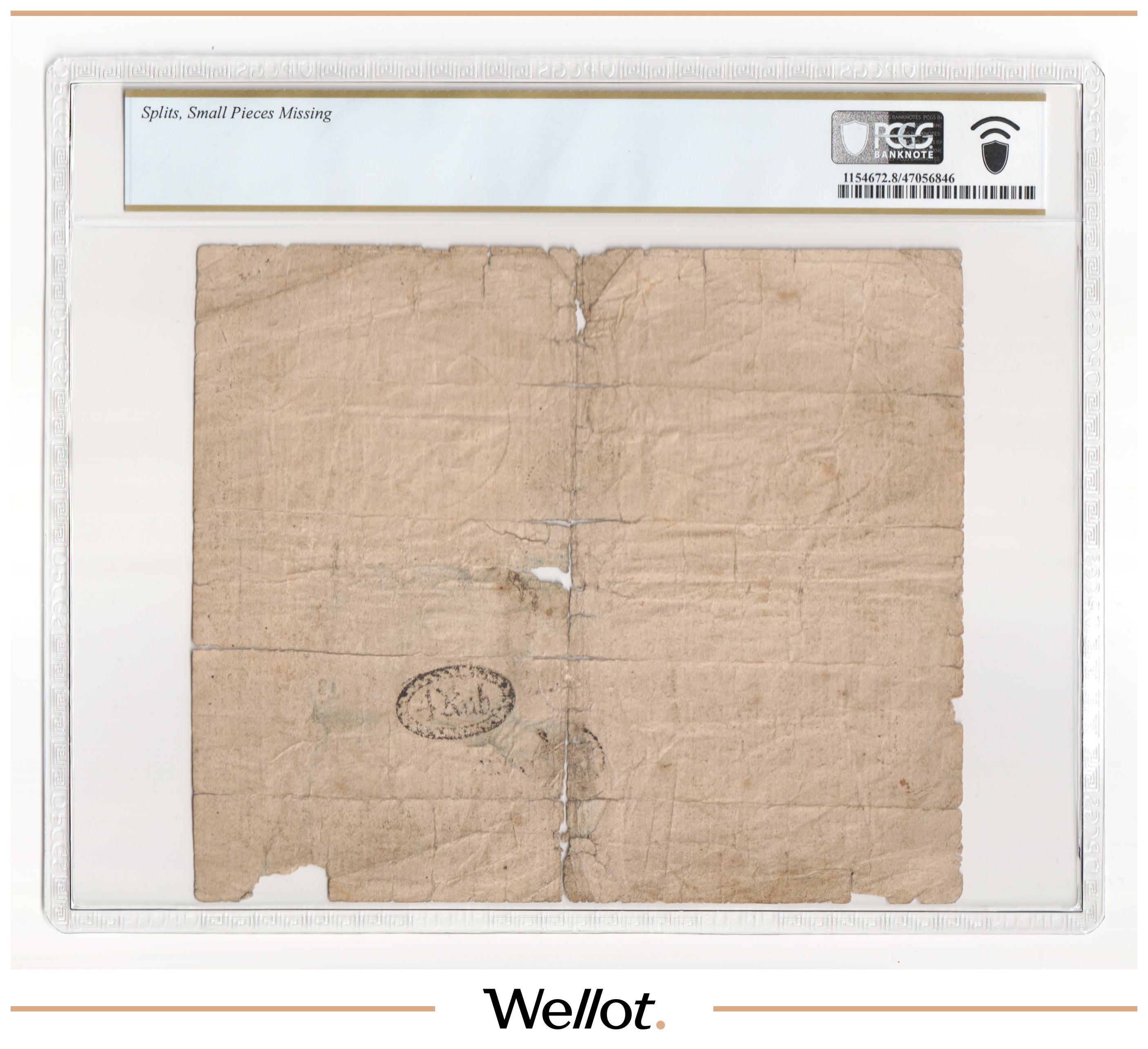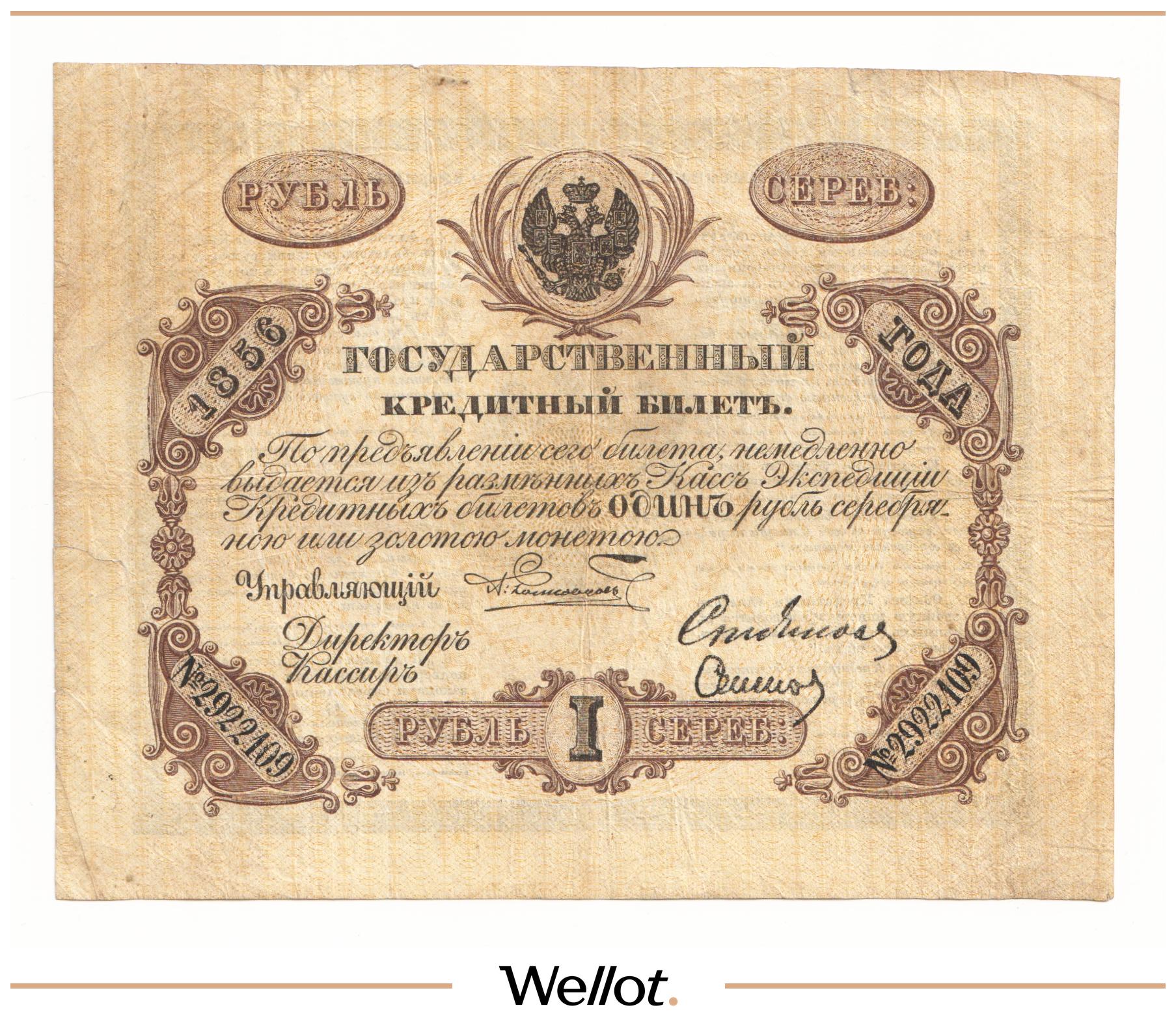 Крупный формат (200 х 170 мм) и монументальный дизайн этой купюры делает ее одним из самых впечатляющих бумажных денежных знаков первой половины XIX века. Перед вами значимый исторический артефакт и украшение любой серьёзной коллекции.