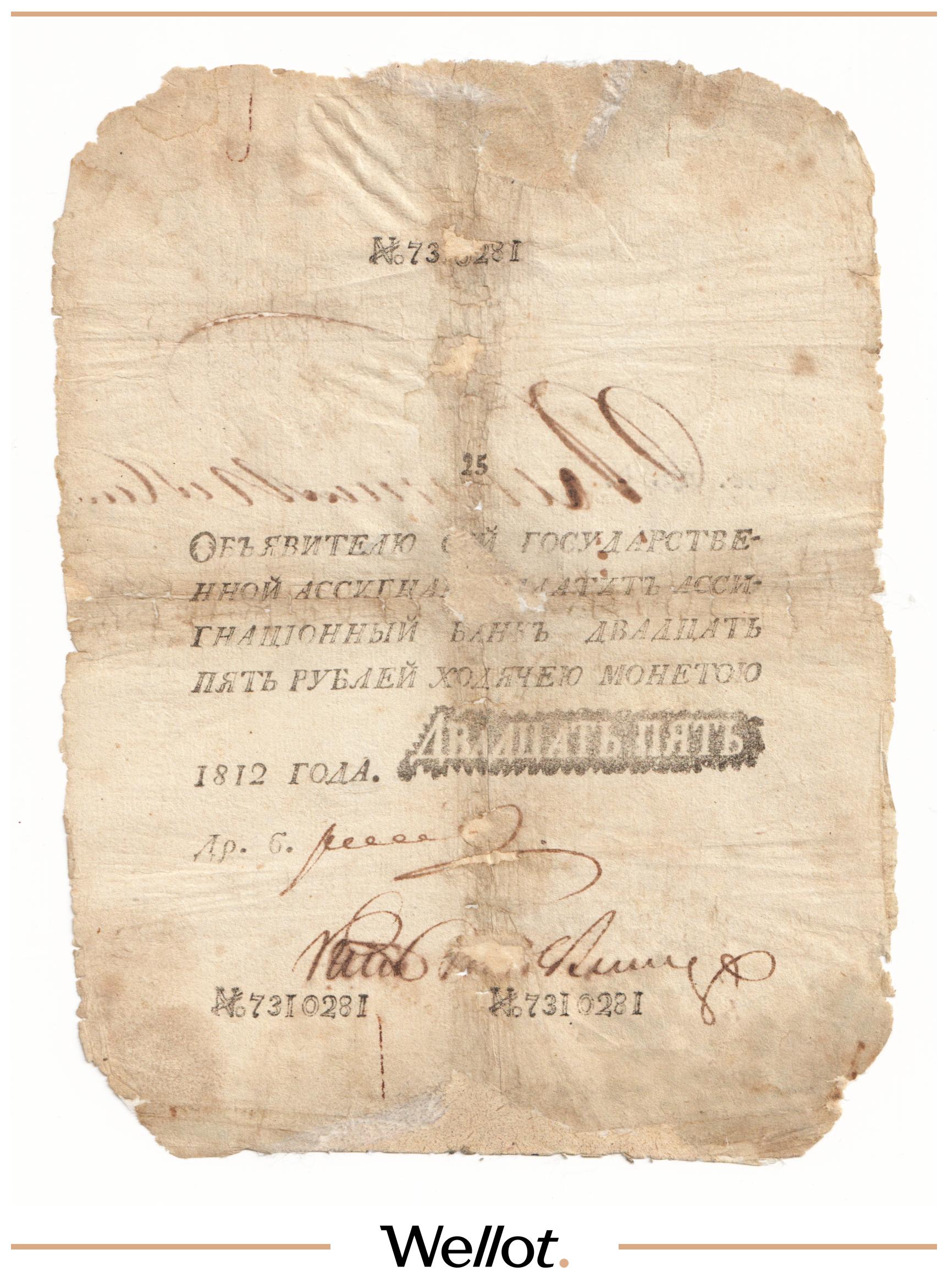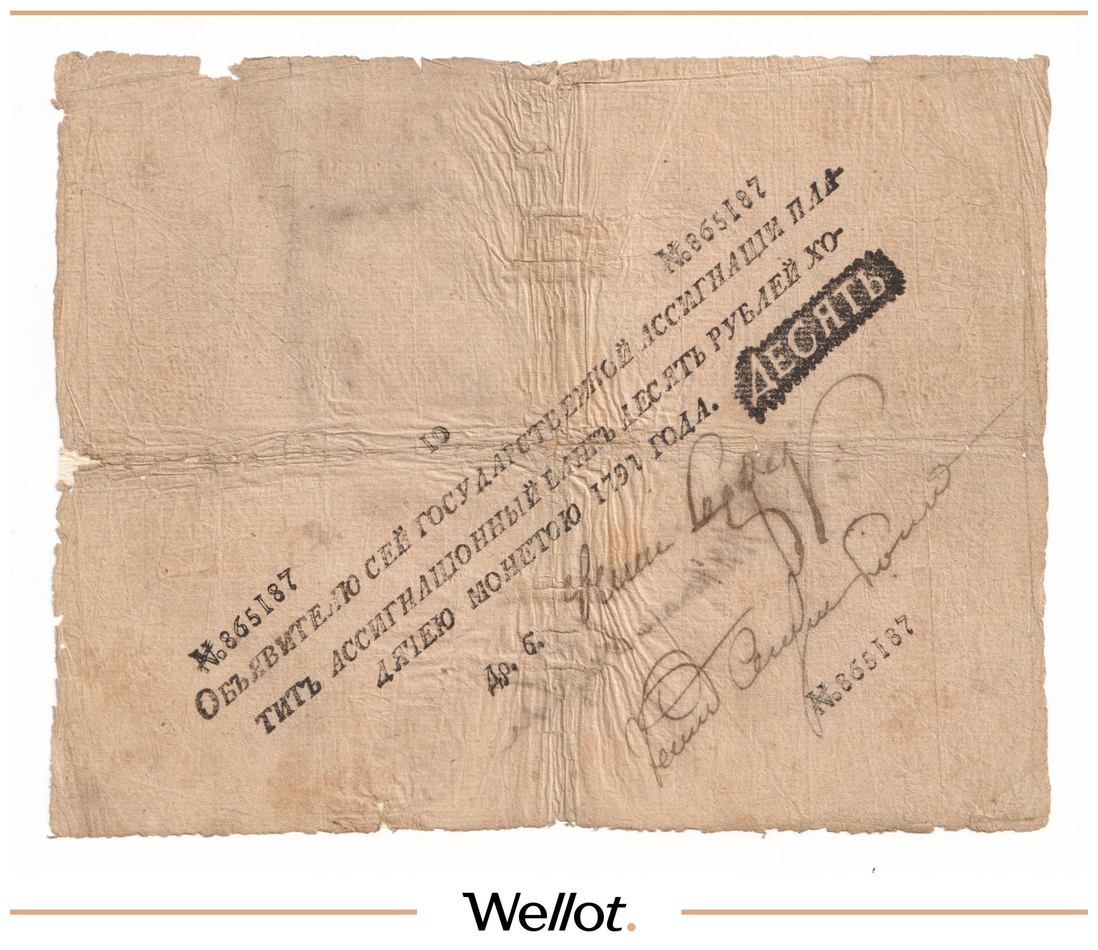Самые ранние датировки на ассигнациях II типа начинаются с 1787 года. Первые даты известны лишь в единичных экземплярах и представляют особую коллекционную редкость. Предмет находится у истоков истории бумажных денежных знаков России и является важнейшим артефактом музейного уровня.
