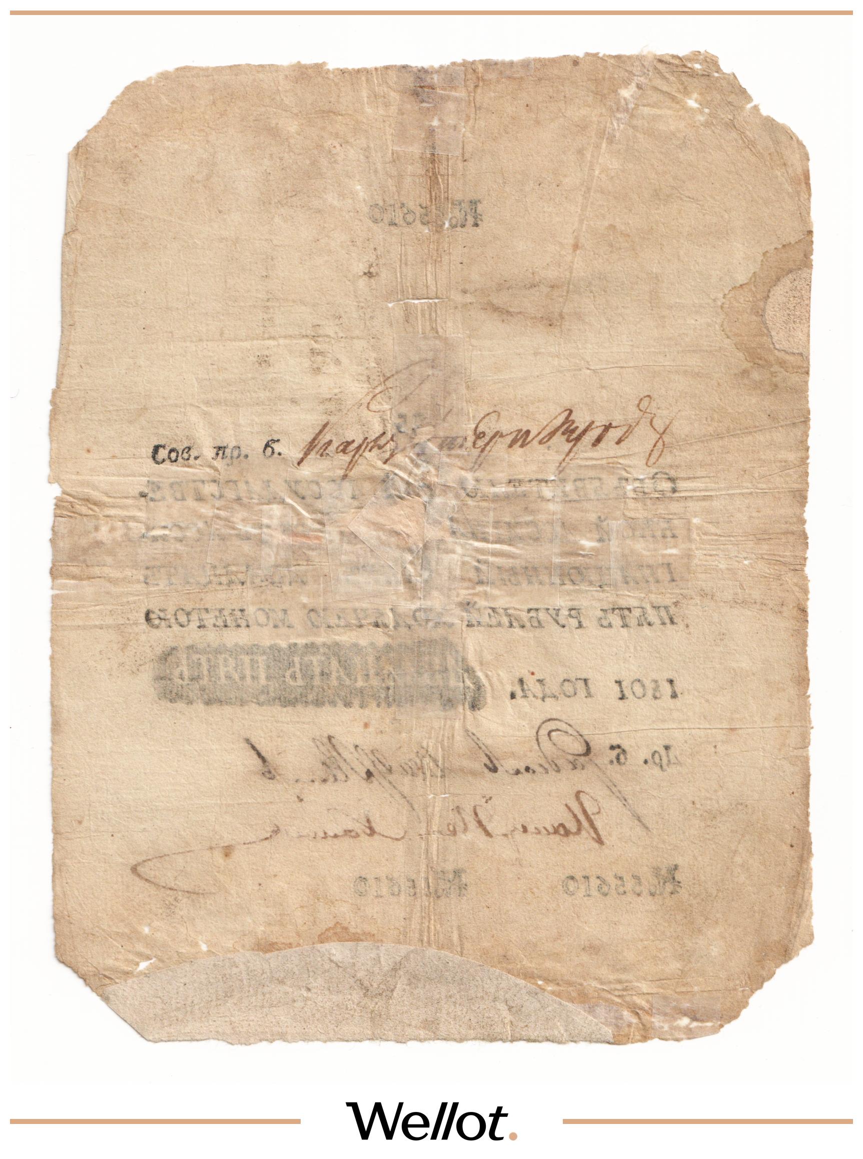 P# A11. Ассигнация. Александр I. Фальшивые банкноты, выпущенные в ущерб российской экономике. Интересная страница истории денежного обращения. Хорошее состояние. Известно всего лишь 13 экземпляров этого года. Редкая датировка!