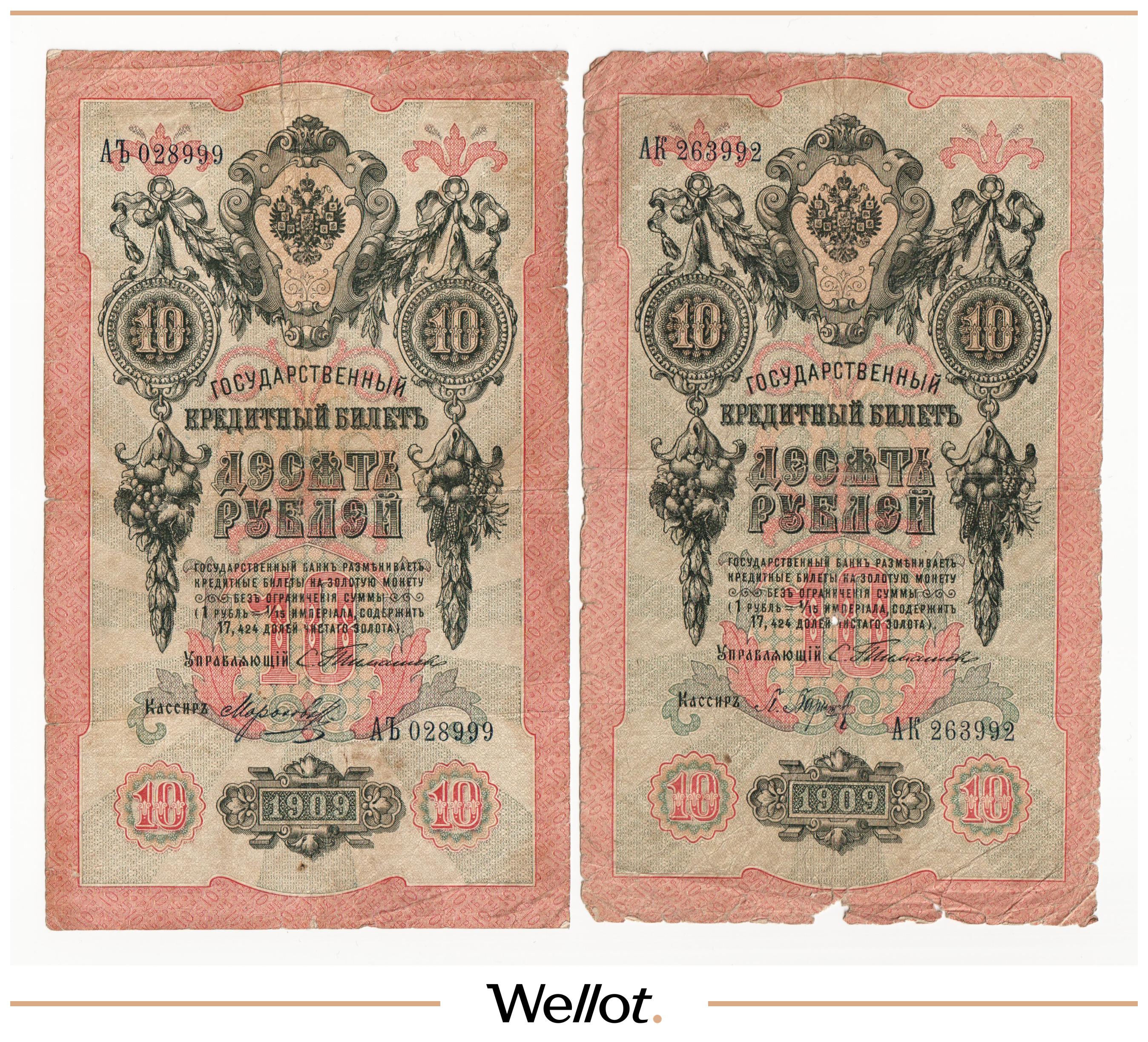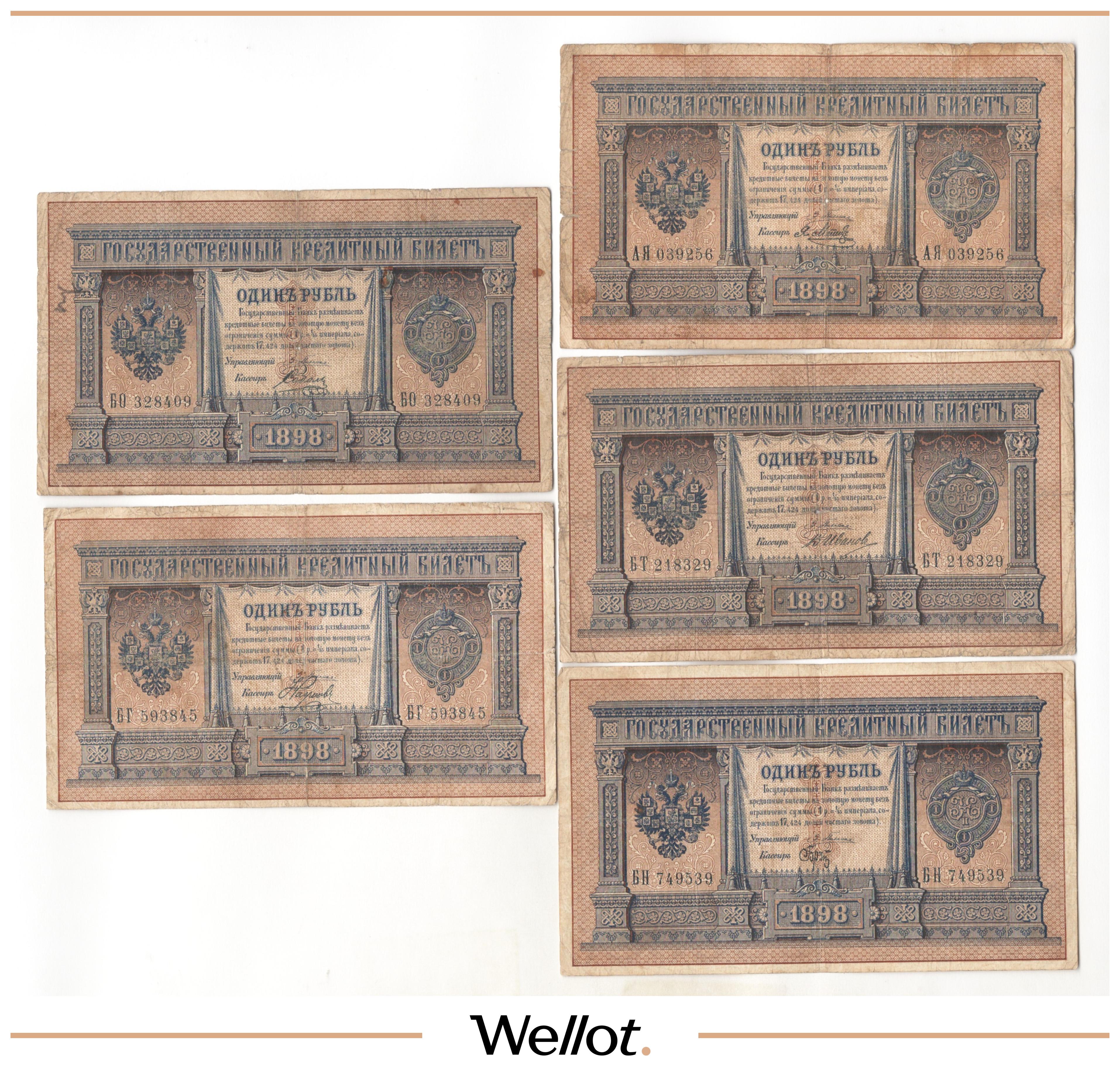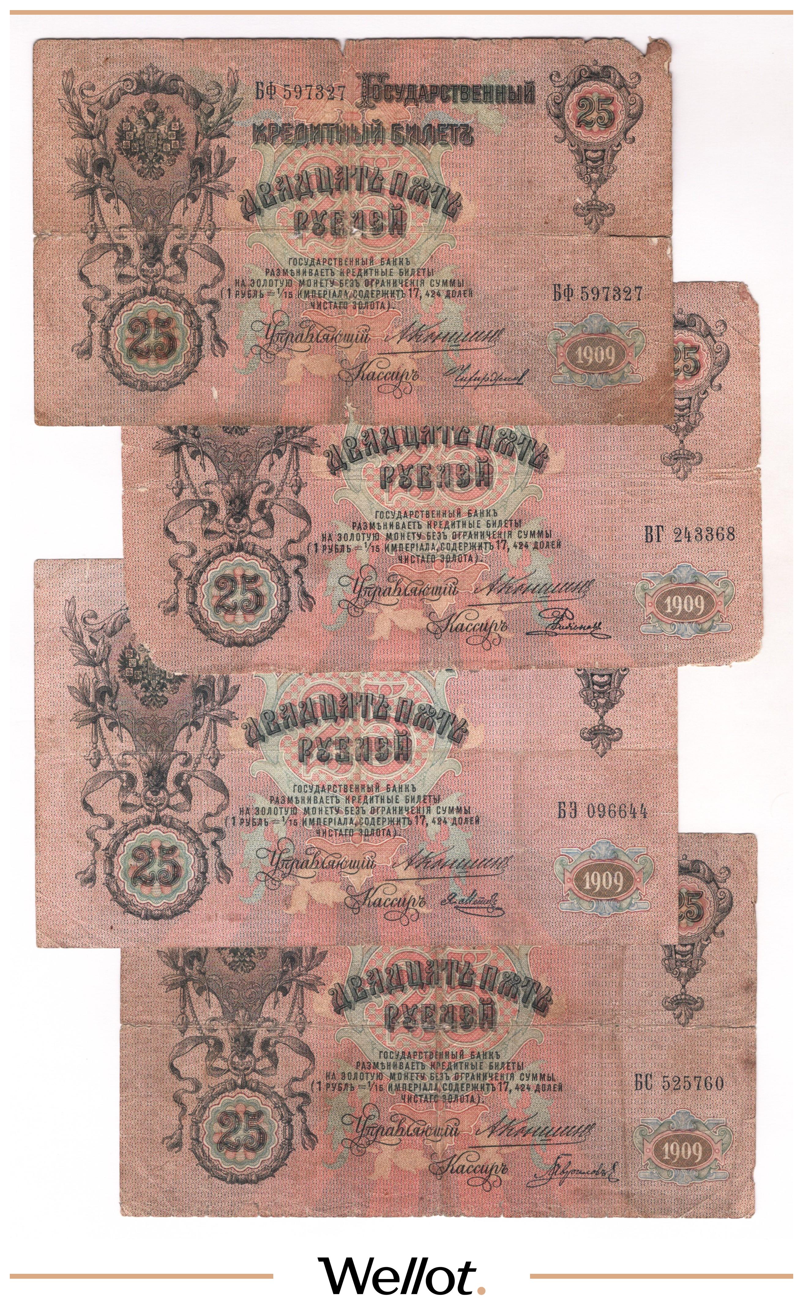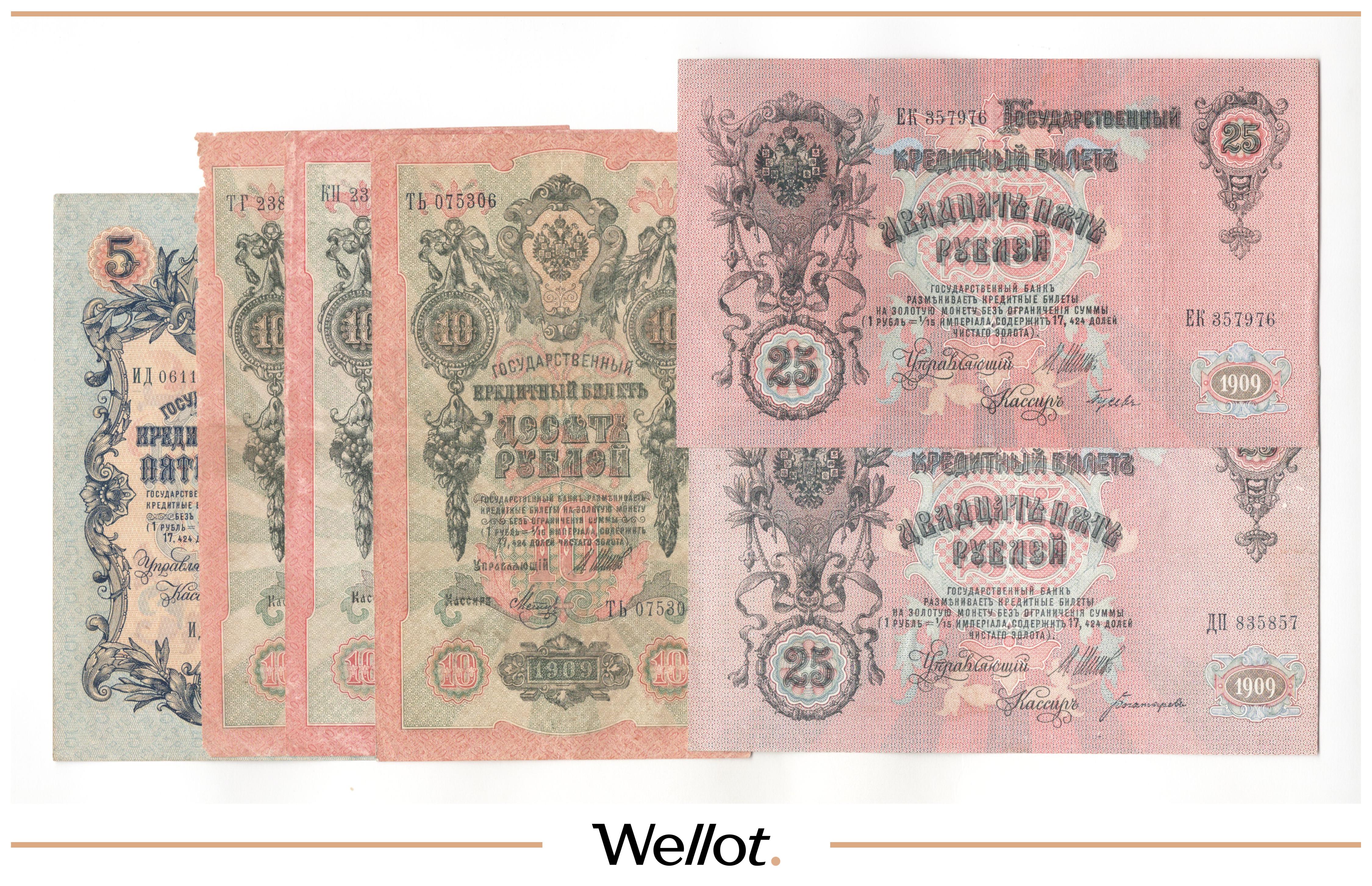 5-10-25 Рублей 1909 Российская Империя 6шт