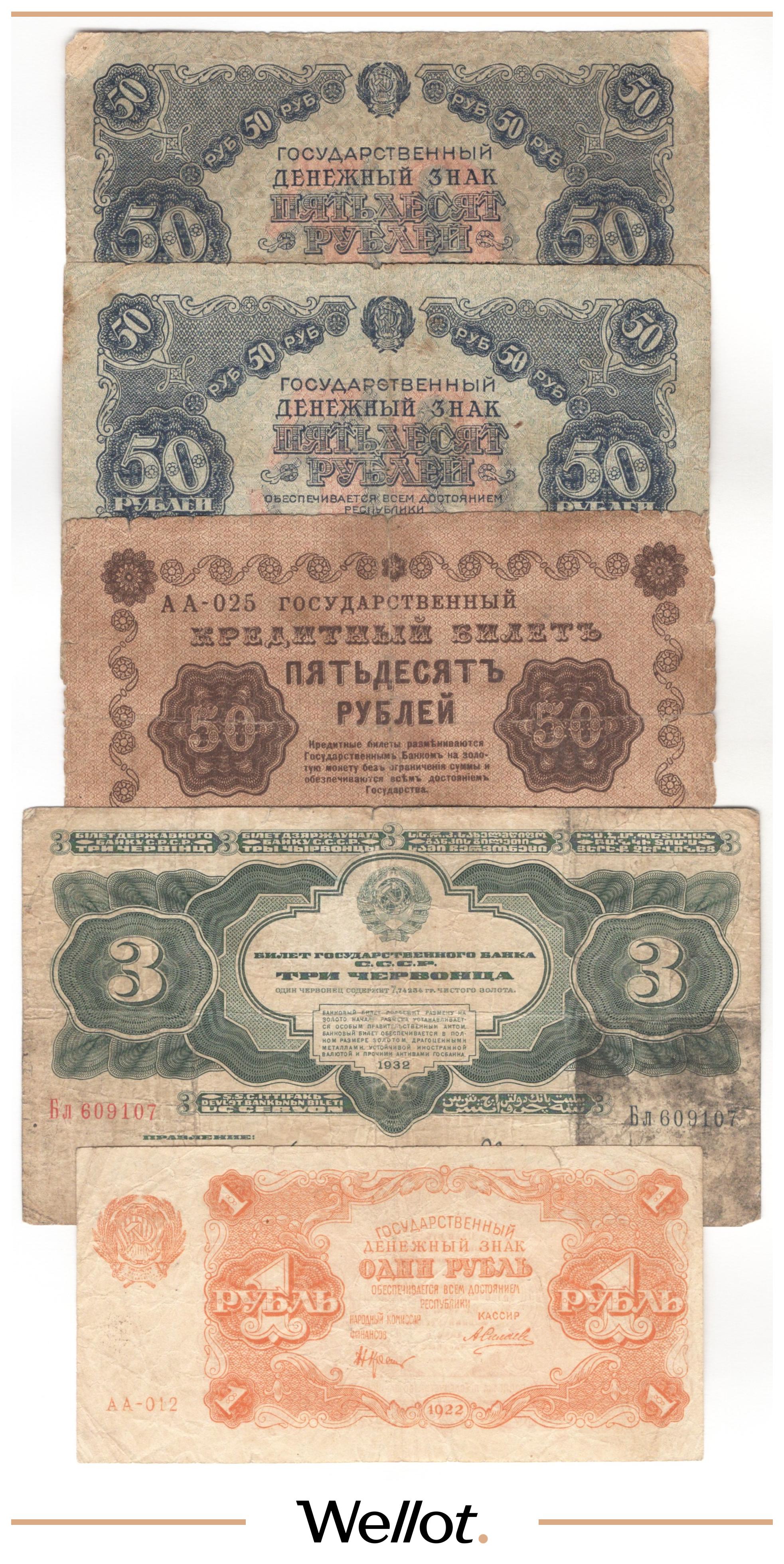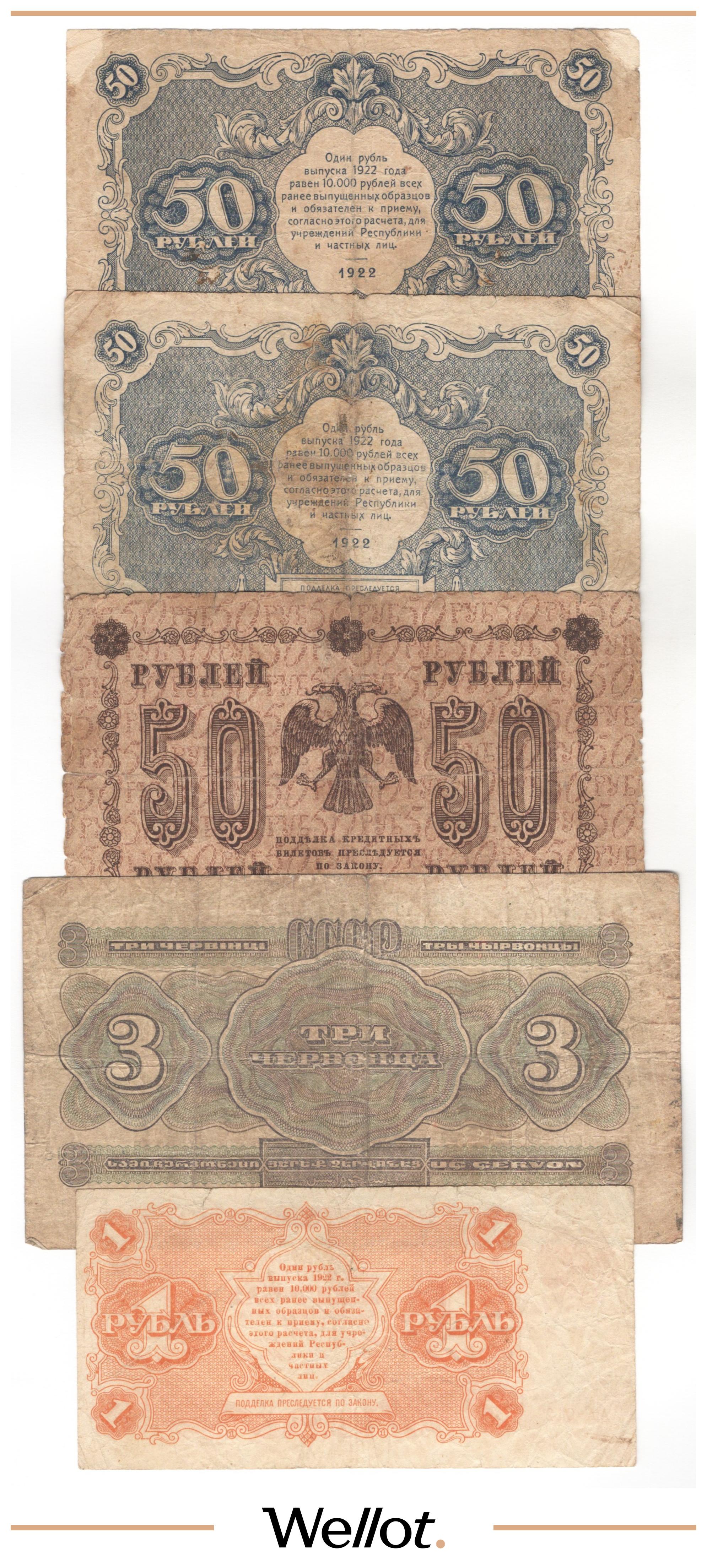 1-3-50 Рублей 1918-1932 Россия 5шт