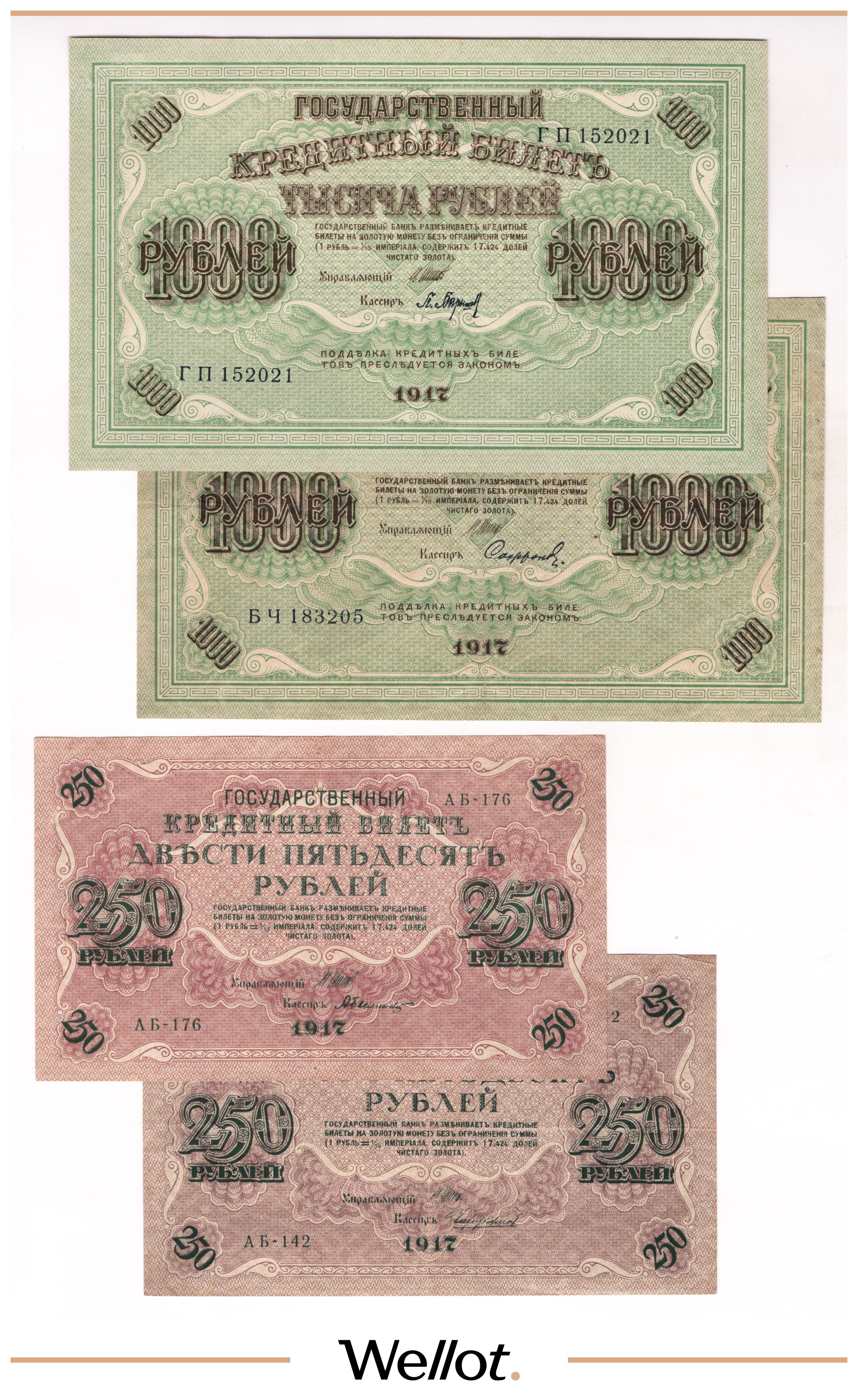 250-1000 Рублей 1917 Россия Временное Правительство 4шт