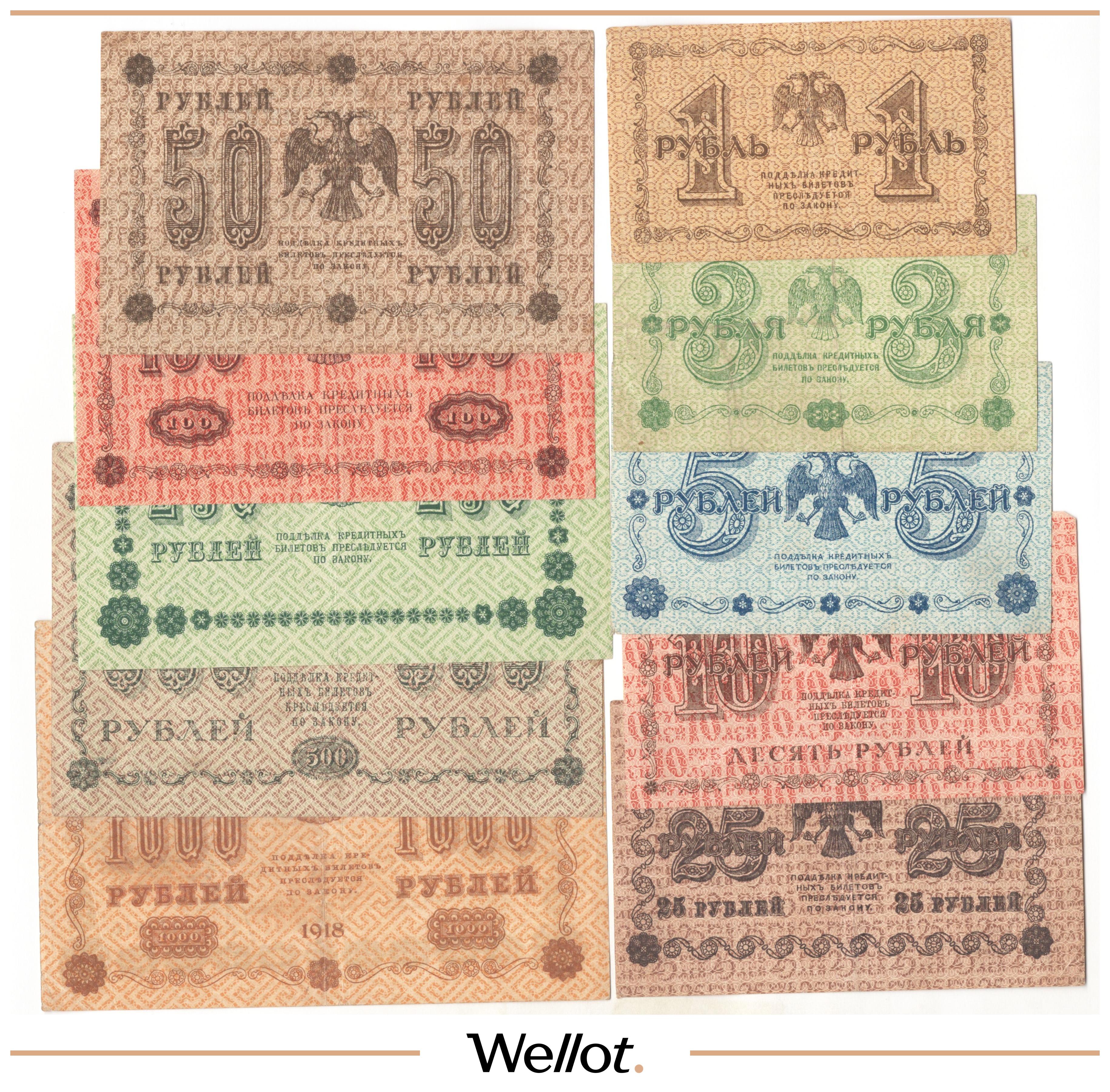 1-3-5-10-25-50-100-250-500-1000 Рублей 1918 Россия РСФСР