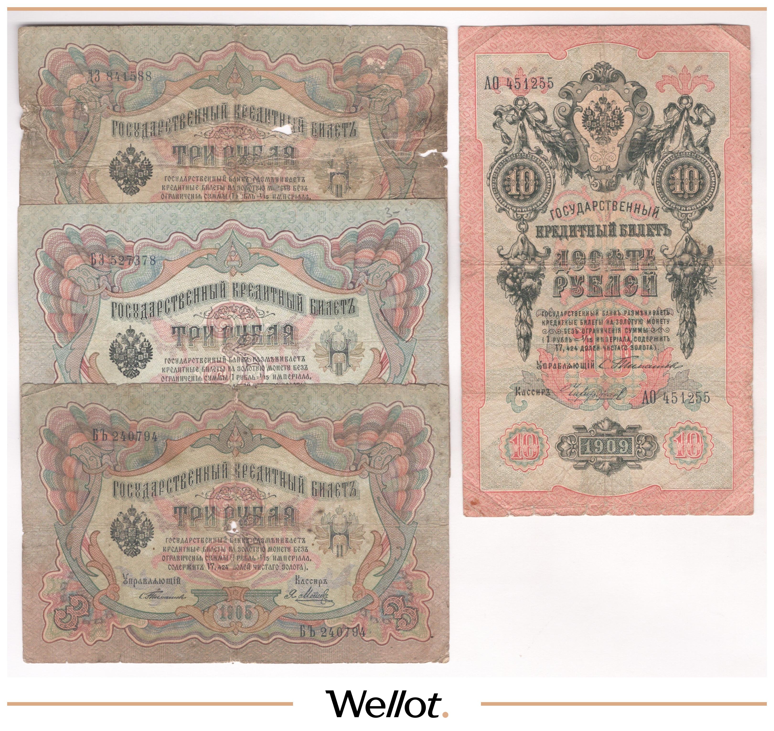3-10 Рублей 1905-1909 Российская Империя 4шт