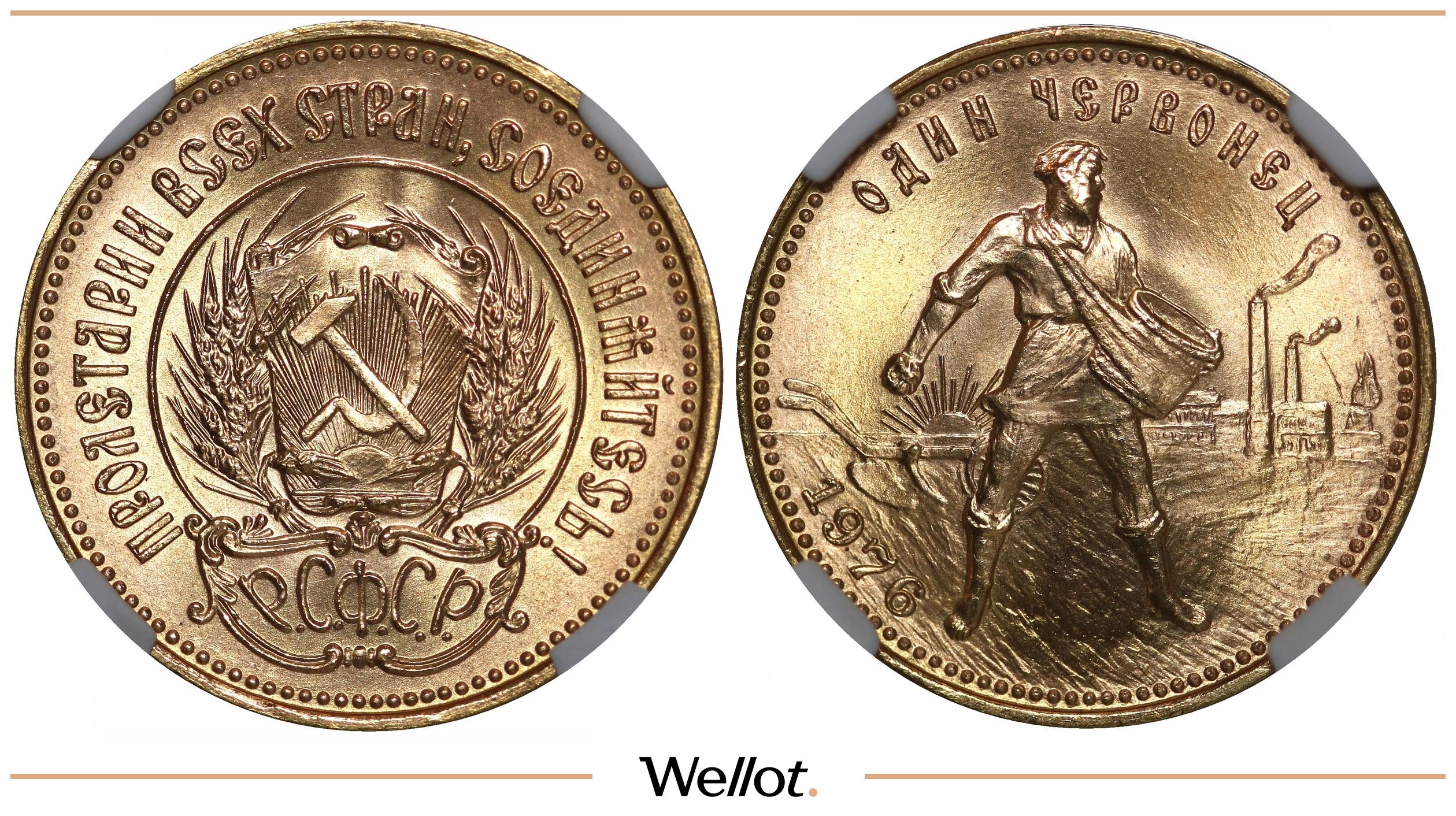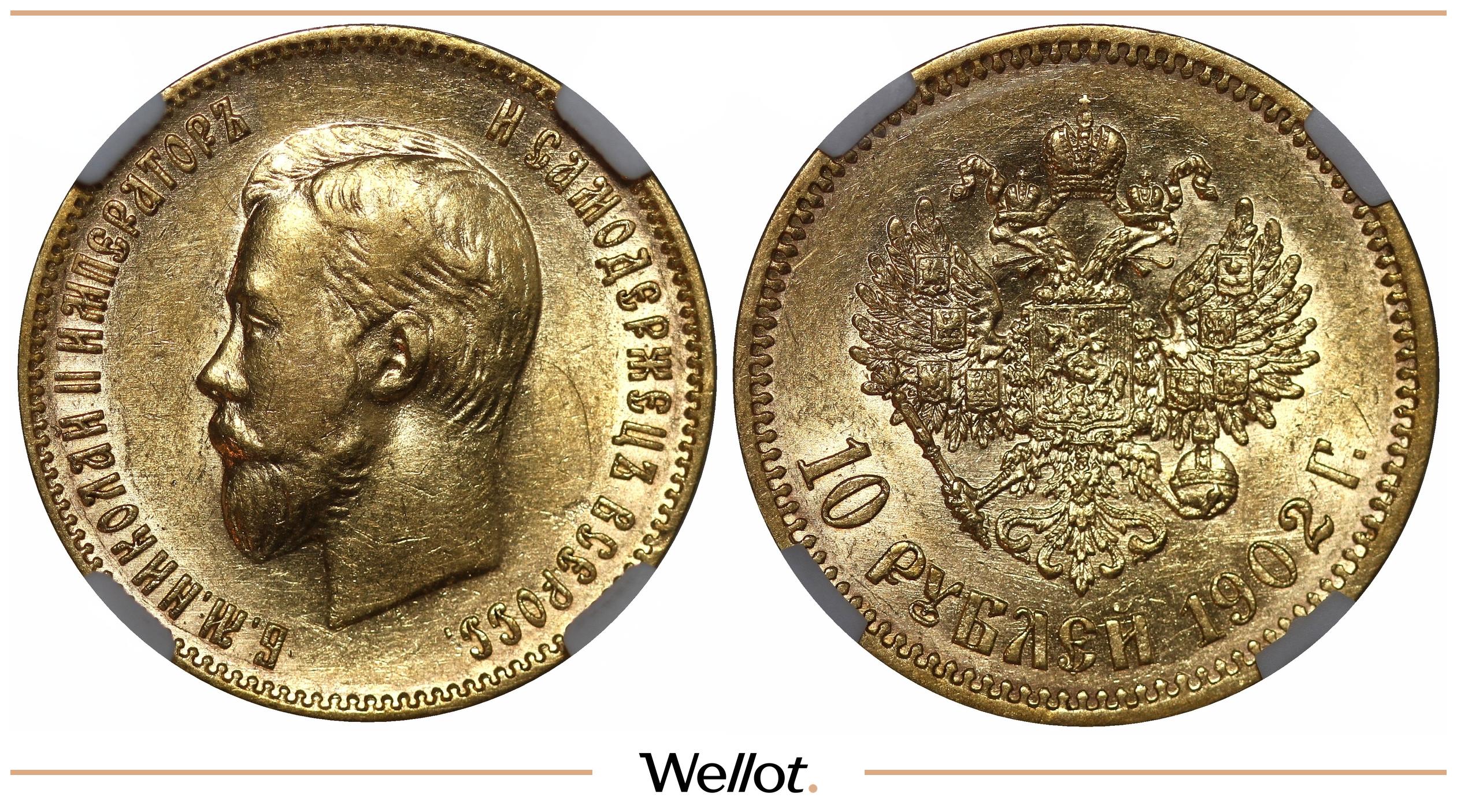Биткин# 10. Золото. 8,6 г. 0,900. В российском слабе НГС MS62.