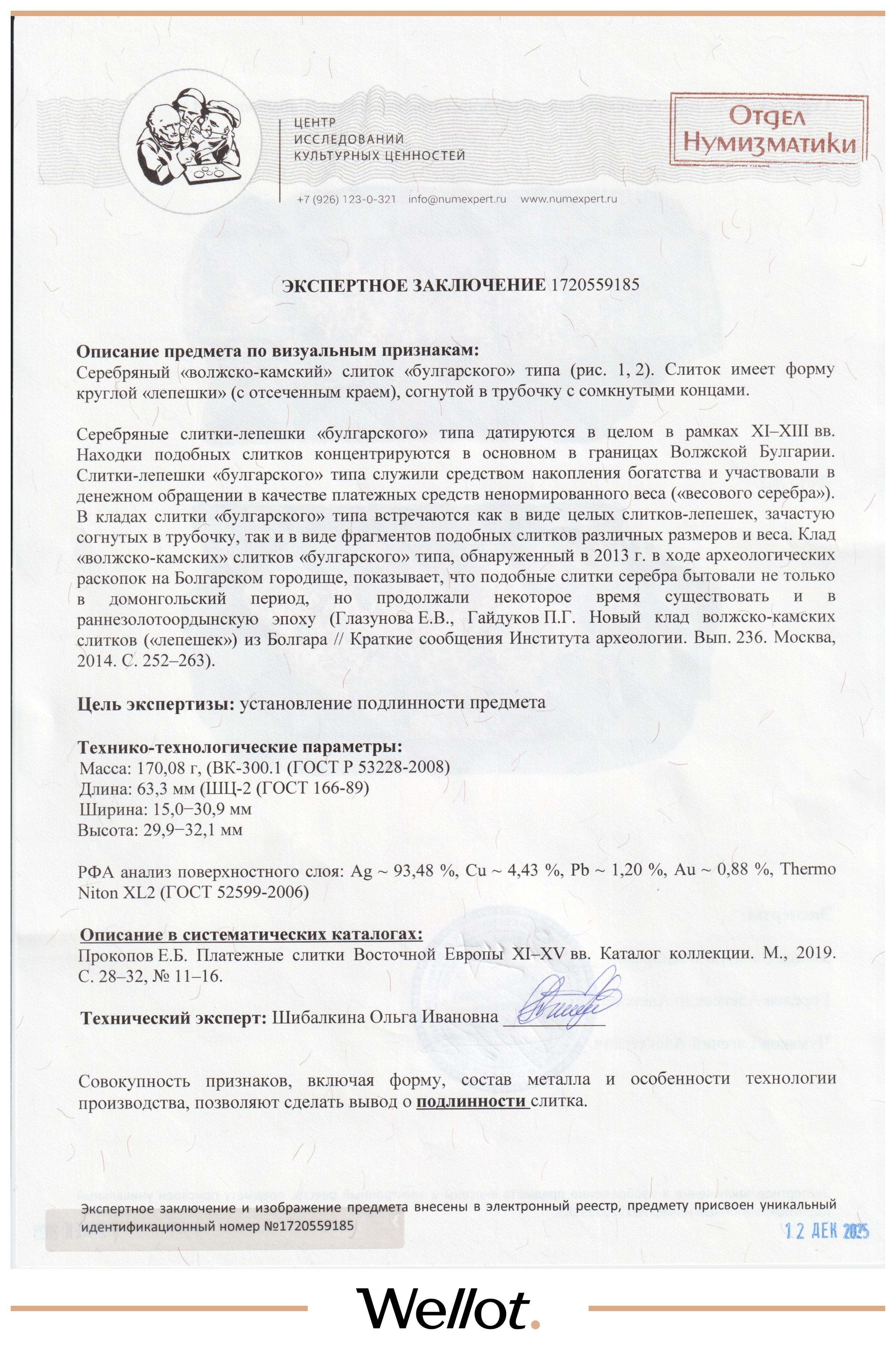 Платежный Слиток Волжско-Камский Булгарского Типа XI-XIII вв
