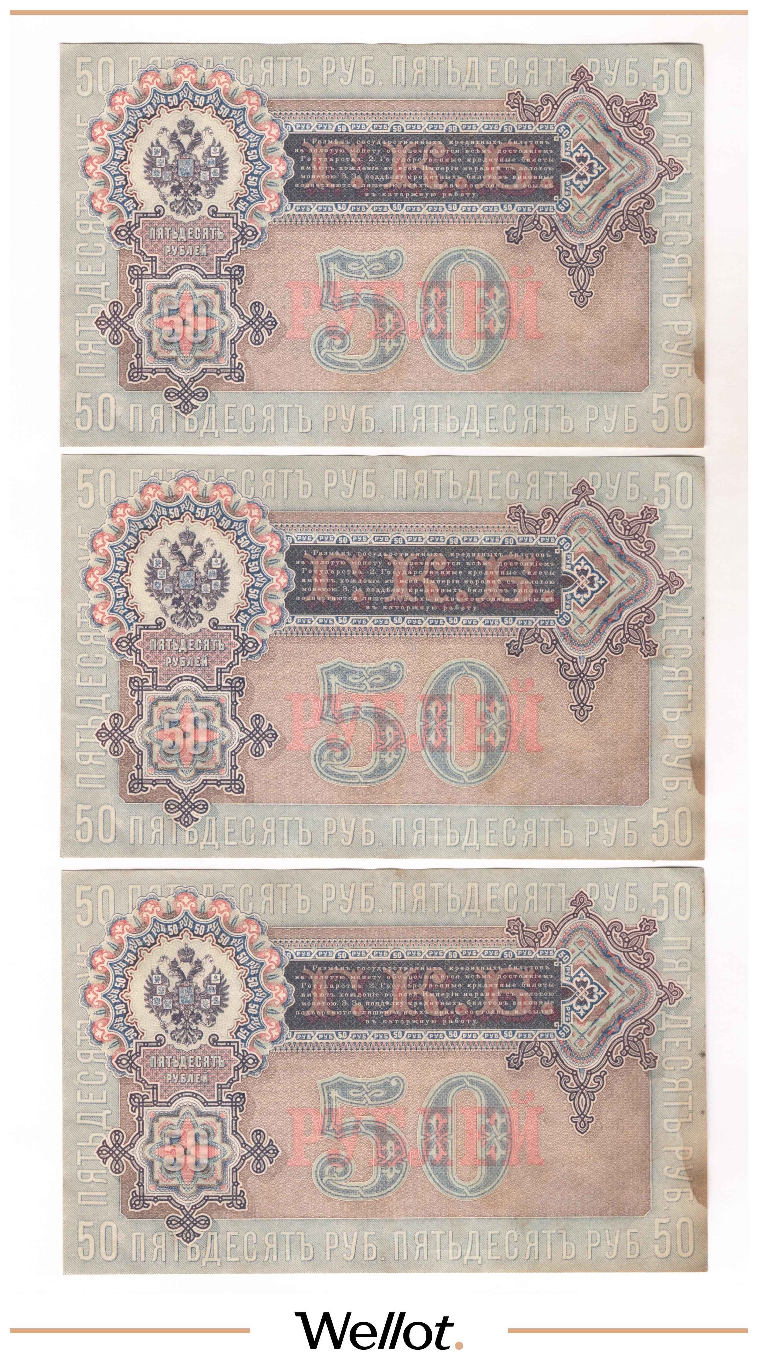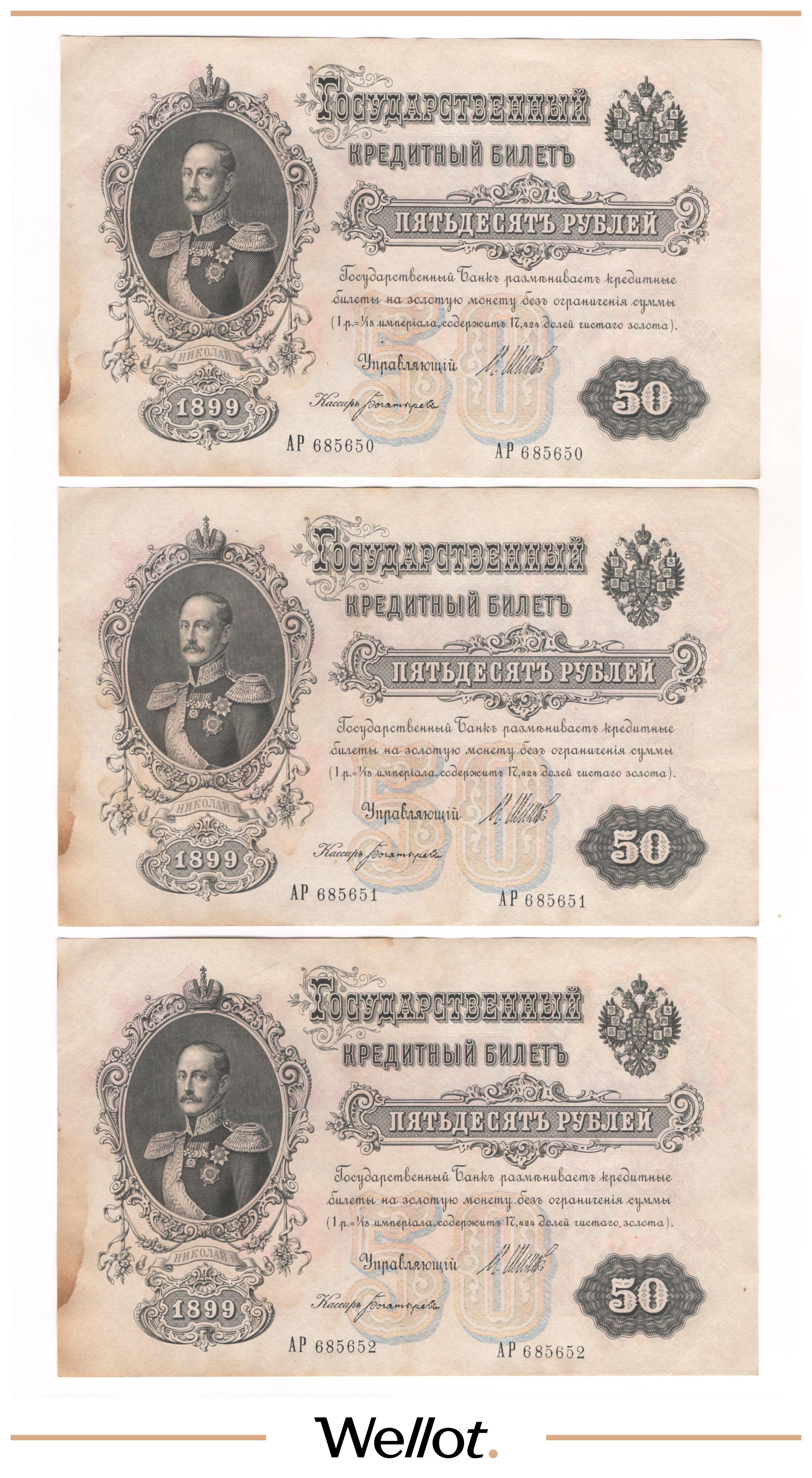 50 Рублей 1899 Российская Империя 3шт UNC-