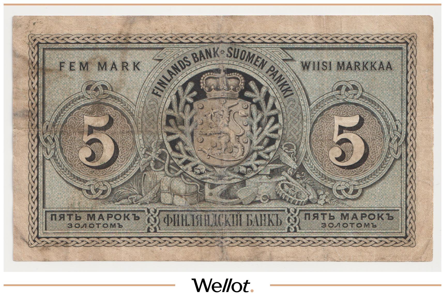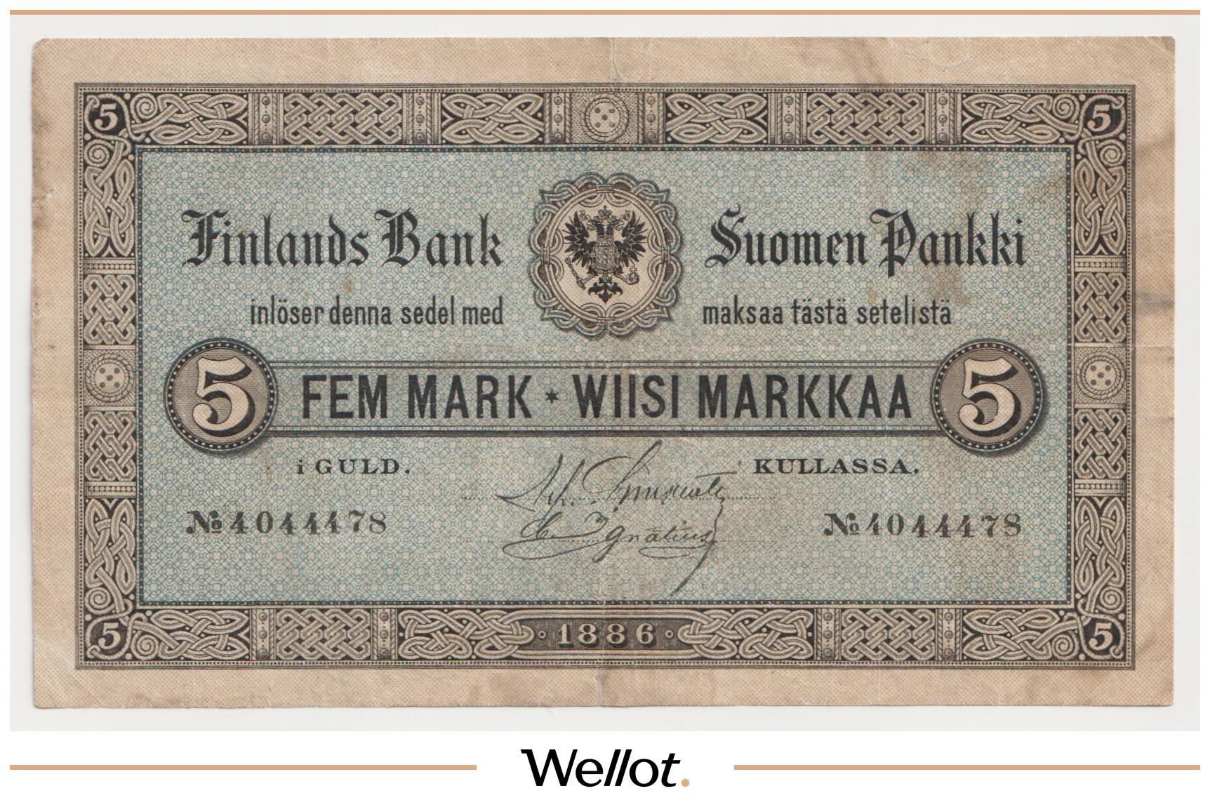 5 Марок Золотом 1886 Российская Империя Финляндия