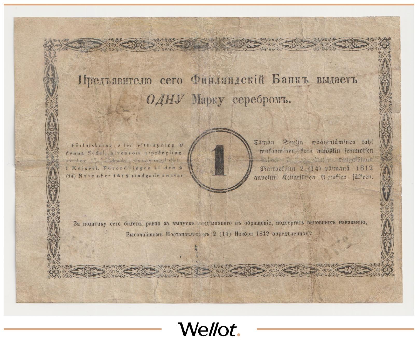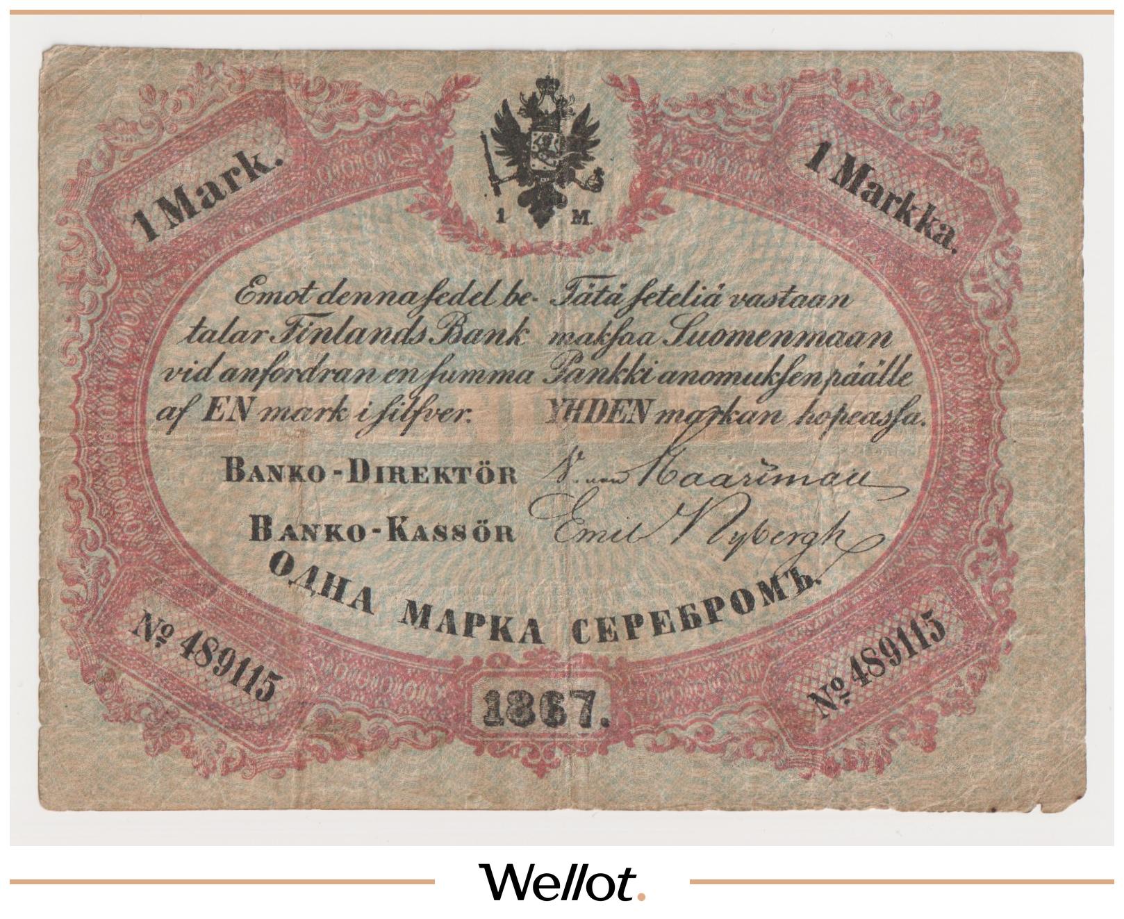 1 Марка Серебром 1867 Российская Империя Финляндия