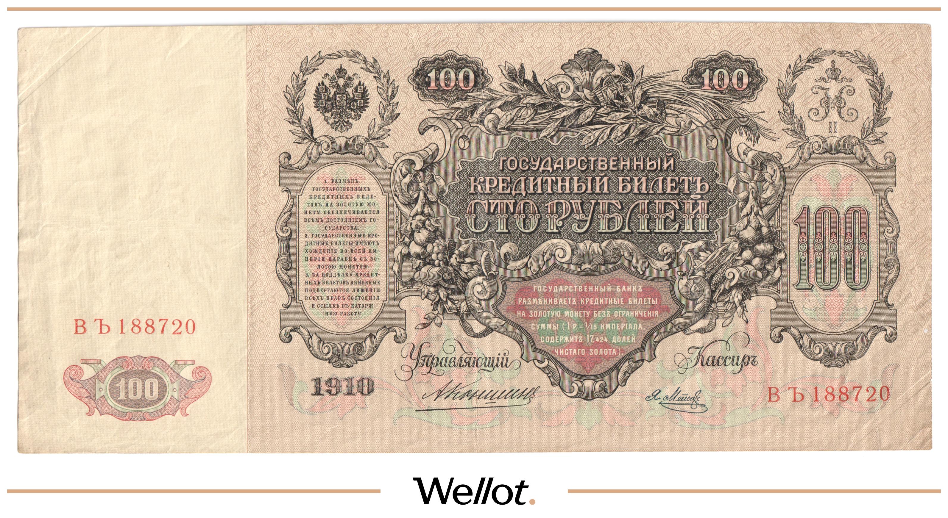 100 Рублей 1910 Российская Империя