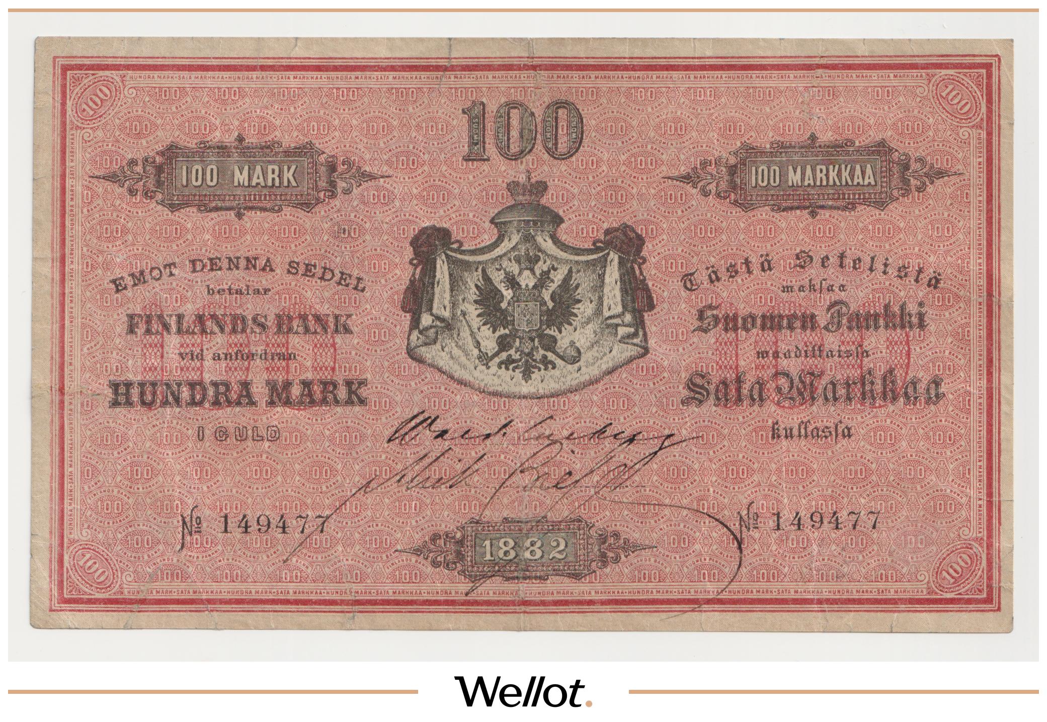 100 Марок Золотом 1882 Российская Империя Финляндия