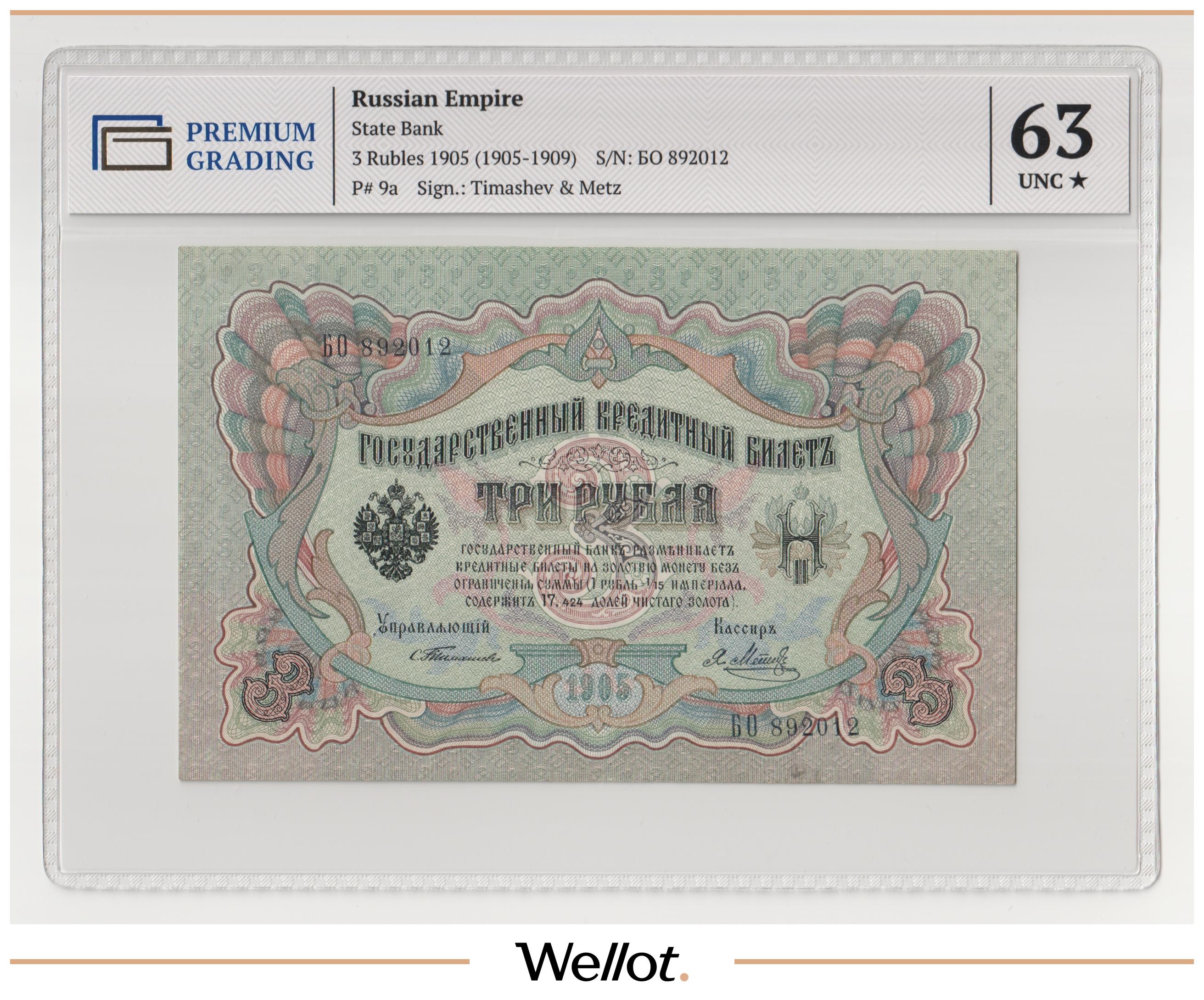 3 Рубля 1905 Российская Империя UNC-