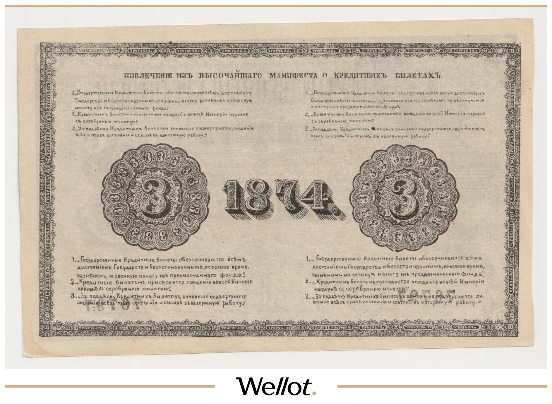 3 Рубль 1874 Российская Империя Фальшивые UNC-