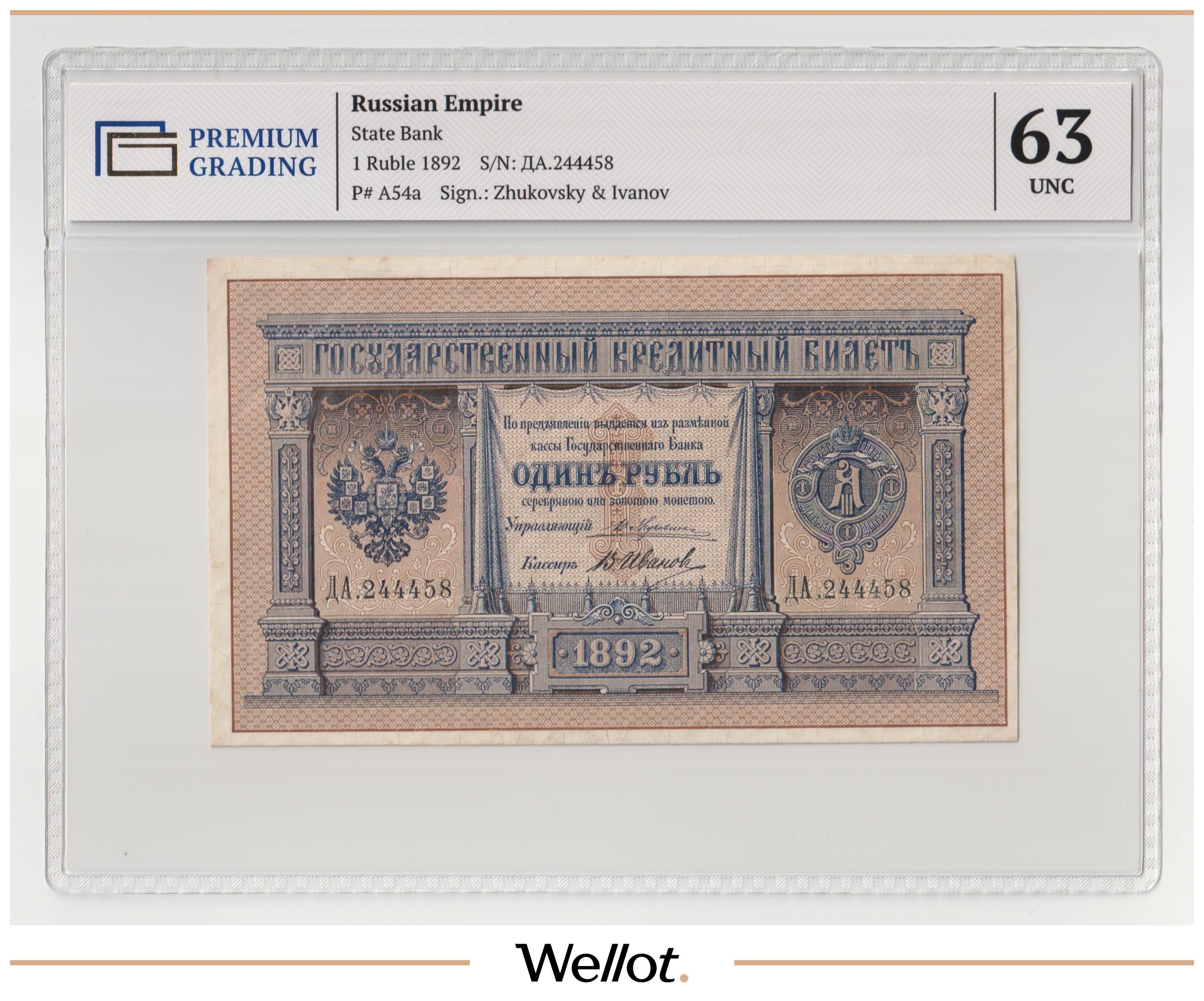 1 Рубль 1892 Российская Империя PG 63 UNC