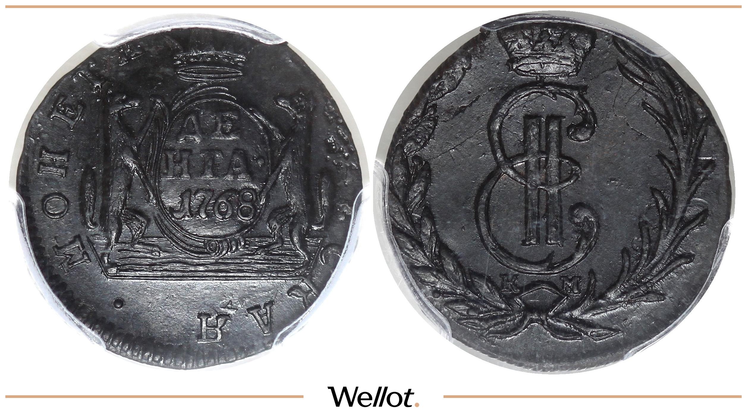 Денга 1768 КМ Екатерина II PCGS MS62BN