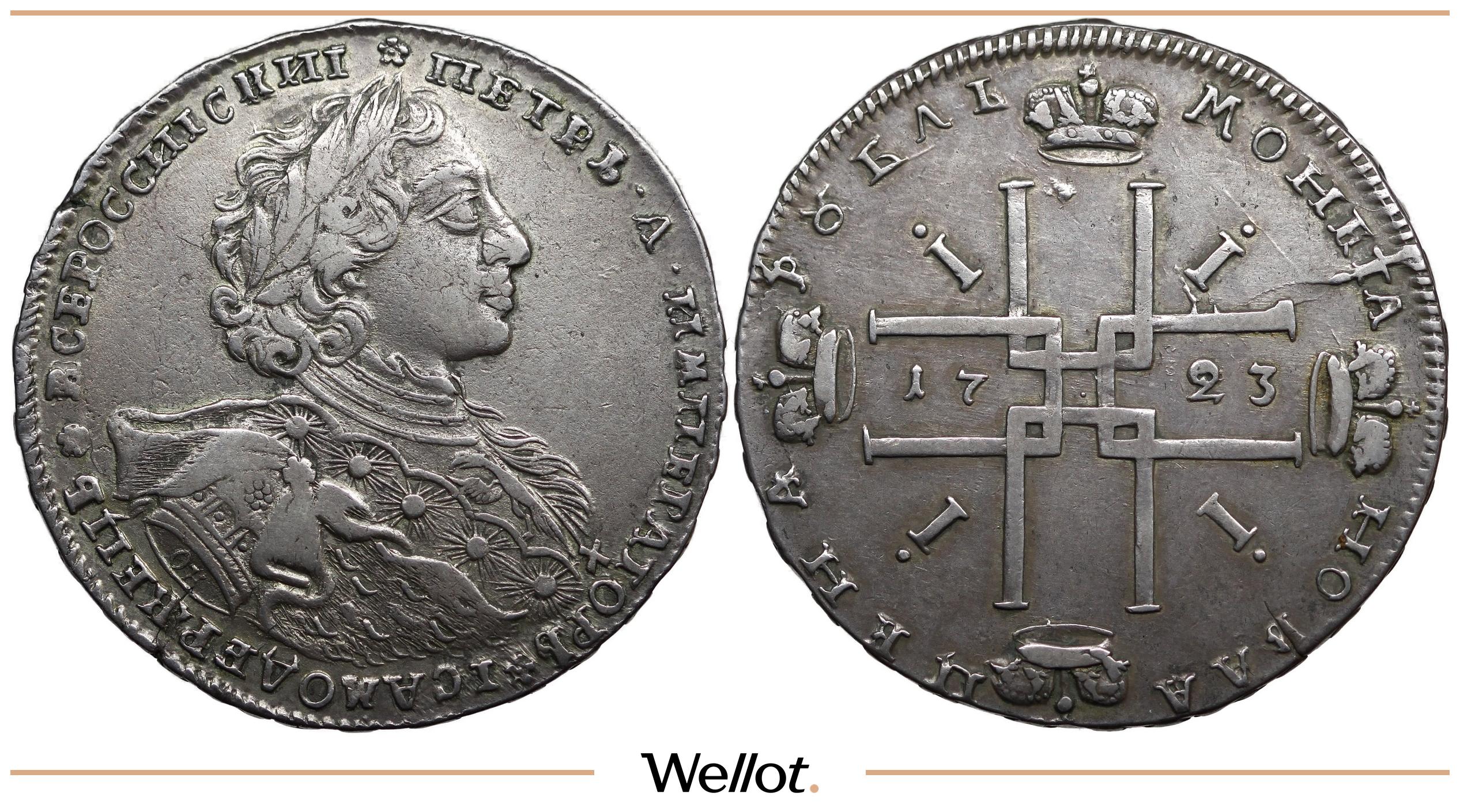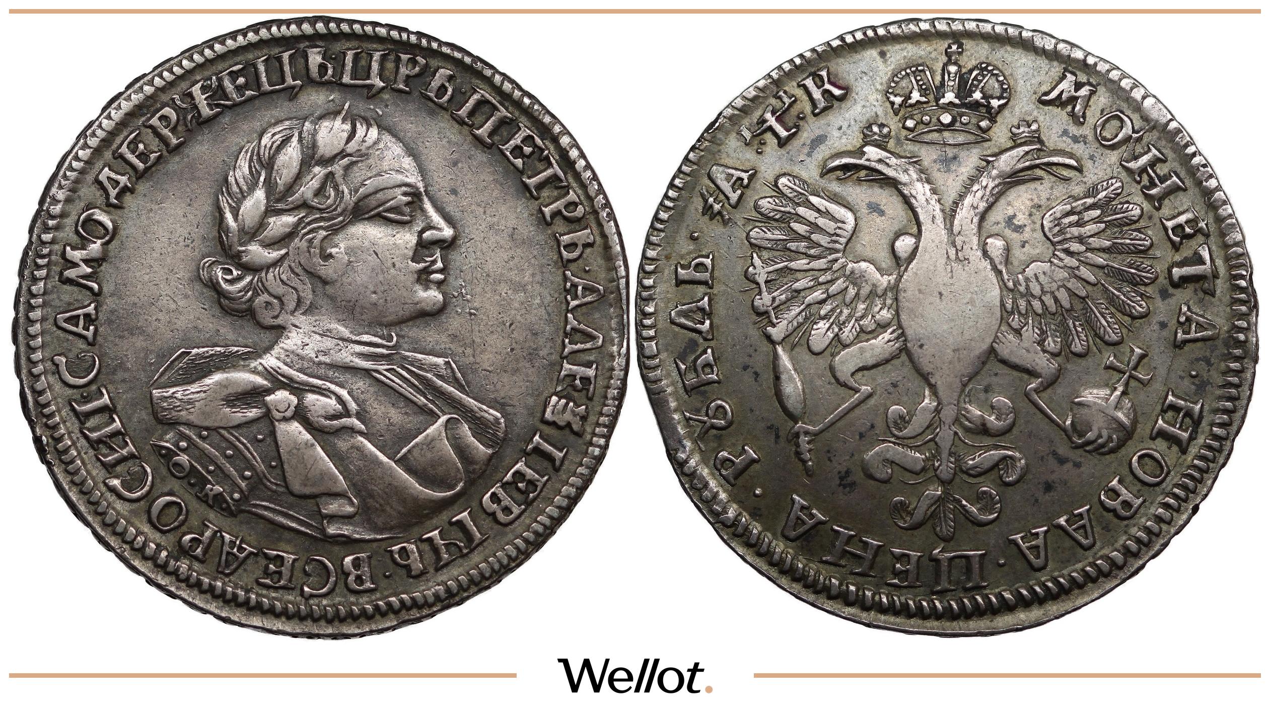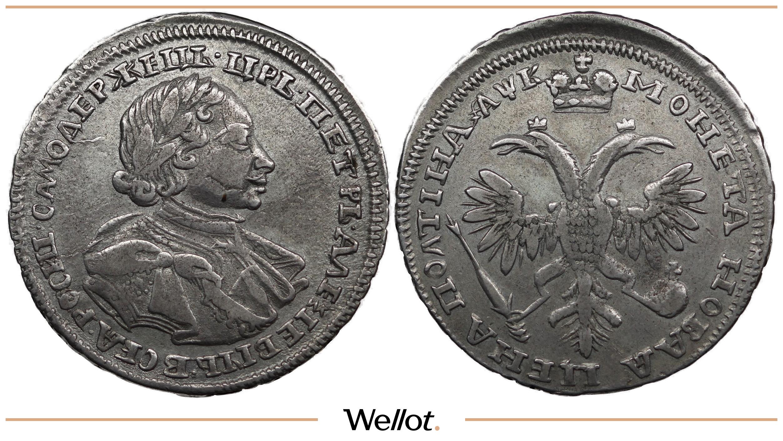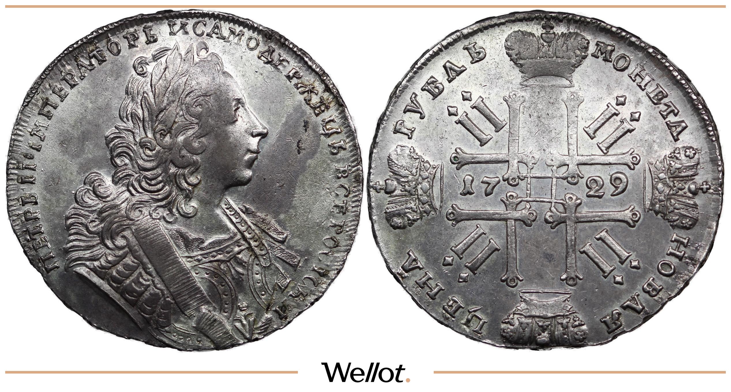 Биткин# 282 (R1). Портрет работы Ж. Дасье. Серебро. 25,44 г. Ильин 15 рублей. Очень редкая типажная монета в добротном коллекционном состоянии.