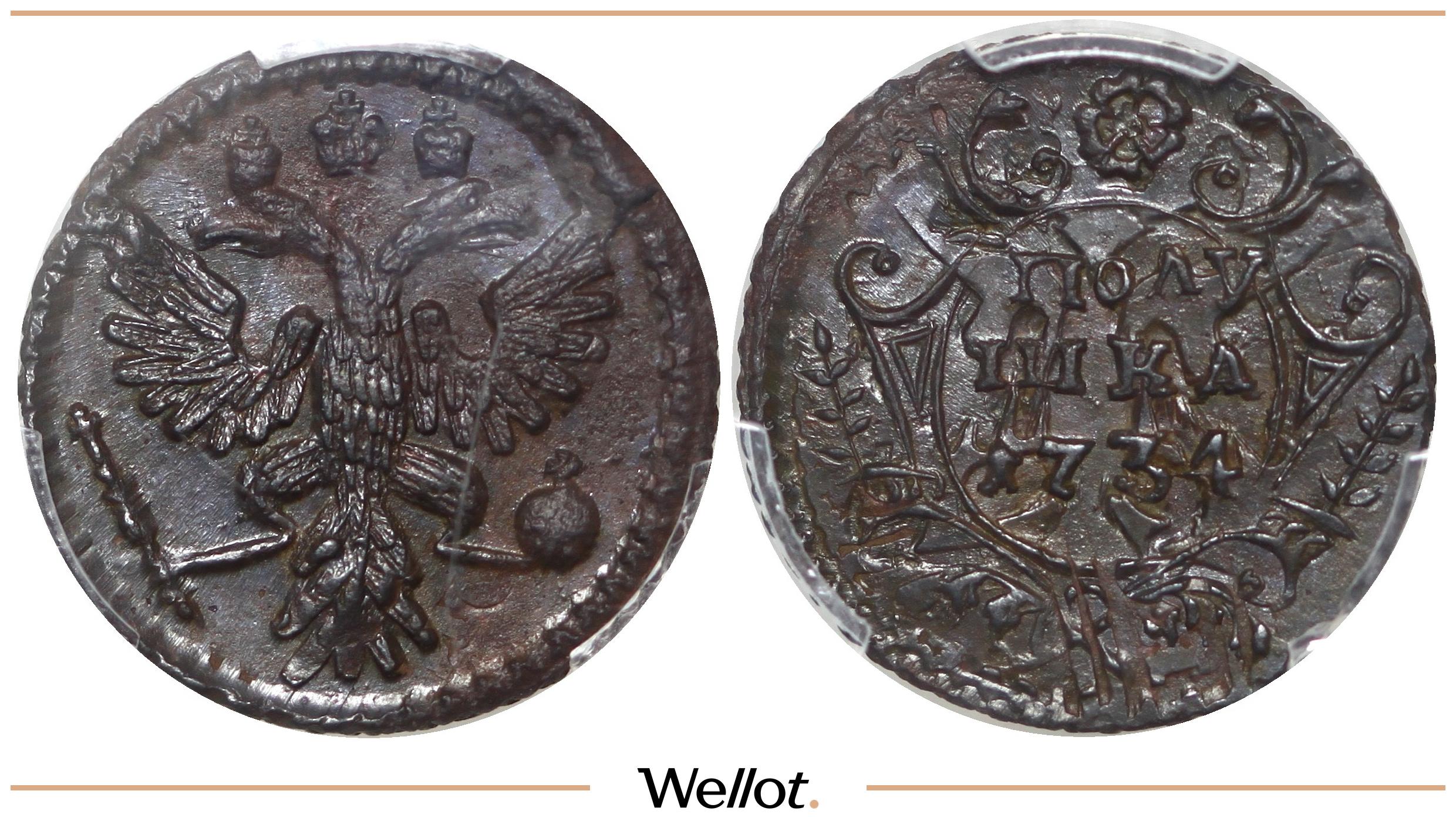 Полушка 1734 Анна Иоанновна PCGS UNC Detail