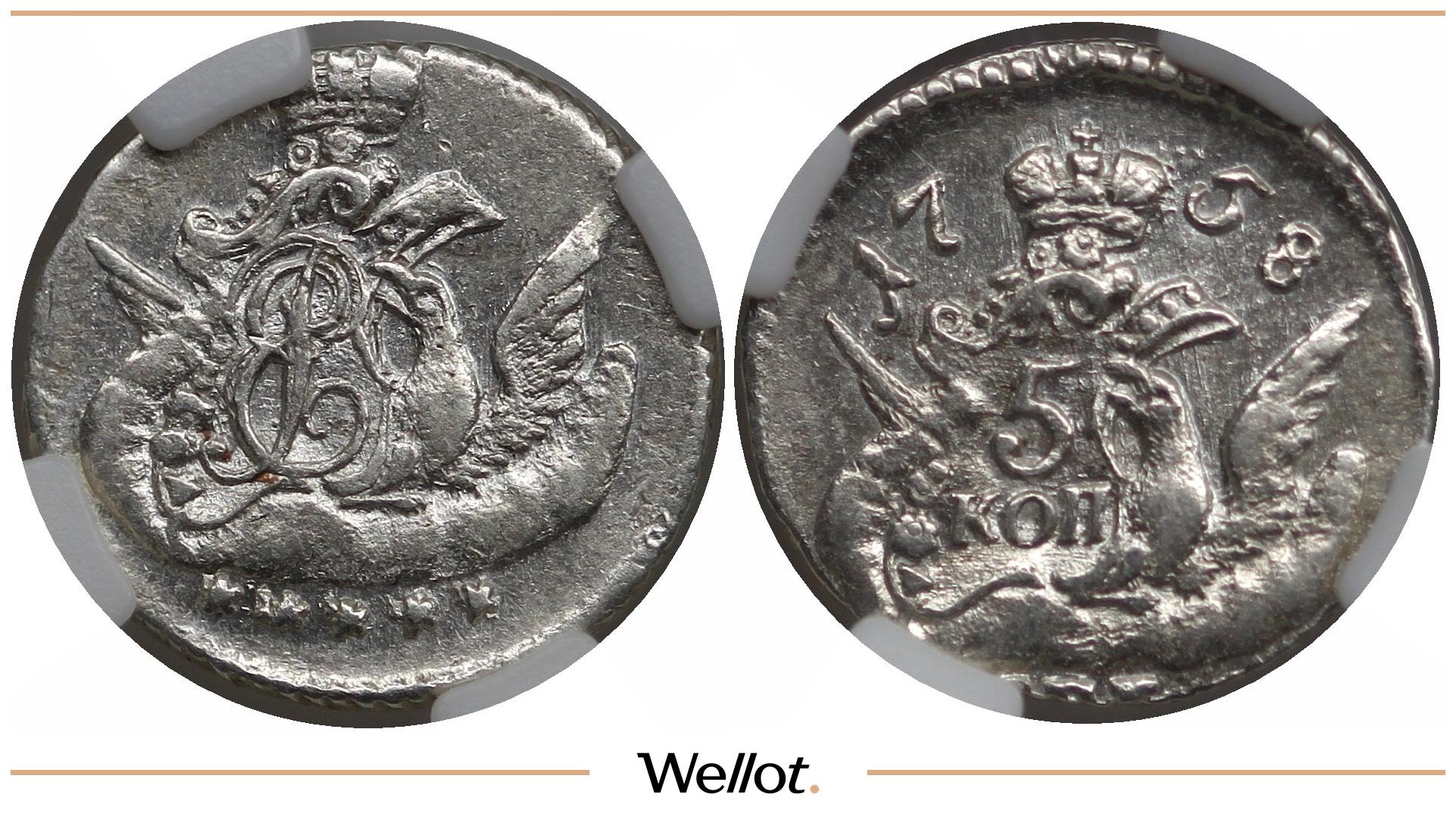 5 Копеек 1758 СПБ Елизавета NRG MS60