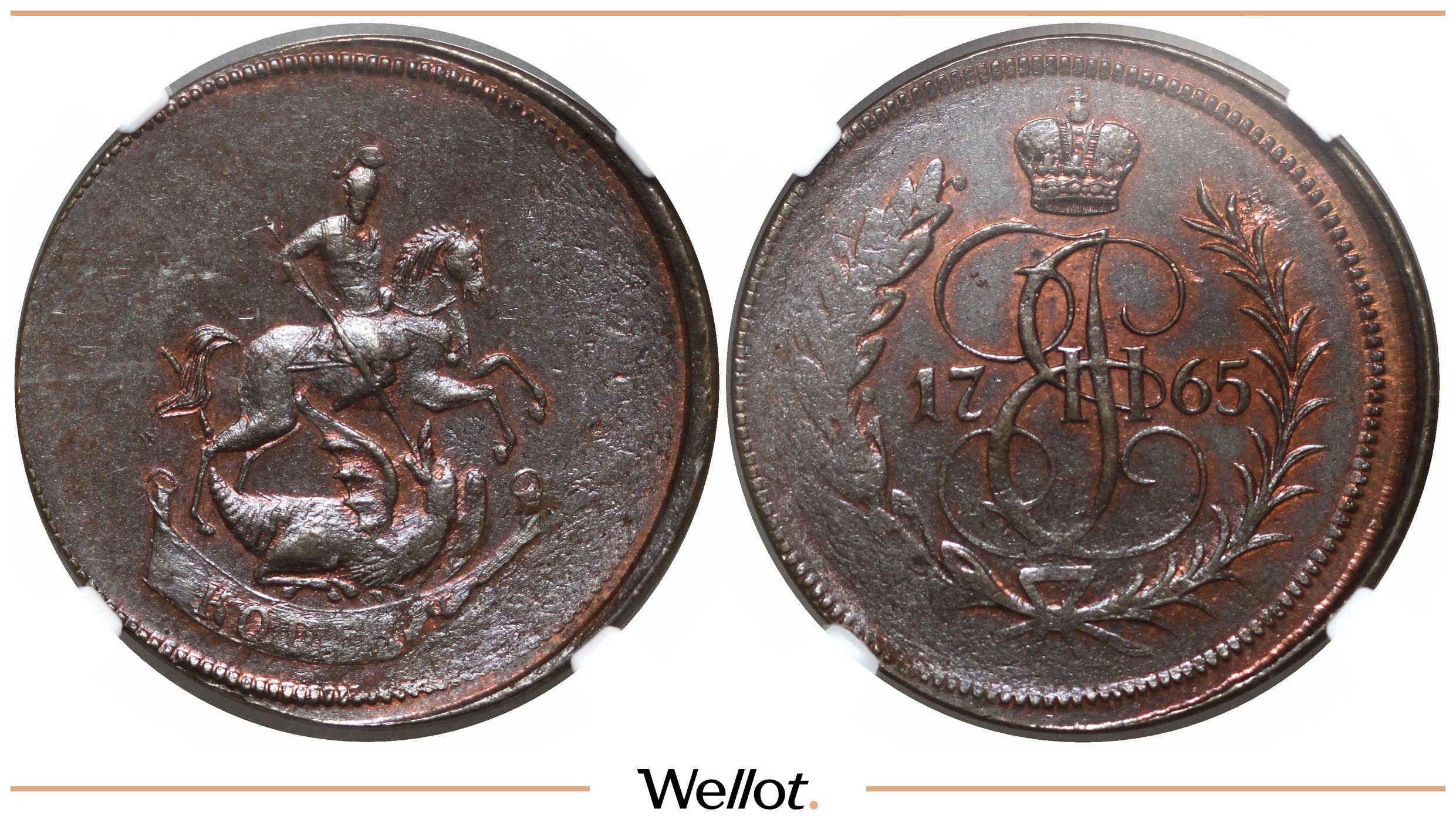 1 Копейка 1765 Екатерина II Новодел NGC MS62BN
