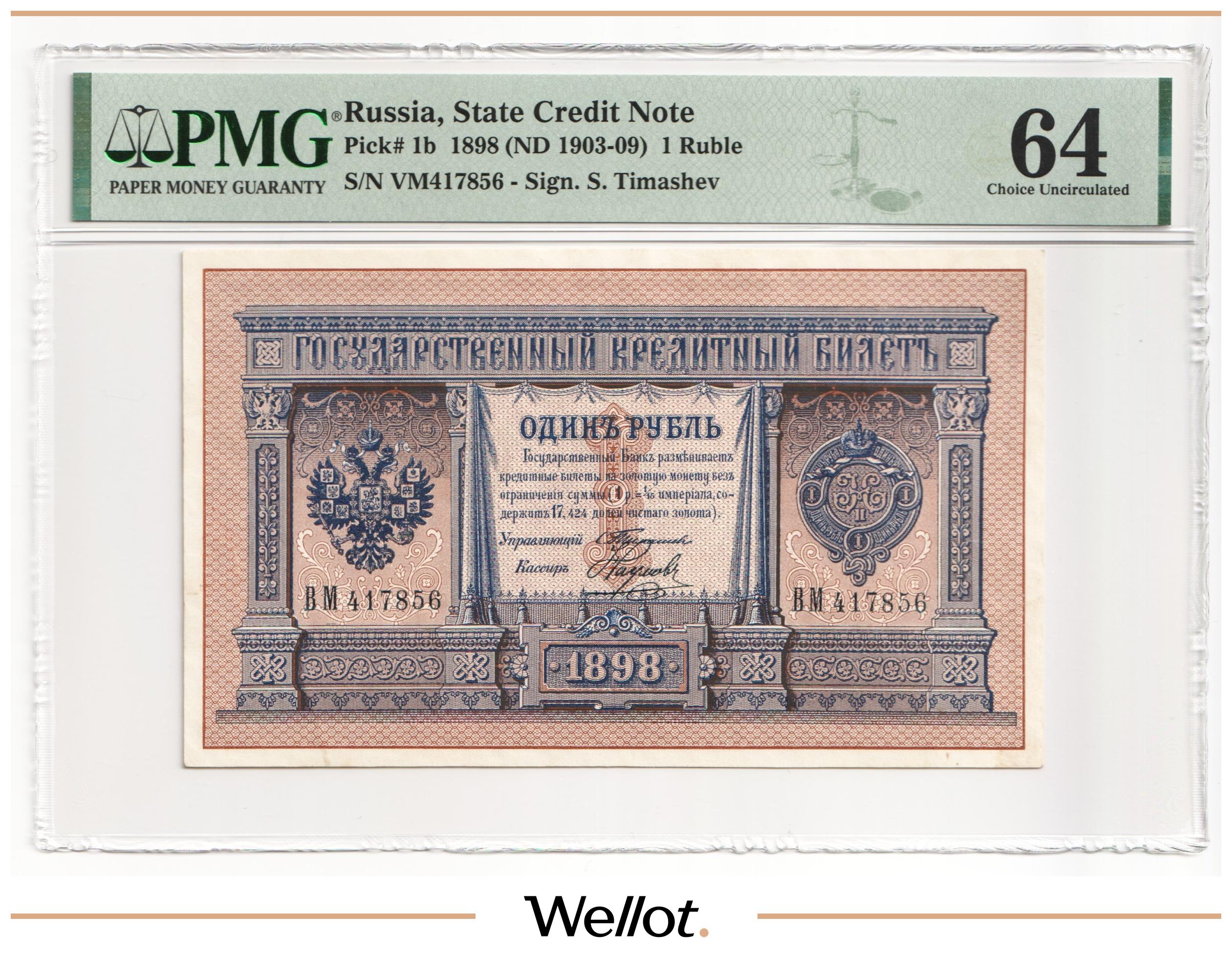 1 Рубль 1898 Российская Империя PMG 64 EPQ UNC