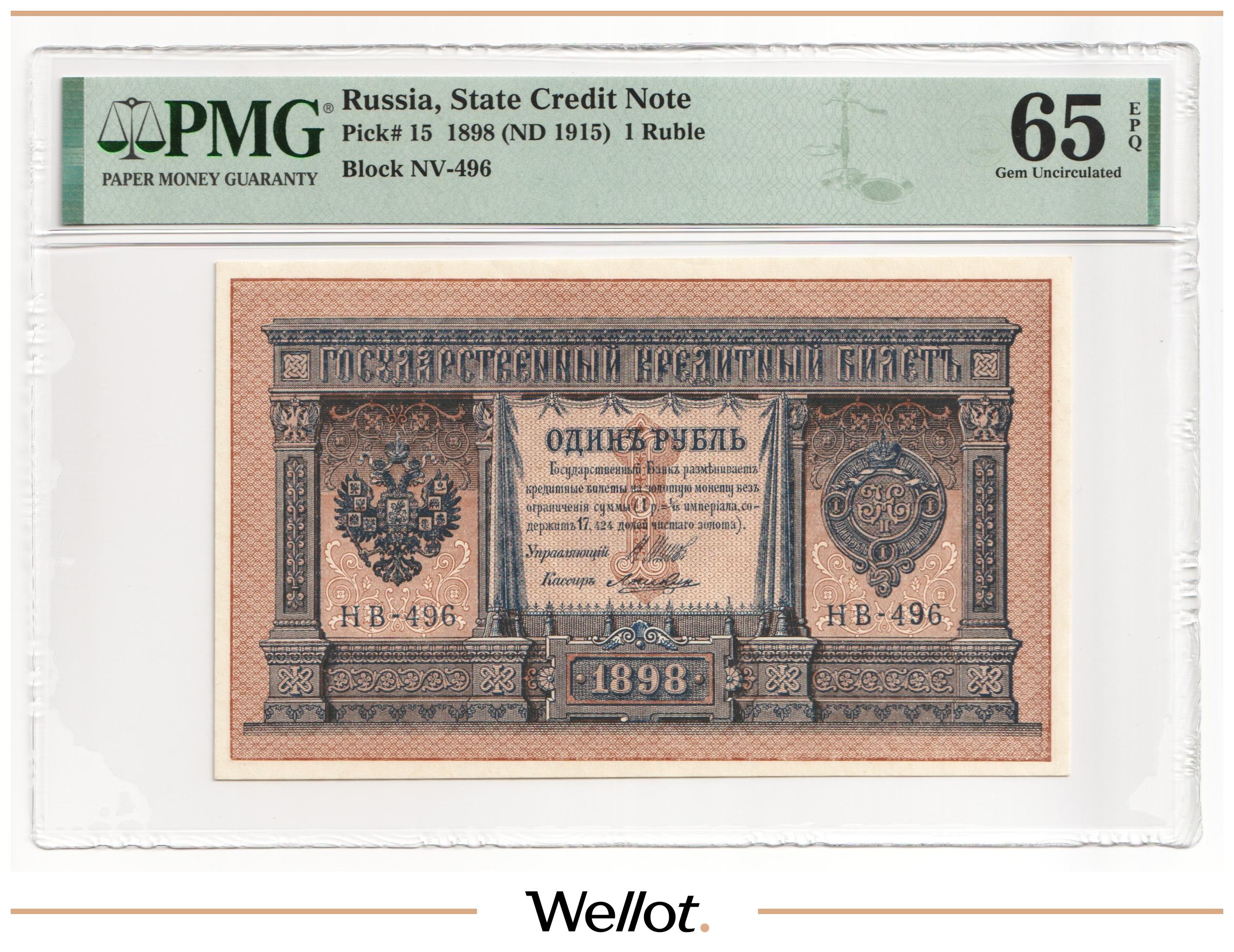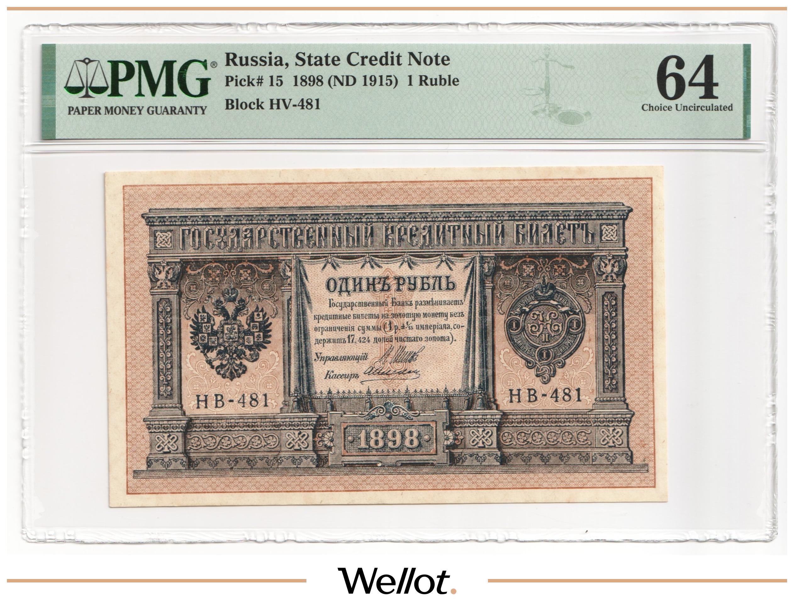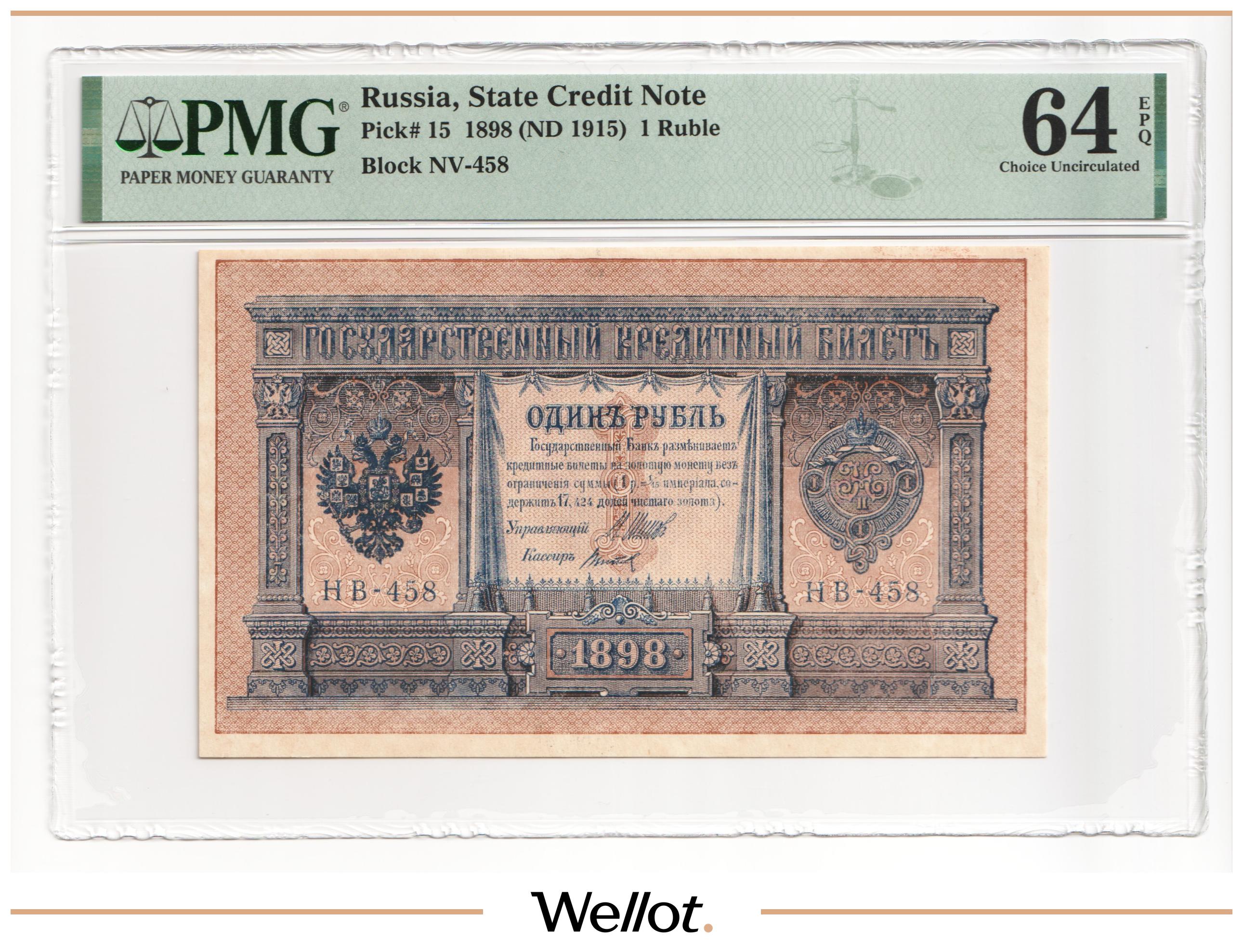 1 Рубль 1898 (1915) Российская Империя PMG 64 EPQ UNC