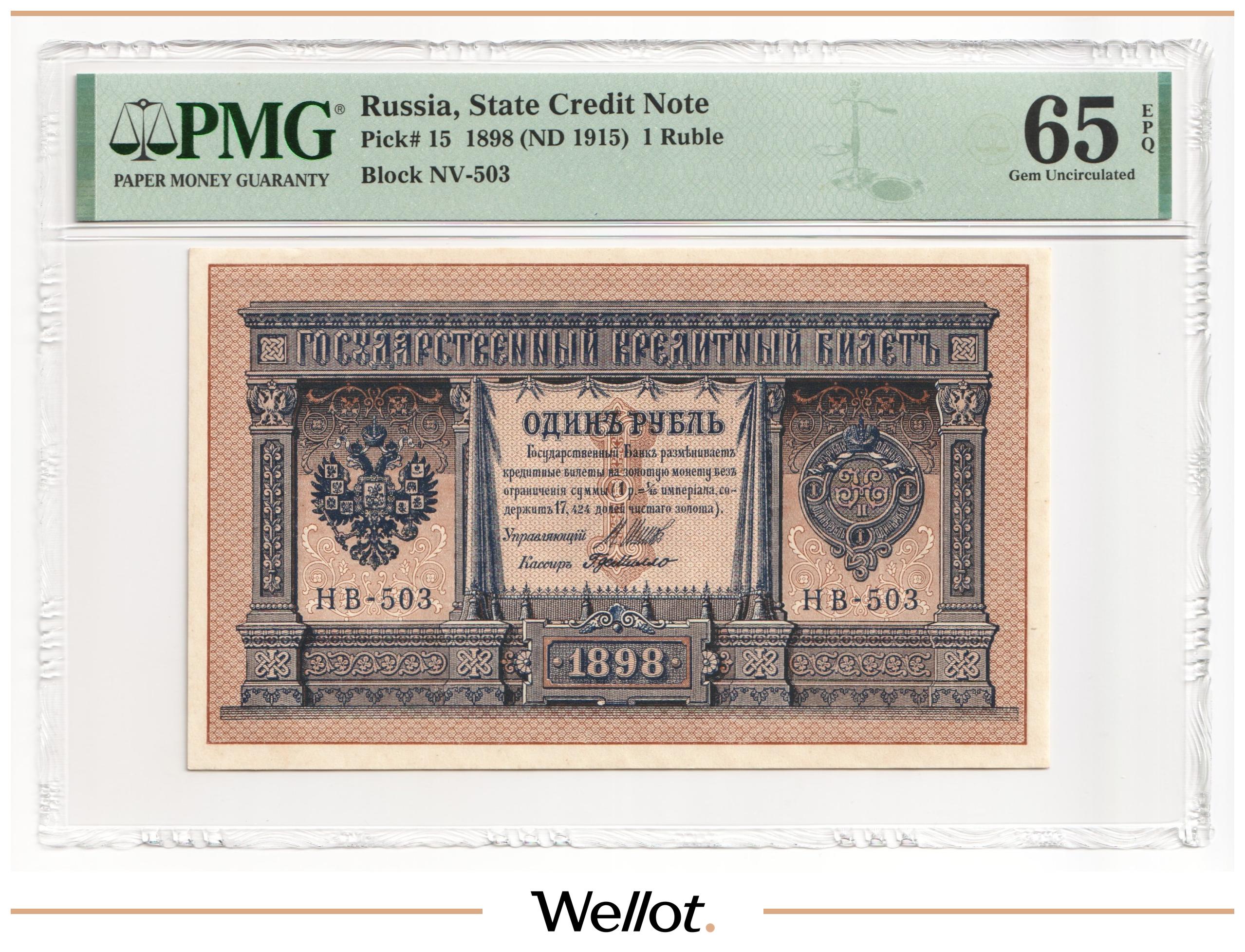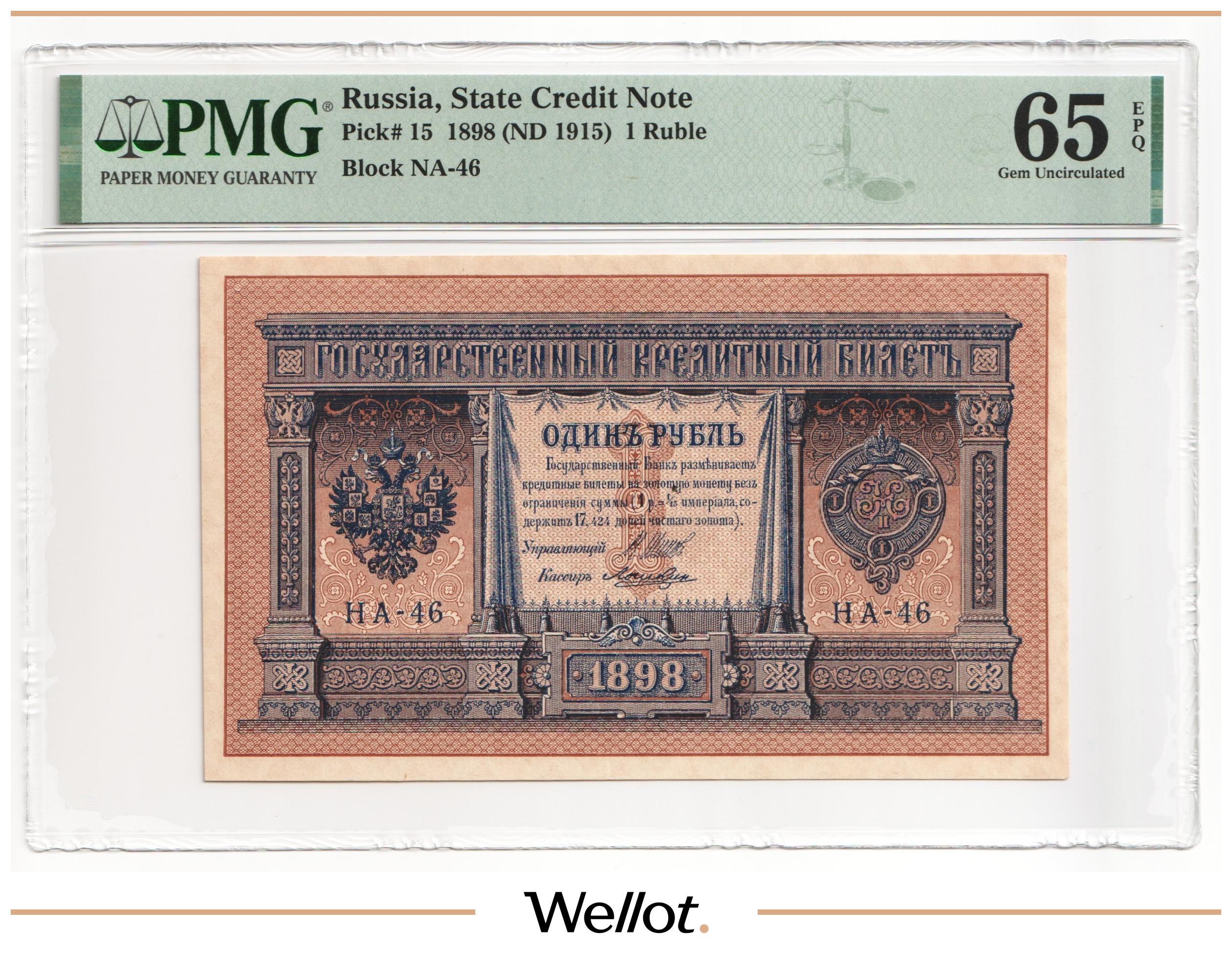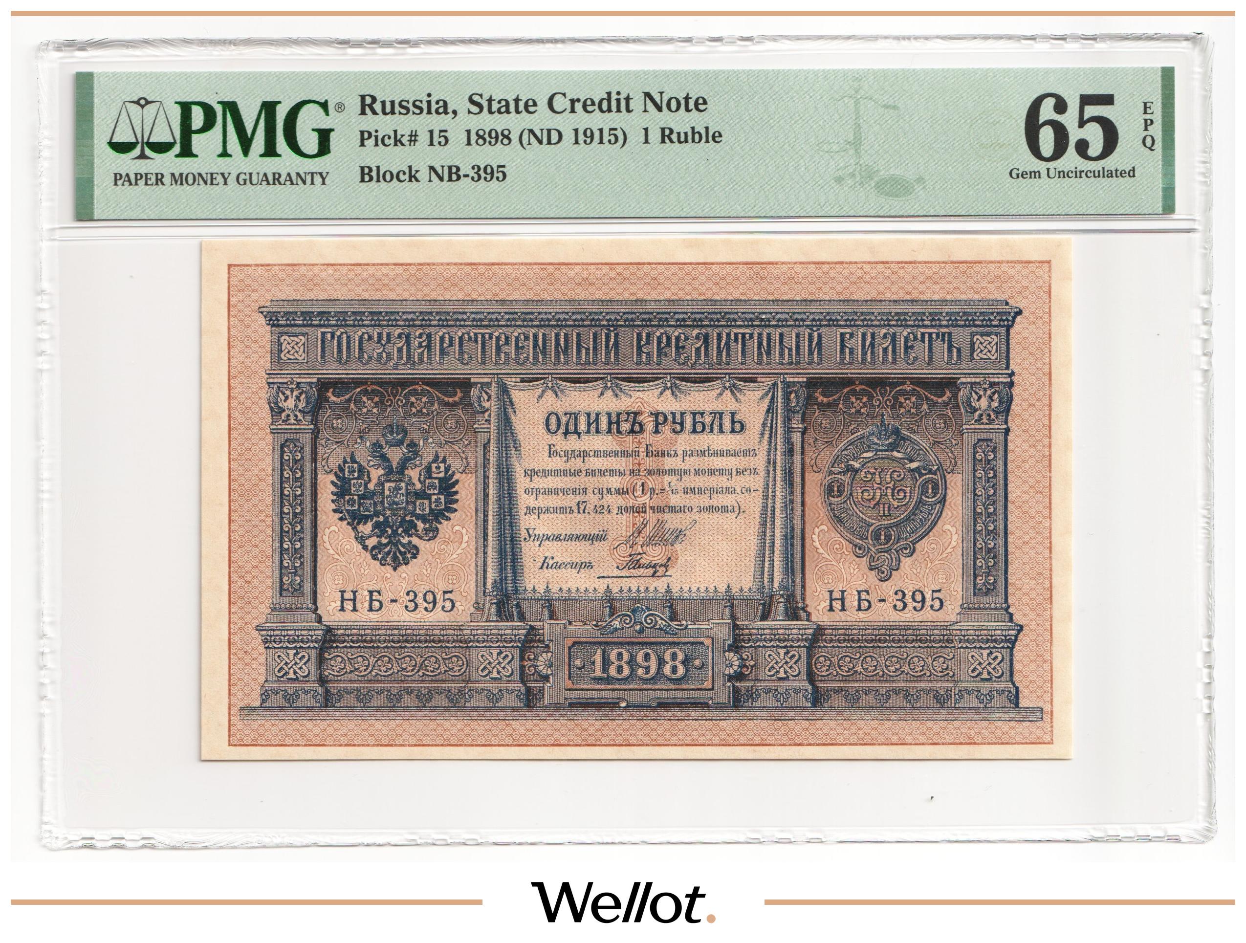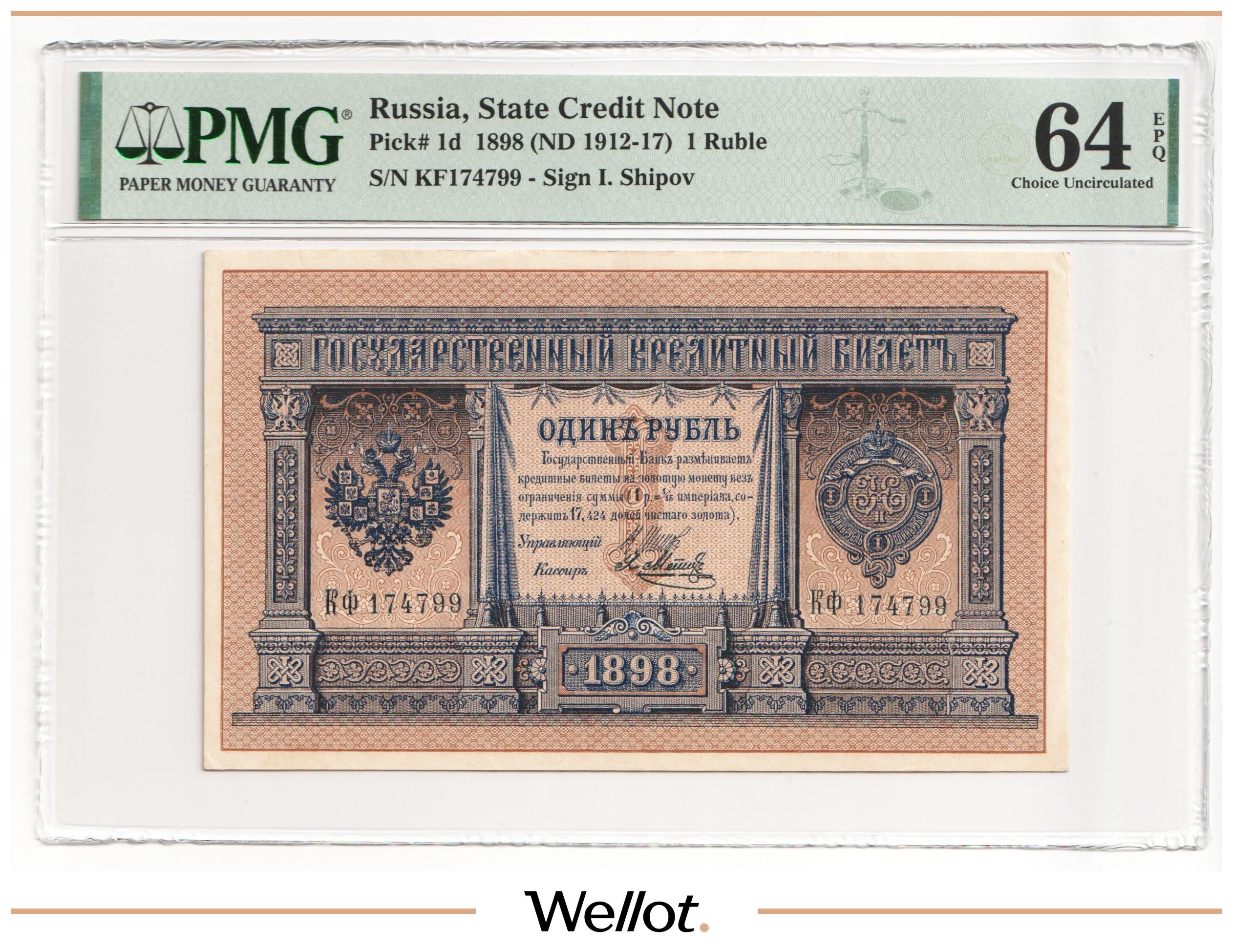 1 Рубль 1898 (1915) Российская Империя PMG 64 EPQ UNC
