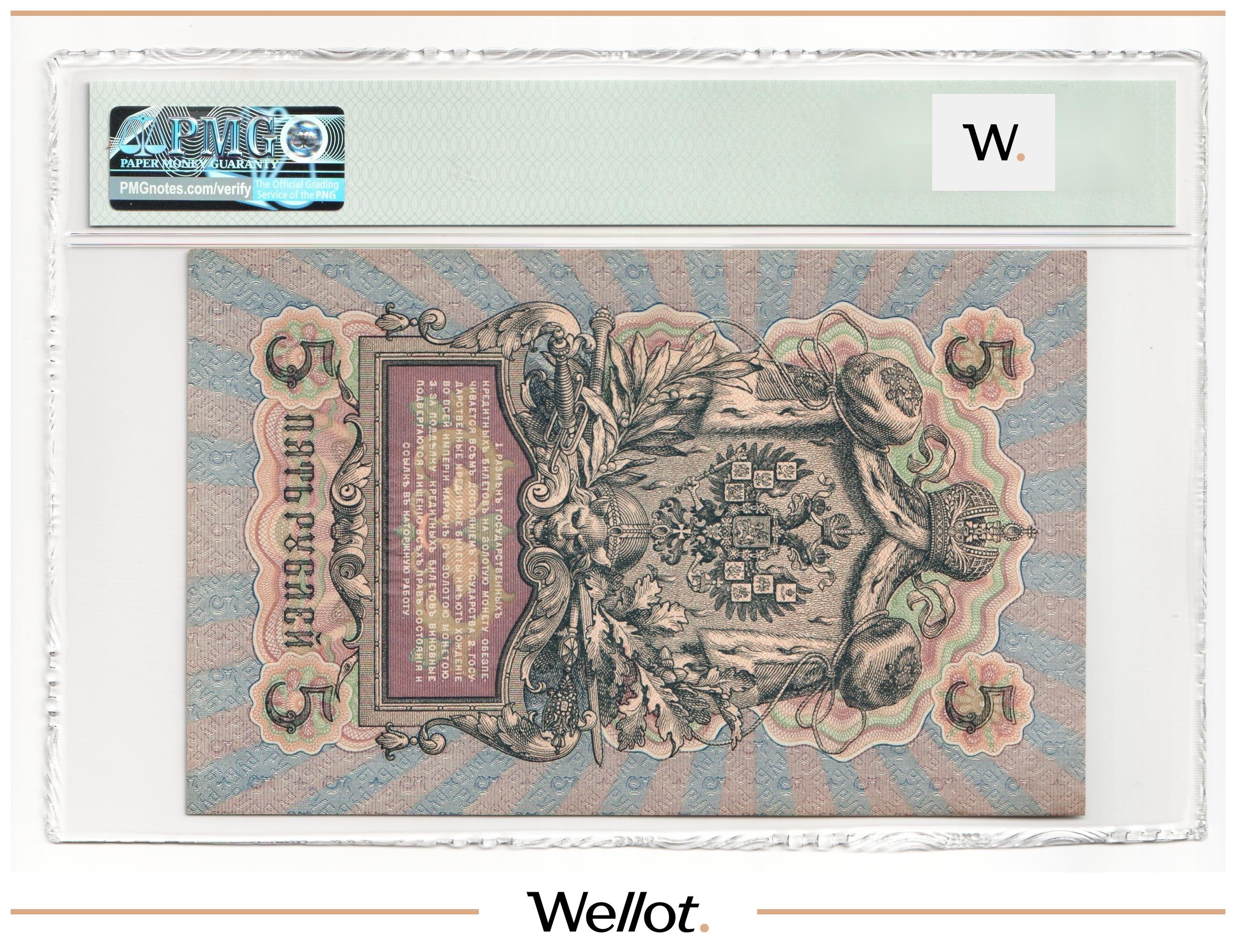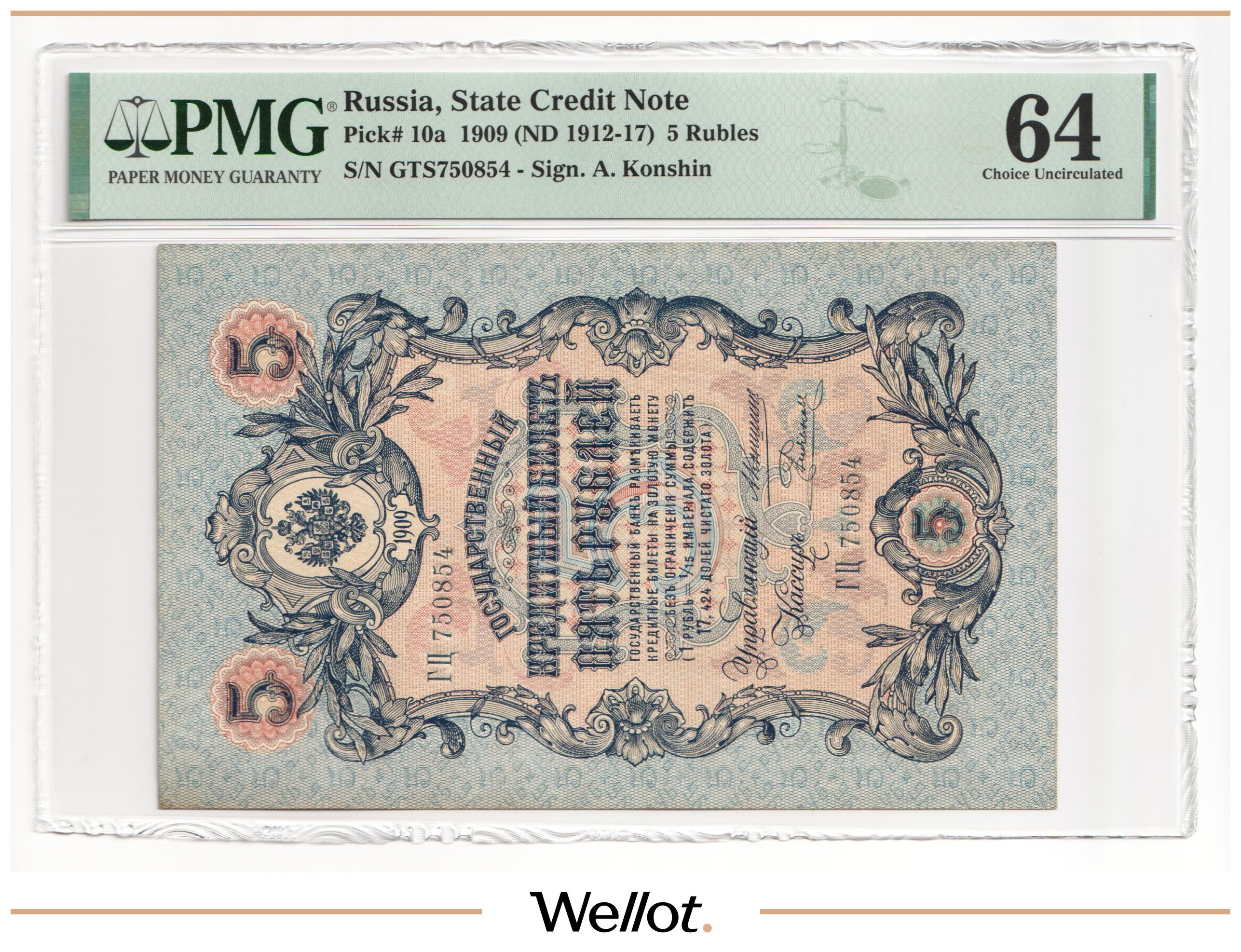 5 Рублей 1909 Российская Империя PMG 64 UNC
