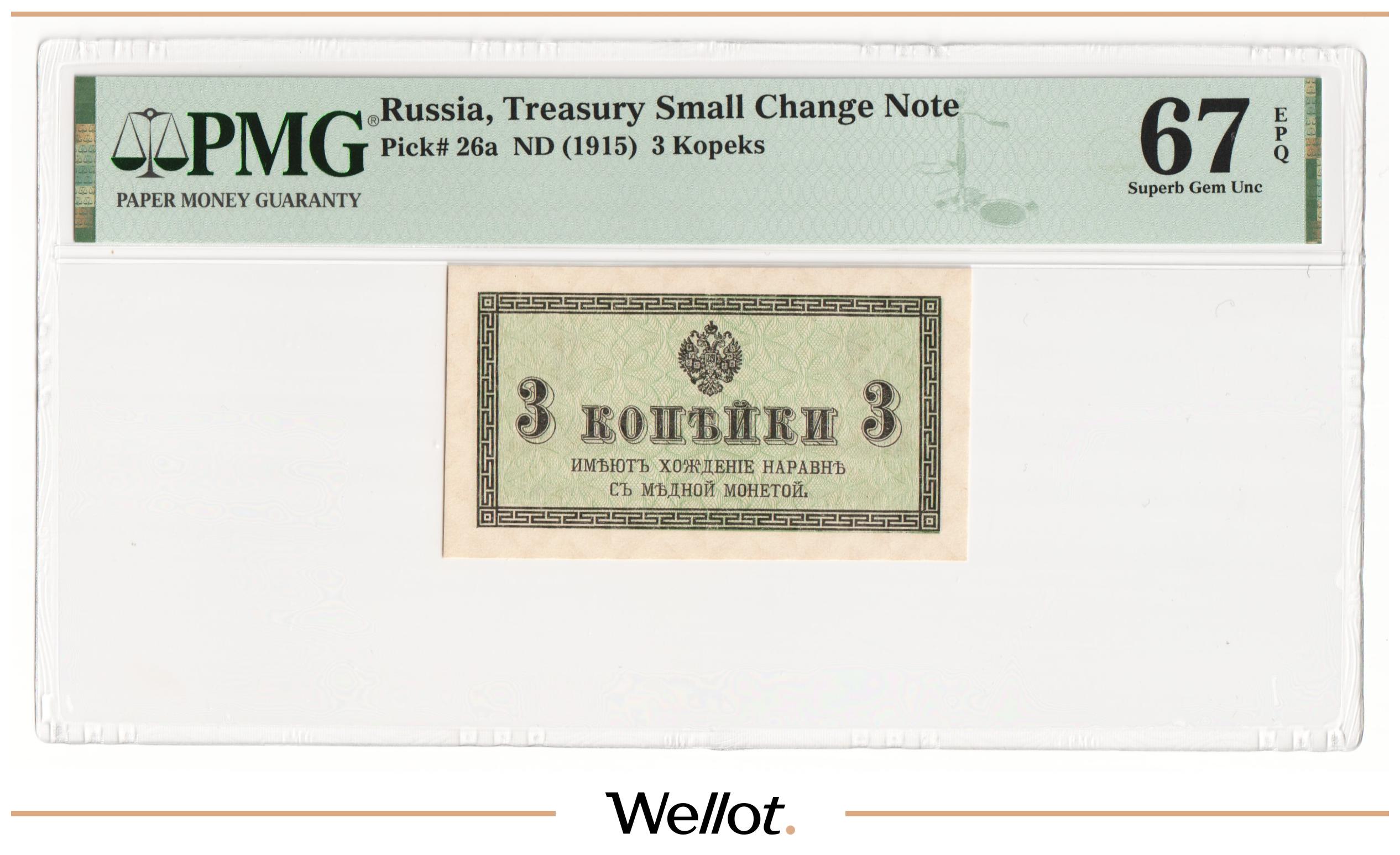 3 Копейки ND (1915) Российская Империя PMG 67 EPQ UNC